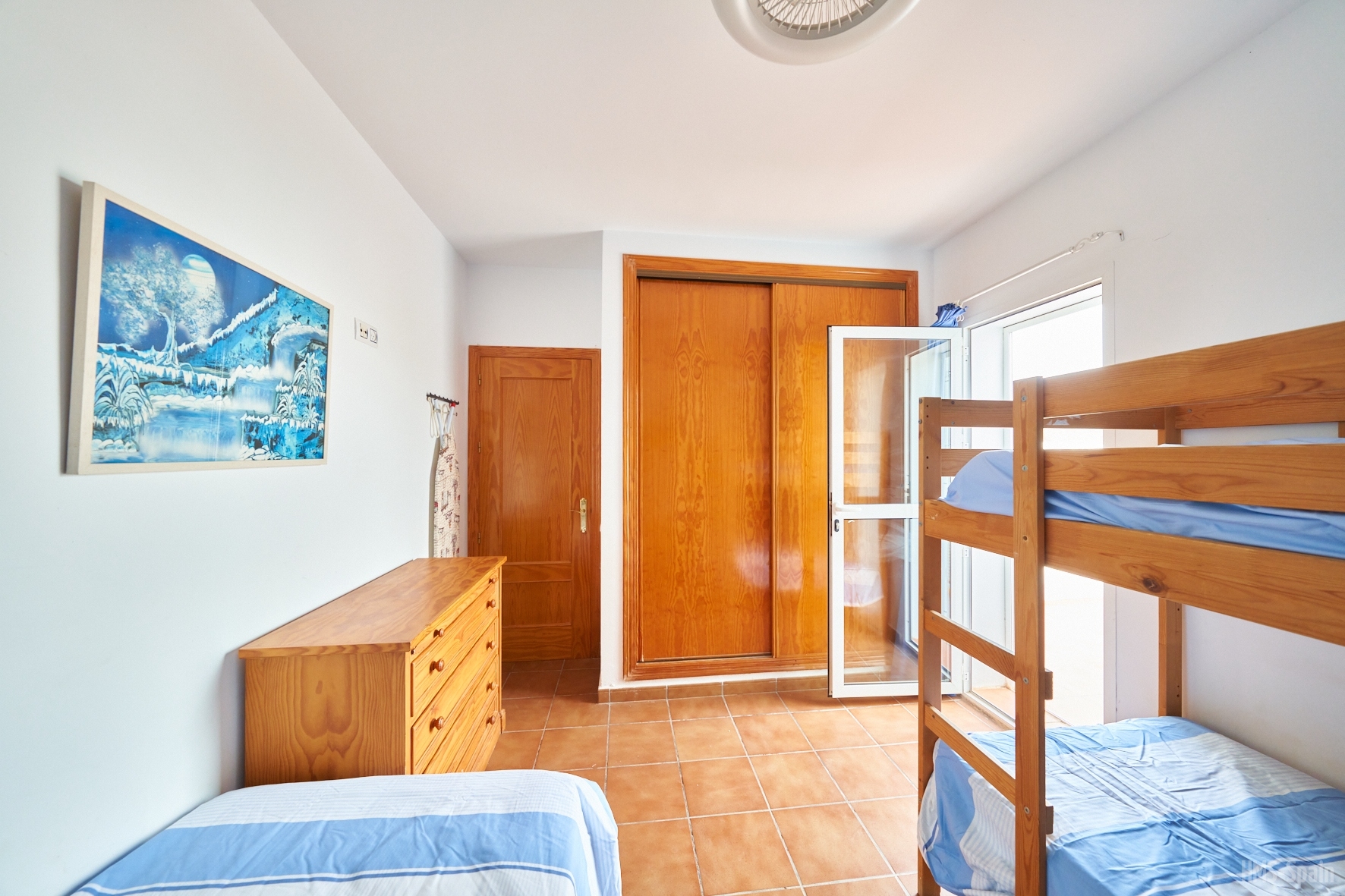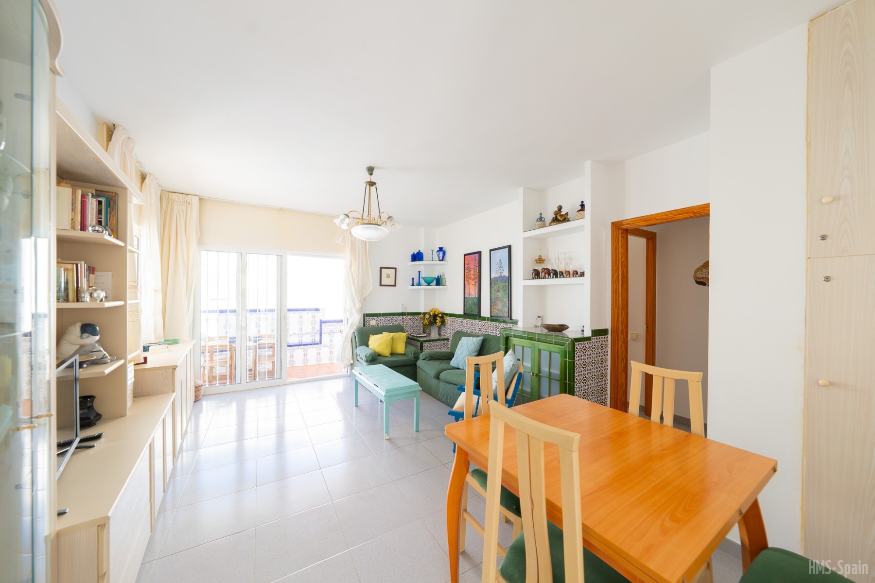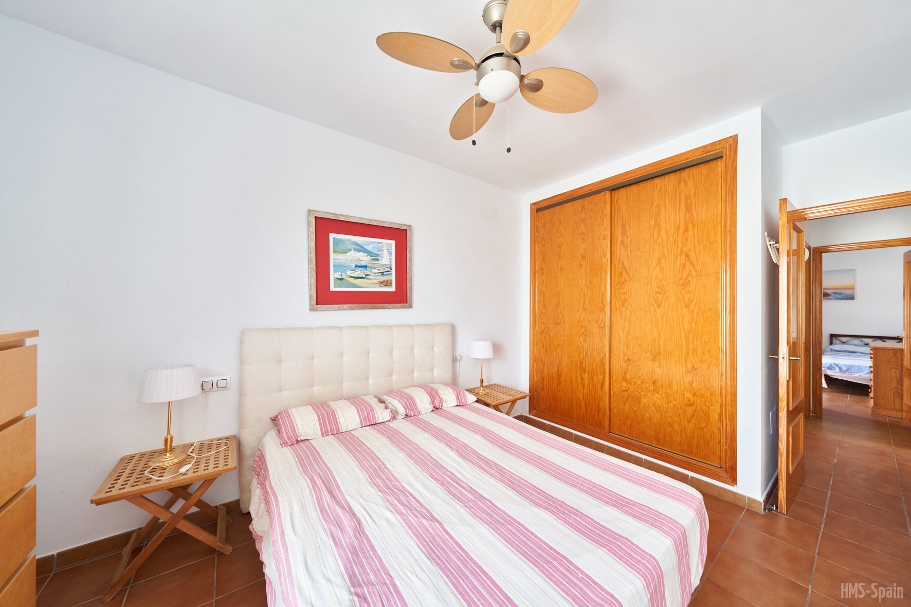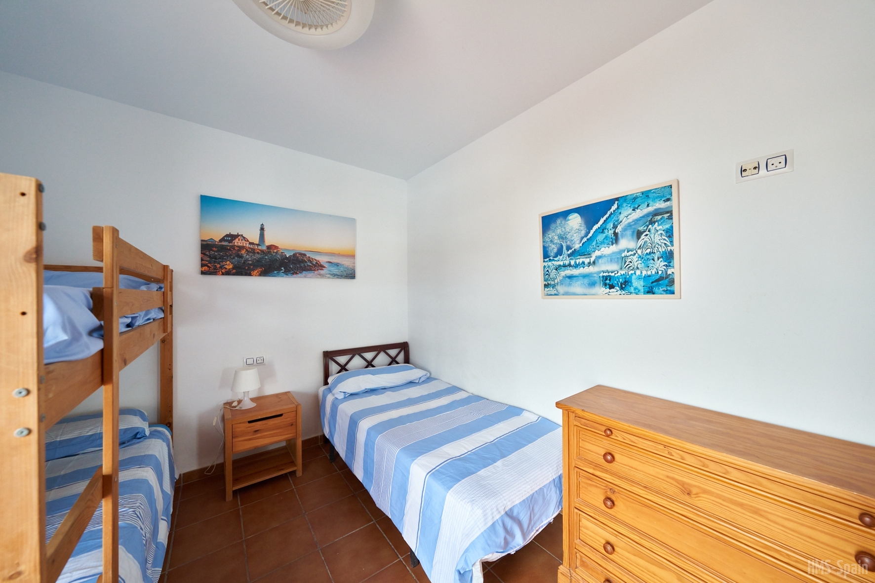 Dormitorio principal con cama de 150cm, otro dormitorio con dos camas de 80cm y sofá cama en el salón. Un baño y una bonita terraza con vistas al mar. Garaje propio. Muy cerca de la playa.