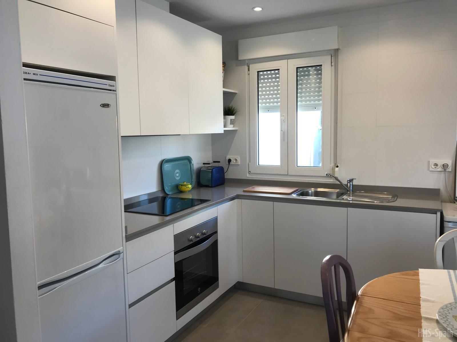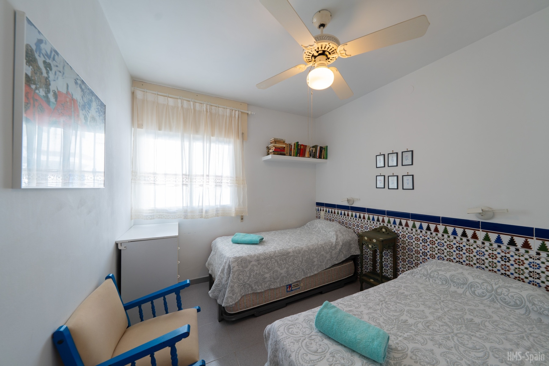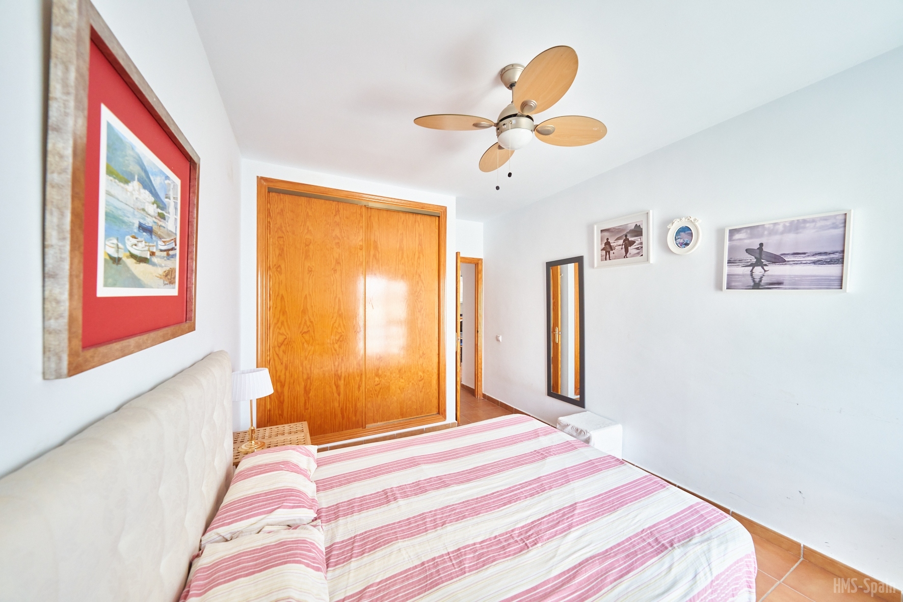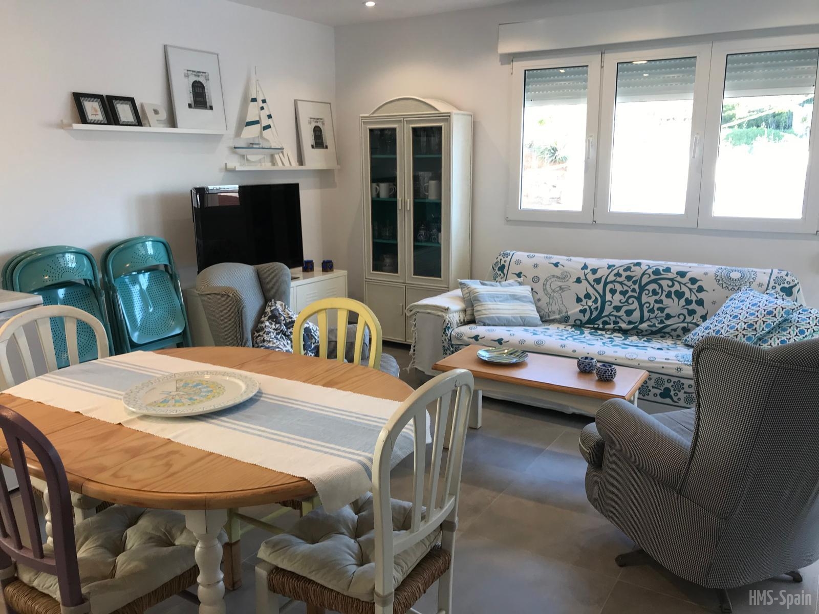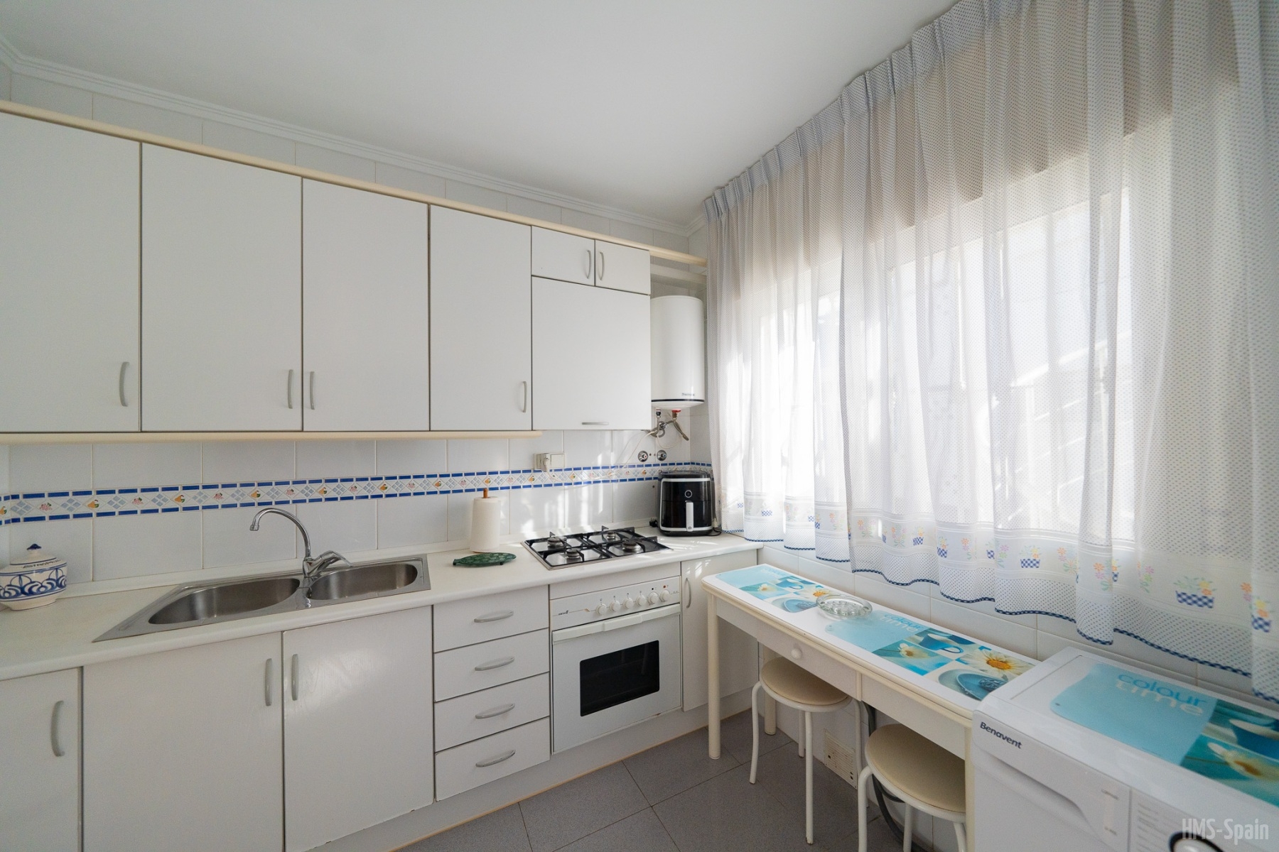 Dormitorio principal con cama de 150cm, otro dormitorio con dos camas de 80cm y sofá cama en el salón. Un baño y una bonita terraza con vistas al mar. Garaje propio. Muy cerca de la playa.