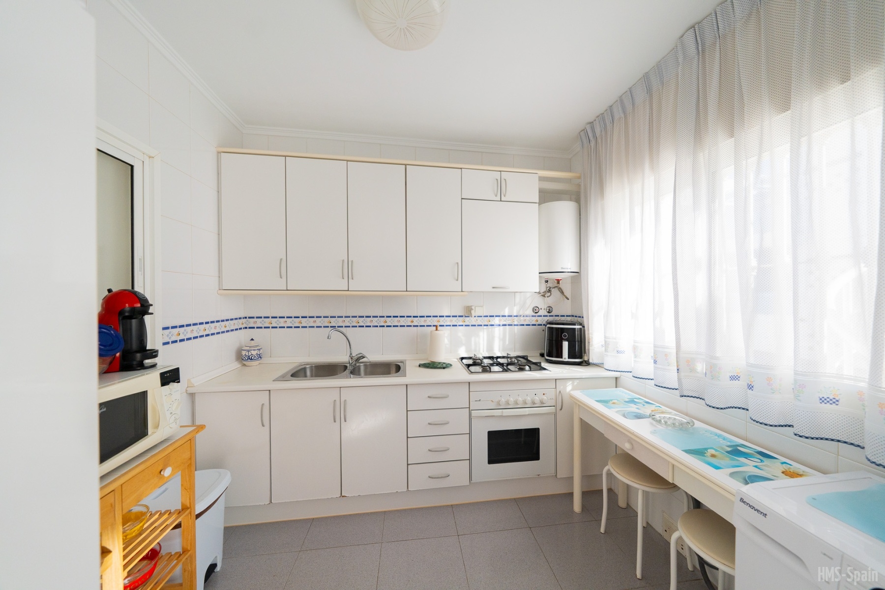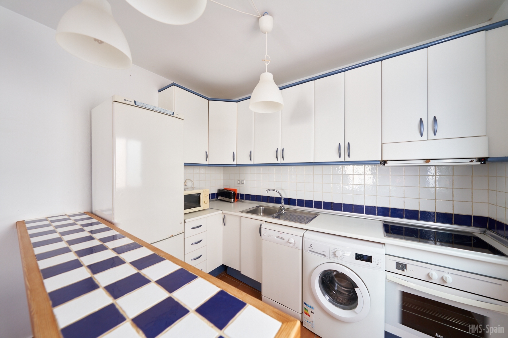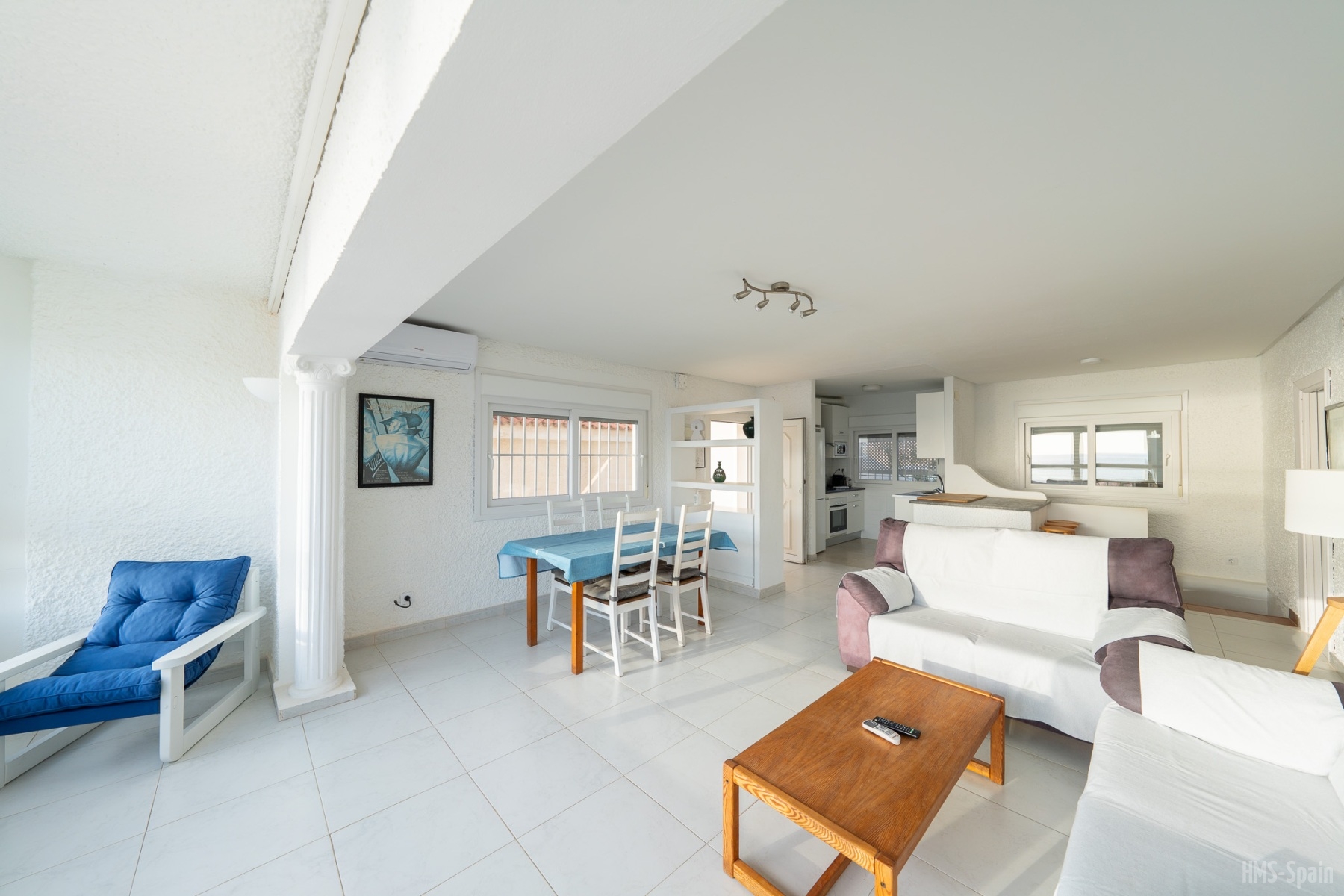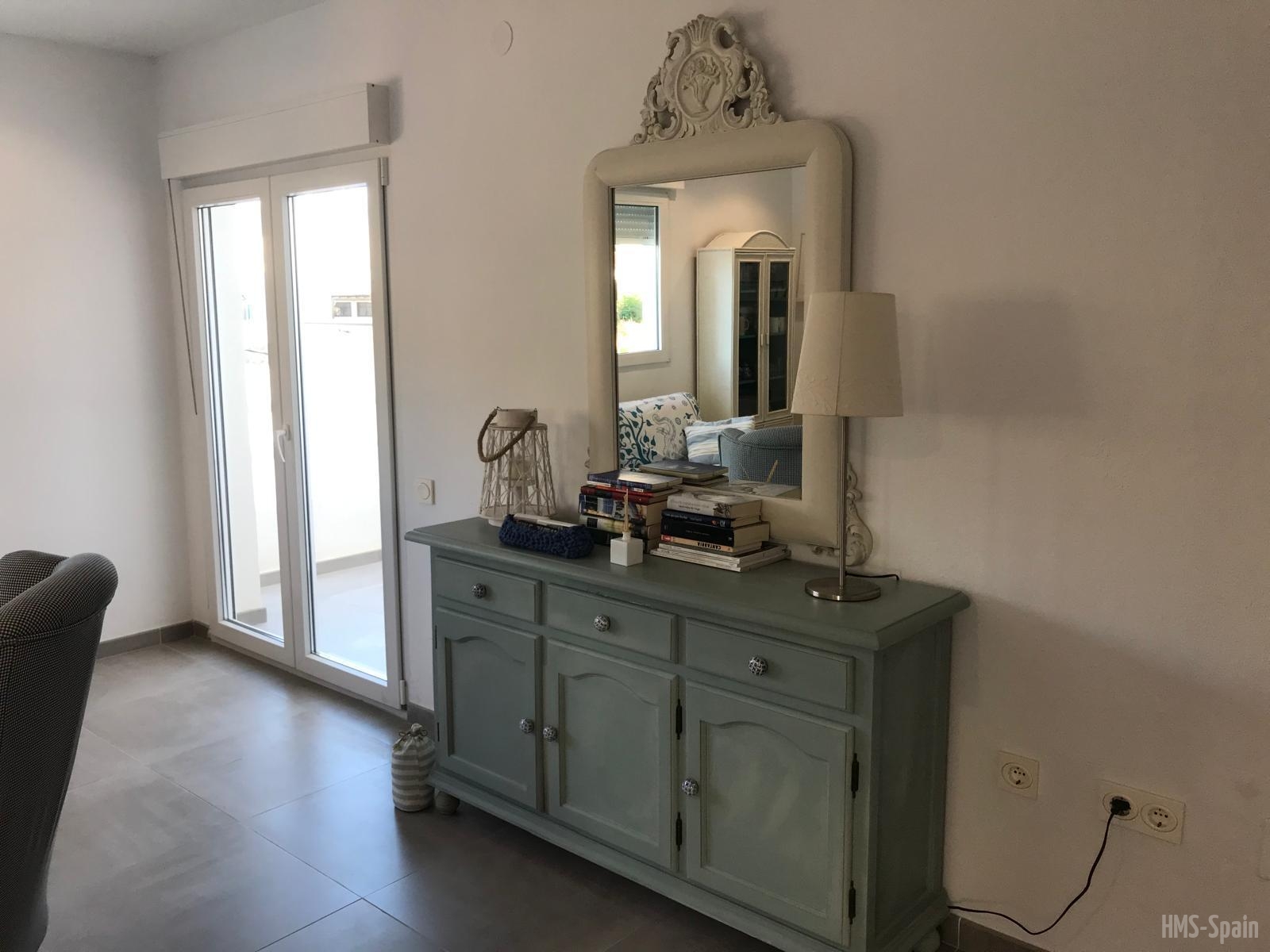 Dormitorio principal con cama de 150cm, otro dormitorio con dos camas de 80cm y sofá cama en el salón. Un baño y una bonita terraza con vistas al mar. Garaje propio. Muy cerca de la playa.