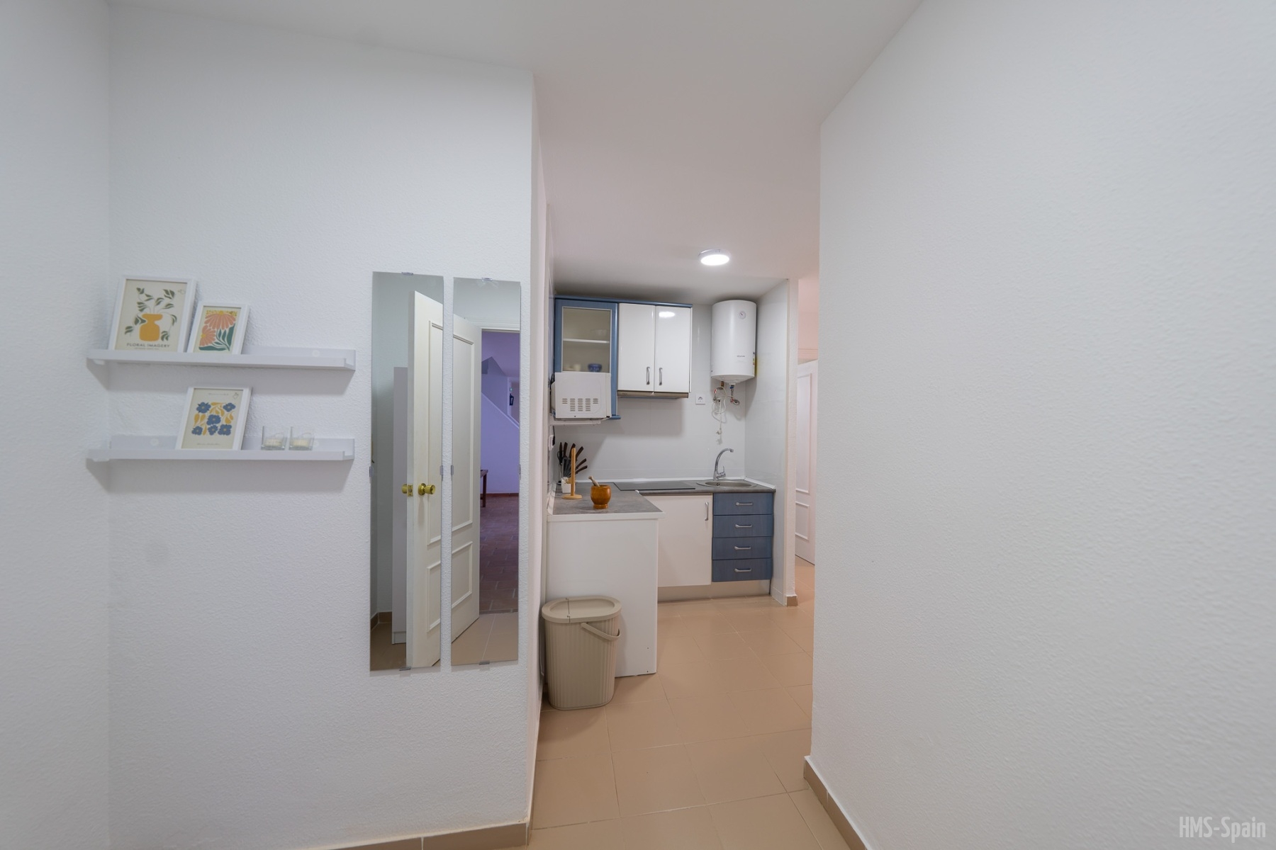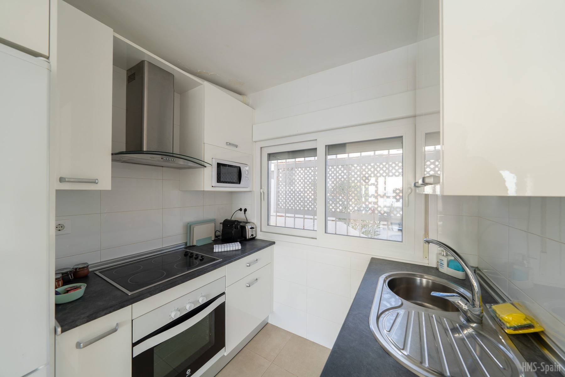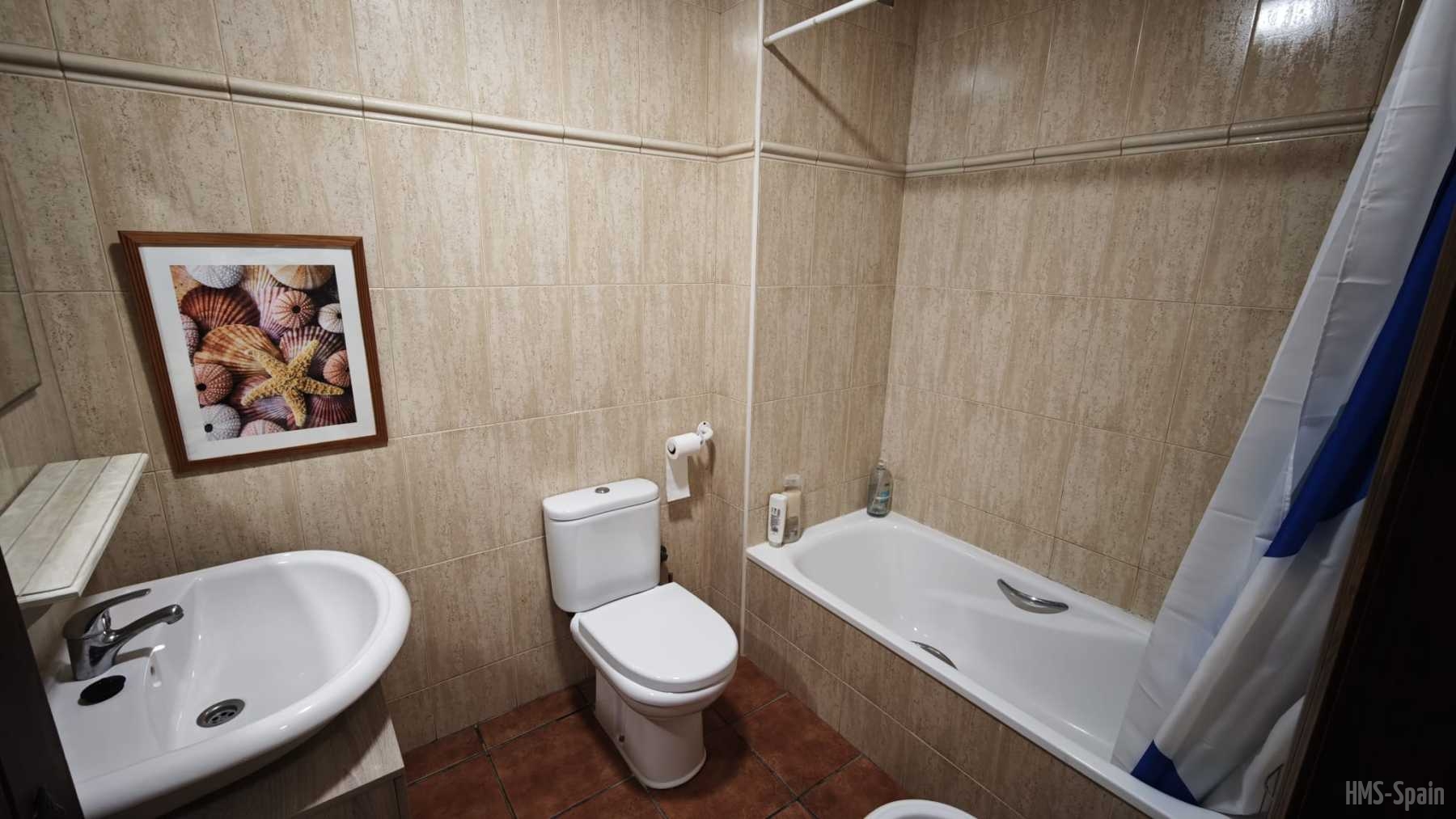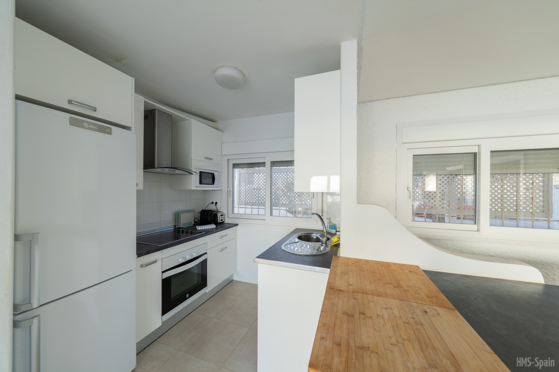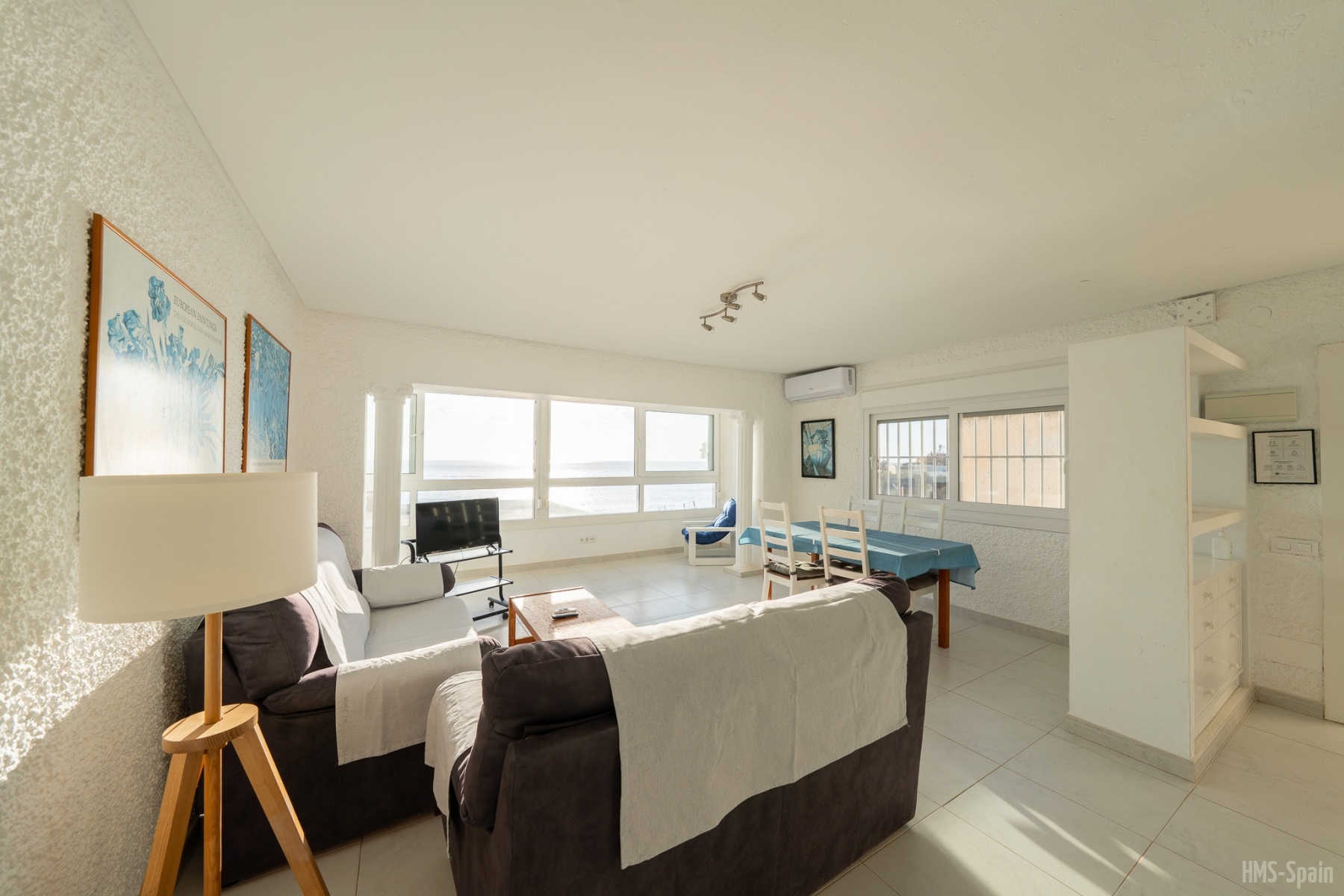 Dormitorio principal con cama de 150cm, otro dormitorio con dos camas de 80cm y sofá cama en el salón. Un baño y una bonita terraza con vistas al mar. Garaje propio. Muy cerca de la playa.