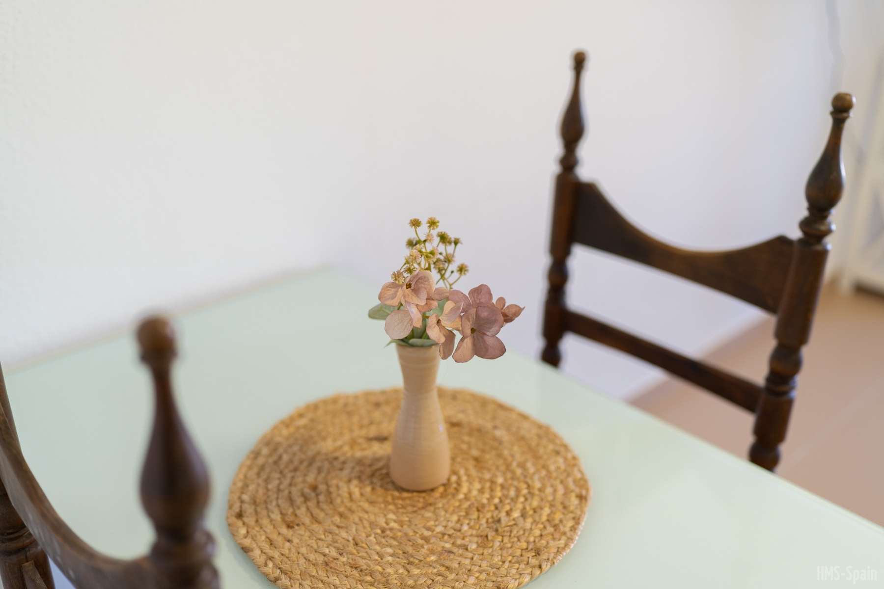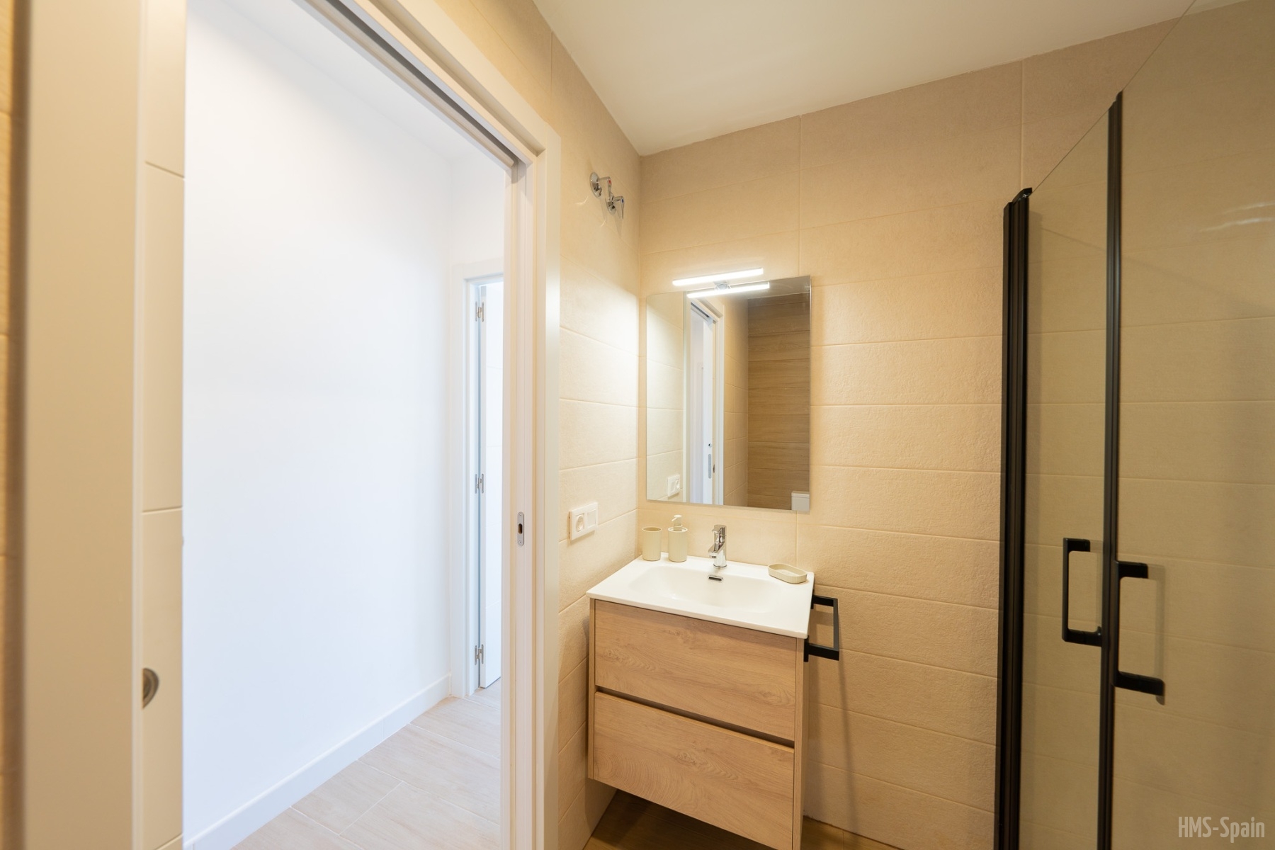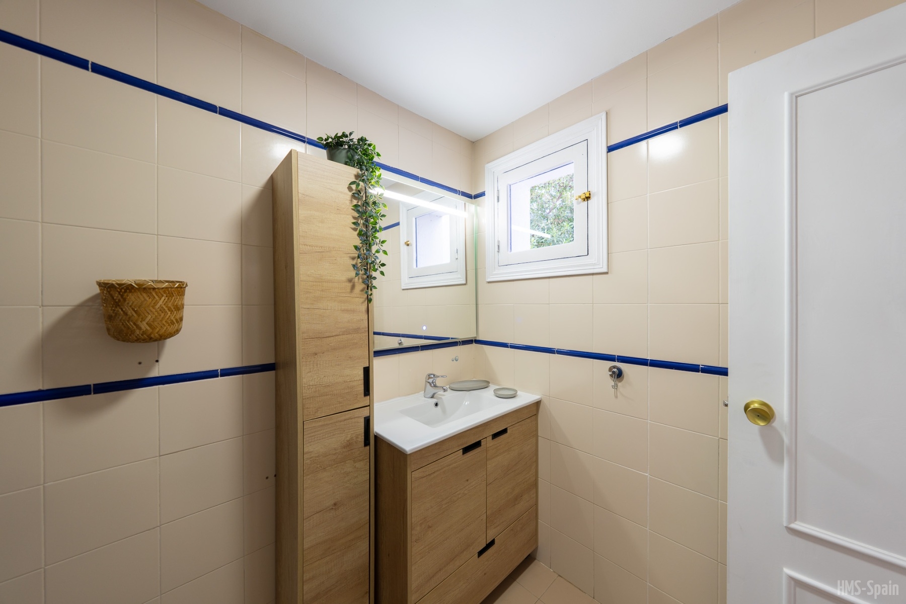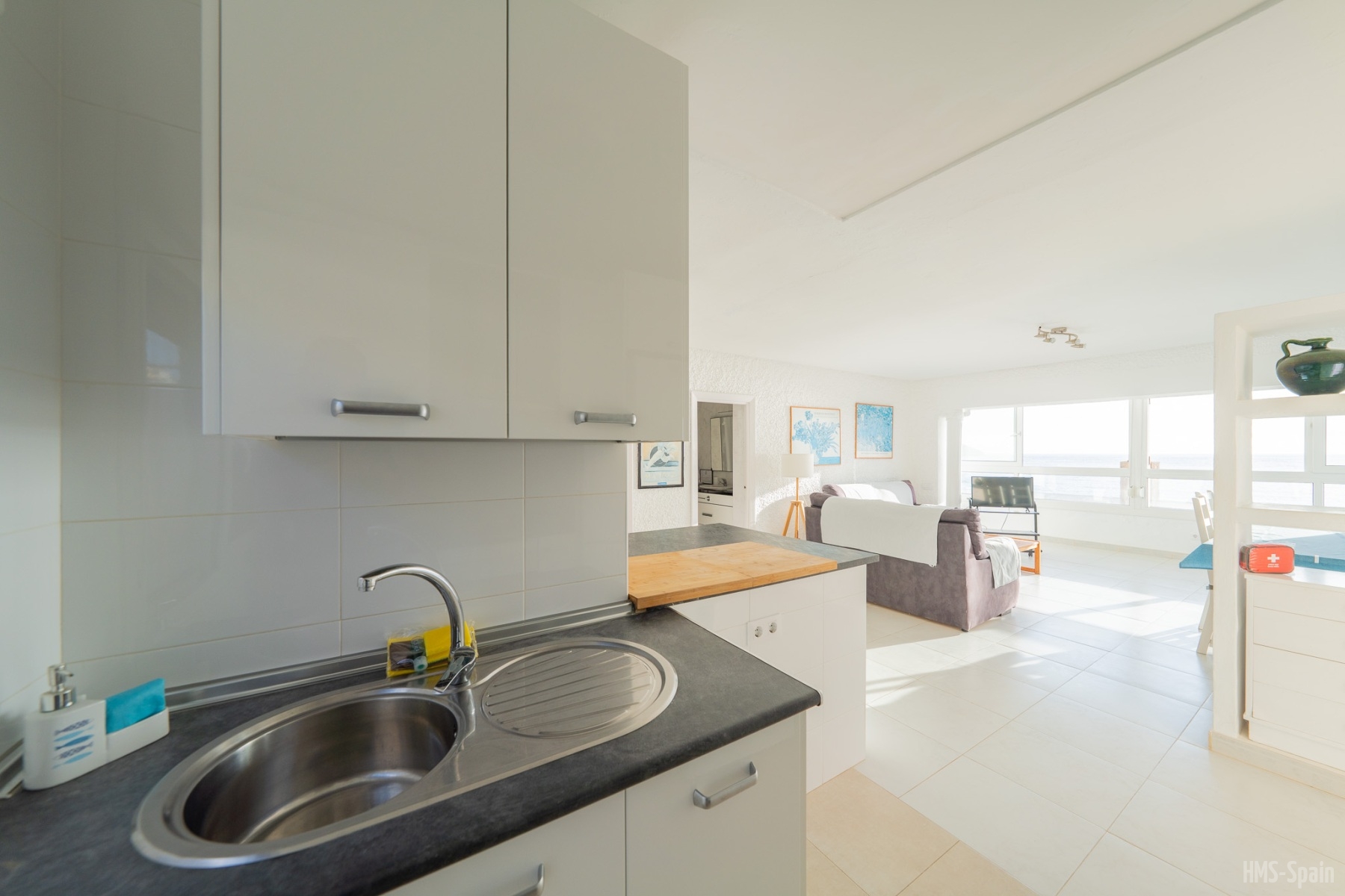 Dormitorio principal con cama de 150cm, otro dormitorio con dos camas de 80cm y sofá cama en el salón. Un baño y una bonita terraza con vistas al mar. Garaje propio. Muy cerca de la playa.