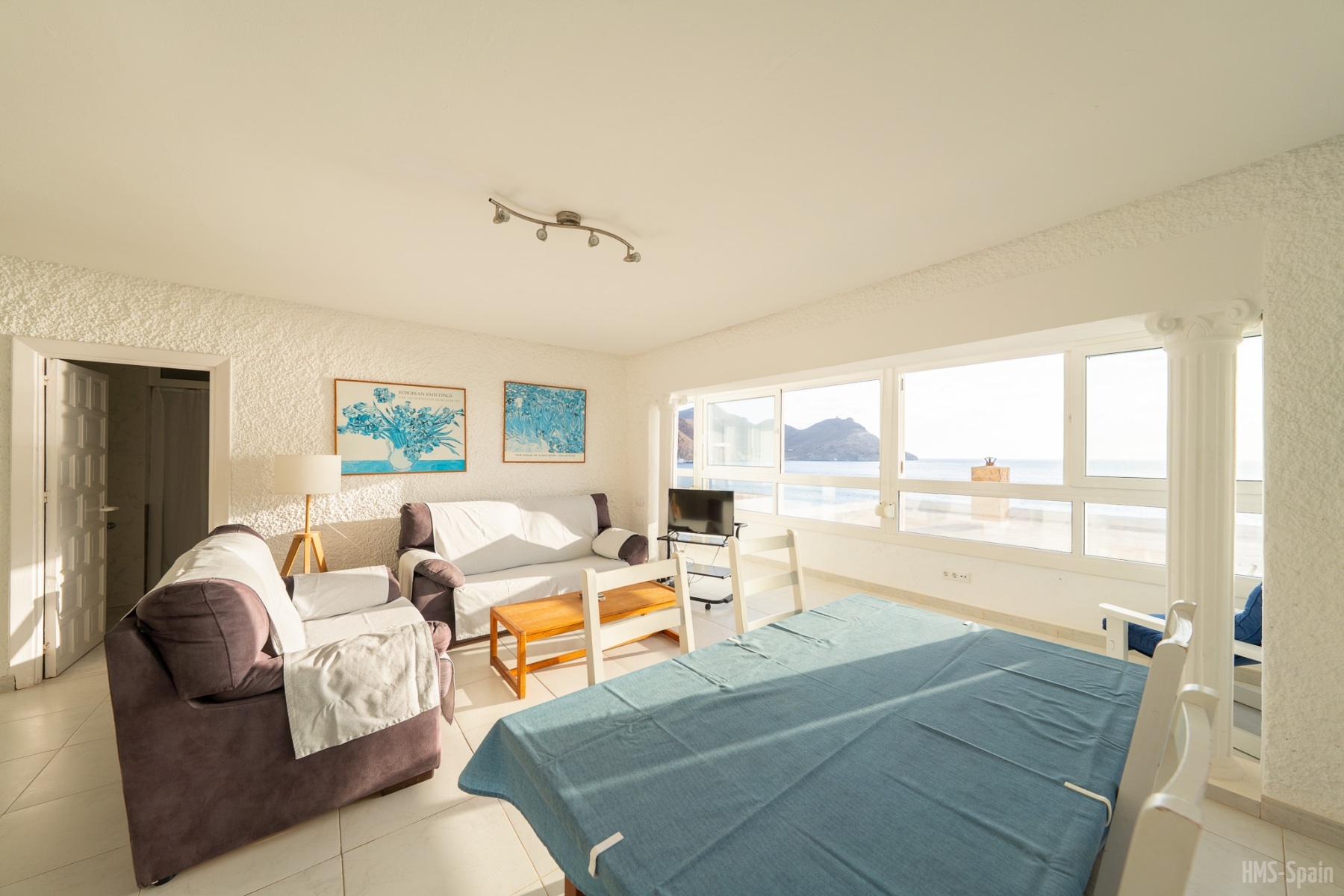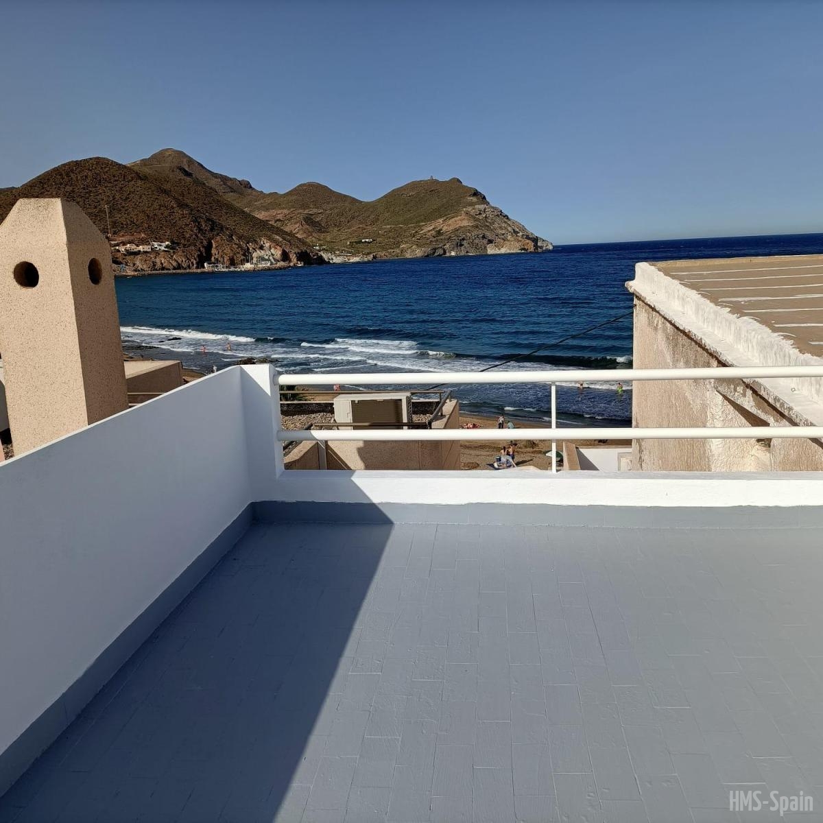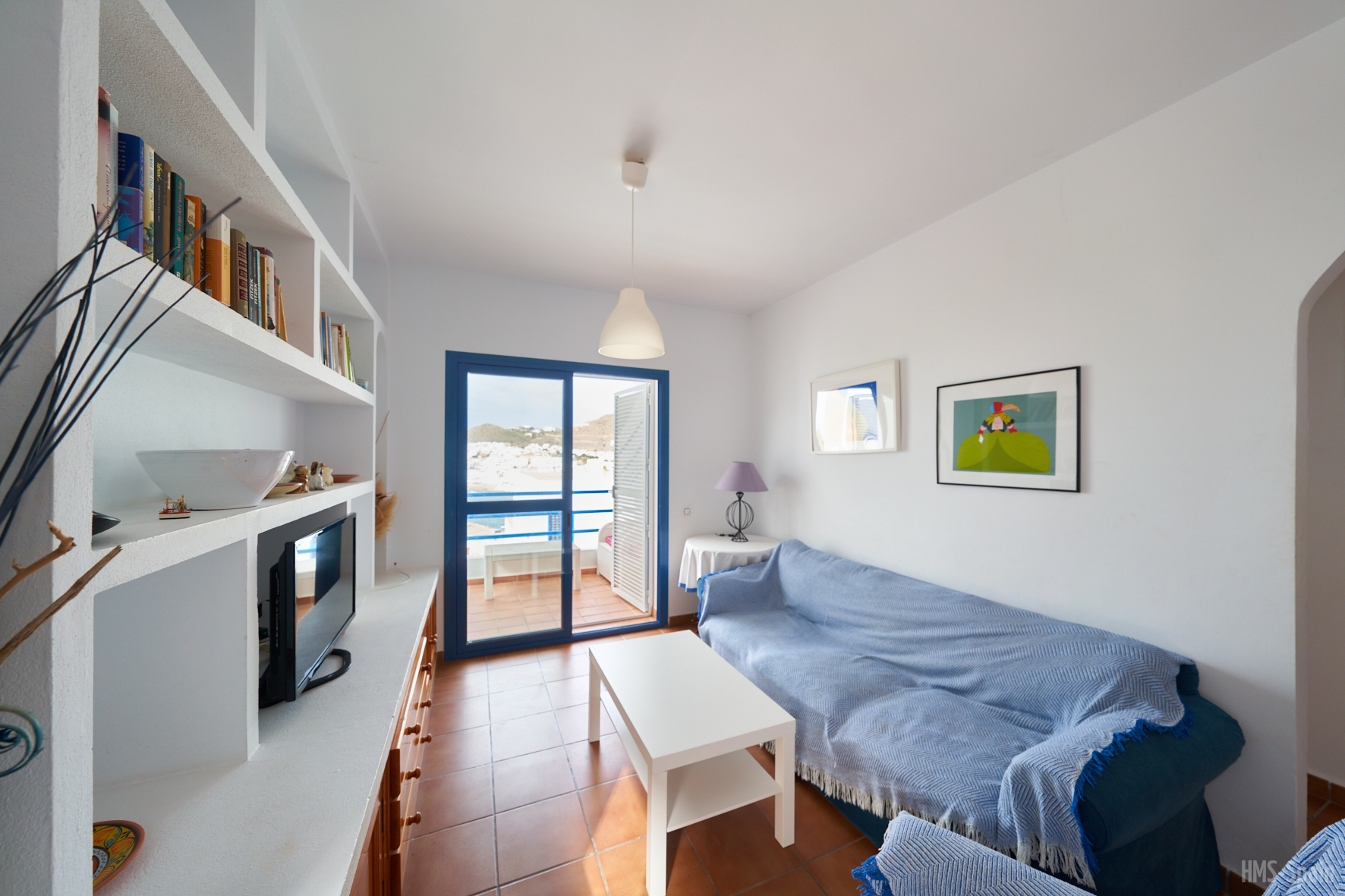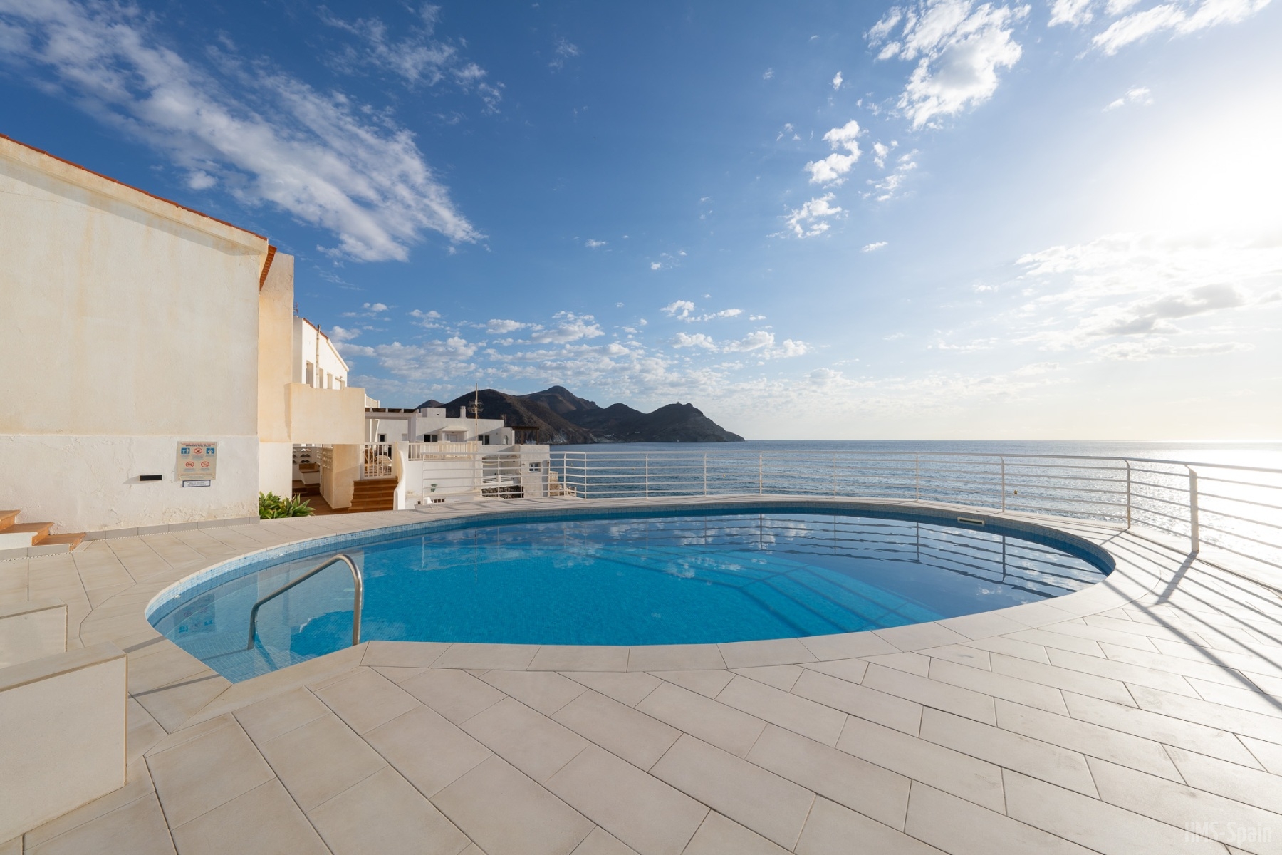 Apartamento ubicado en el parque natural de Cabo de Gata, en primera linea de playa. Con vistas espectaculares. Dispone de una piscina comunitaria sobre las rocas del mar, bajada privada al mar, la playa más próxima esta a escasos 5 minutos a pie.