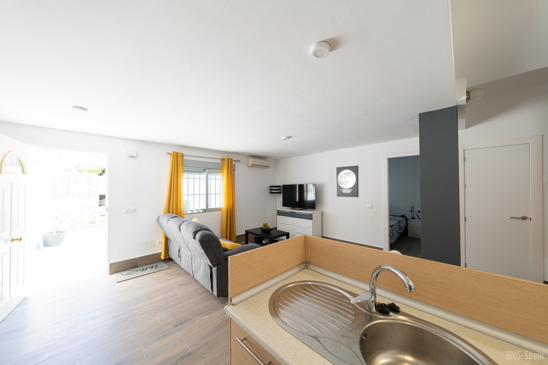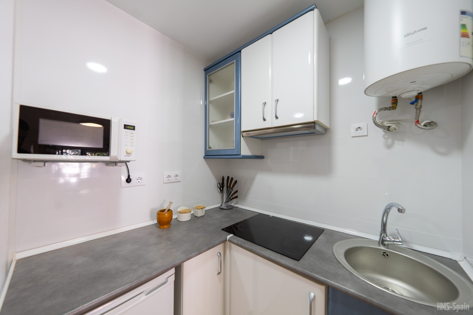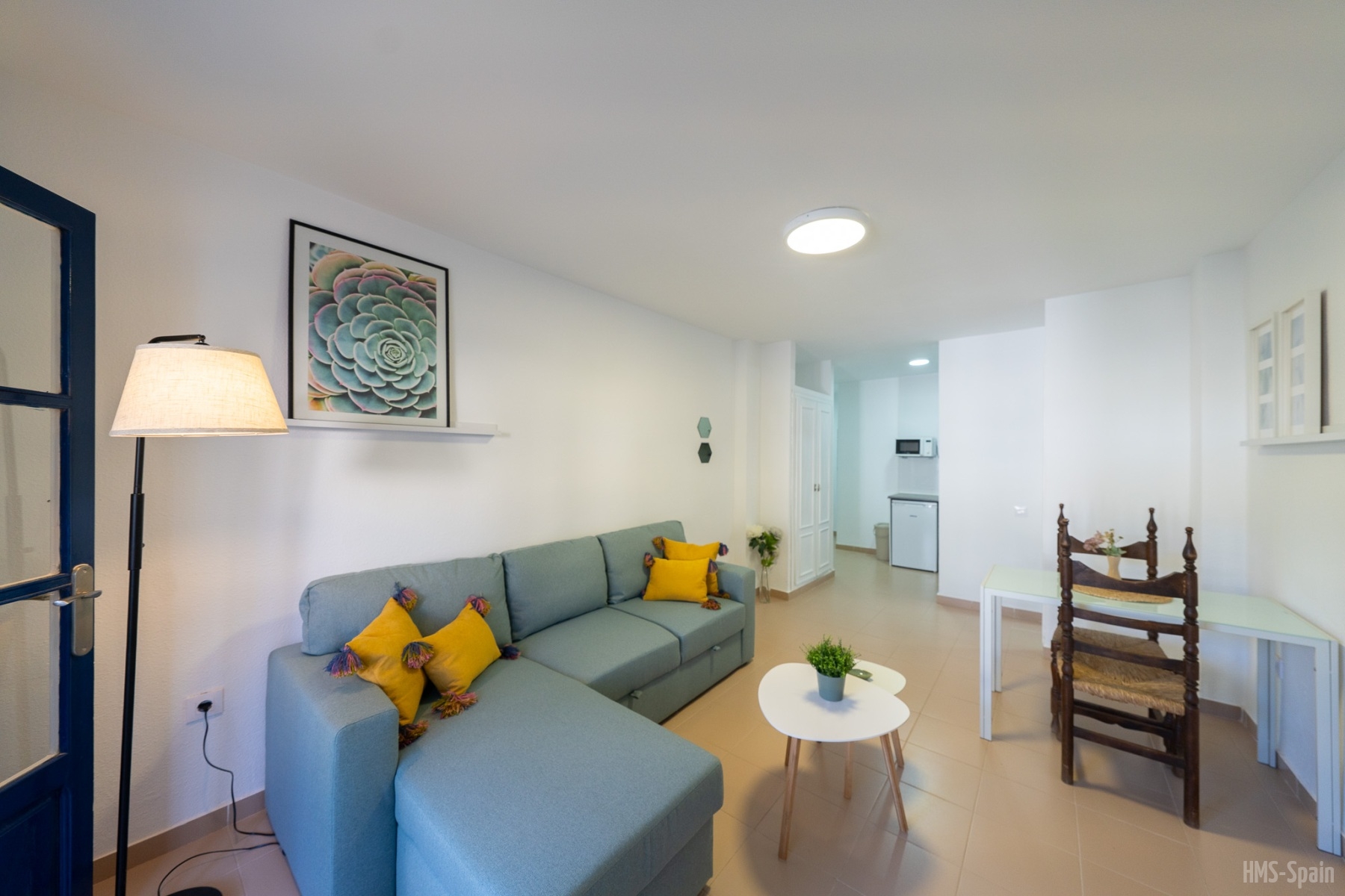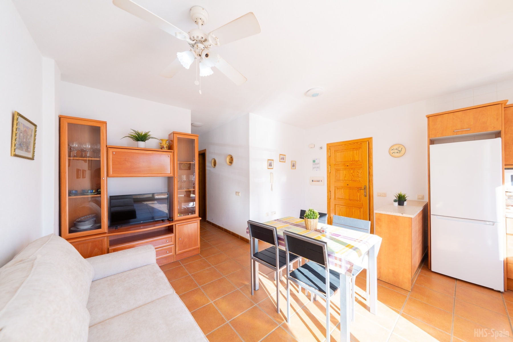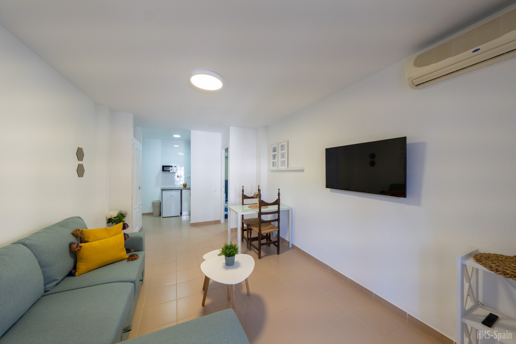 Acogedor estudio muy cerca del centro y de la playa. Cocina totalmente equipada abierta con el salón. Tiene sofá cama , aire acondicionado en el salón y baño completo con ducha. Ideal para disfrutar unas estupendas vacaciones. Terraza equipada con mesas y sillas para disfrutar de comida al aire libre. Piscina comunitaria