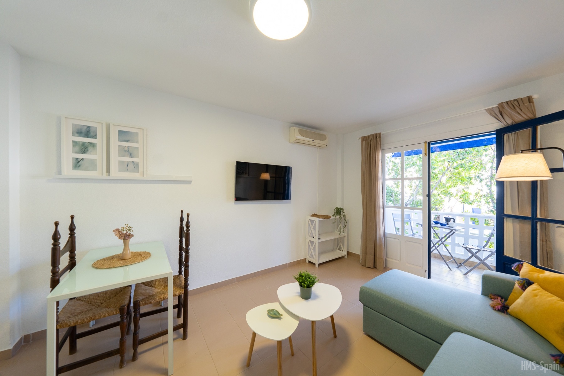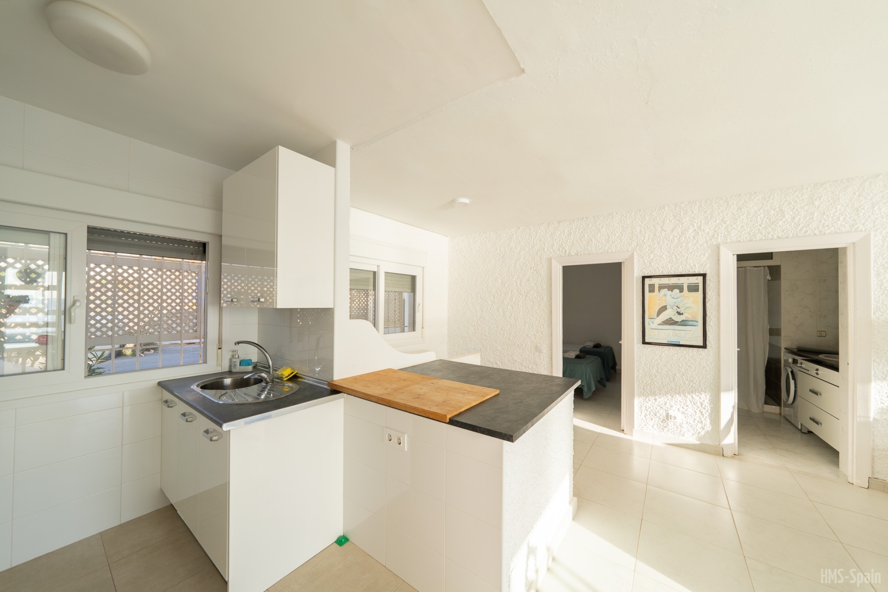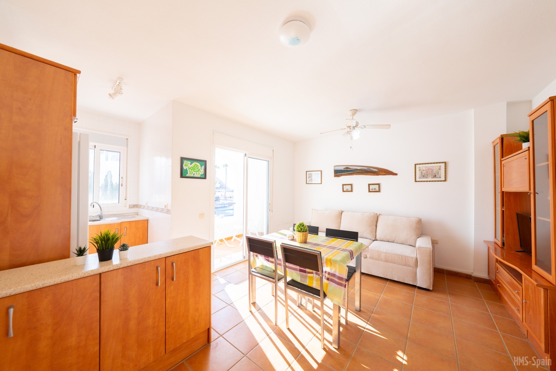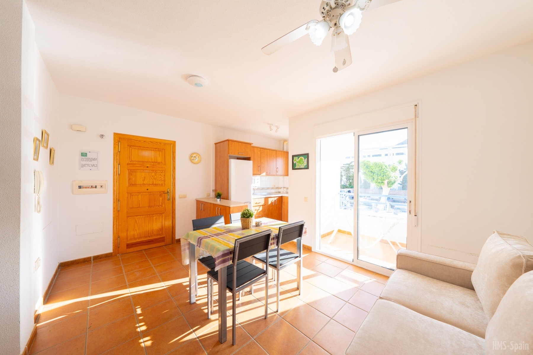 Acogedor estudio muy cerca del centro y de la playa. Cocina totalmente equipada abierta con el salón. Tiene sofá cama , aire acondicionado en el salón y baño completo con ducha. Ideal para disfrutar unas estupendas vacaciones. Terraza equipada con mesas y sillas para disfrutar de comida al aire libre. Piscina comunitaria