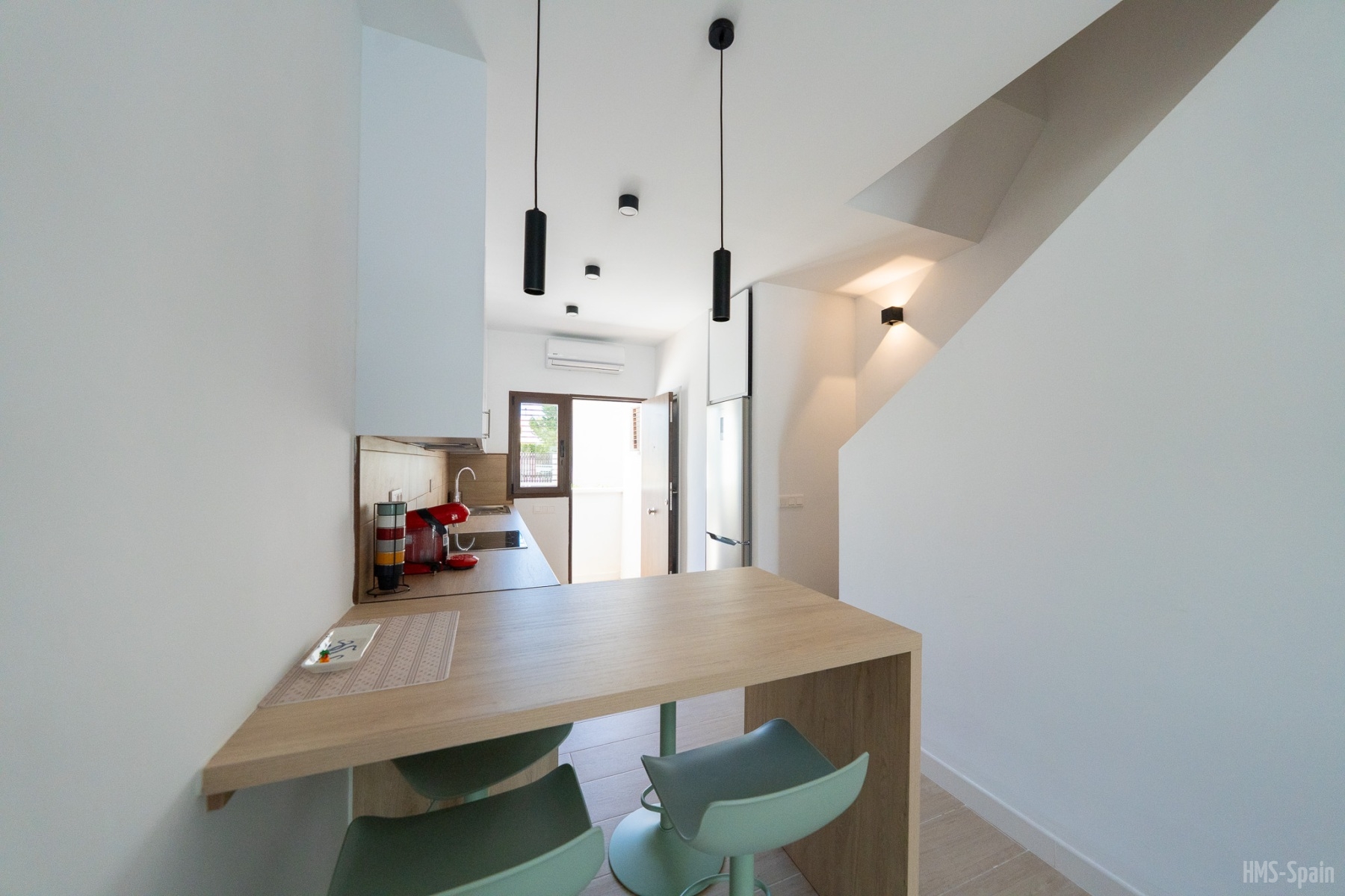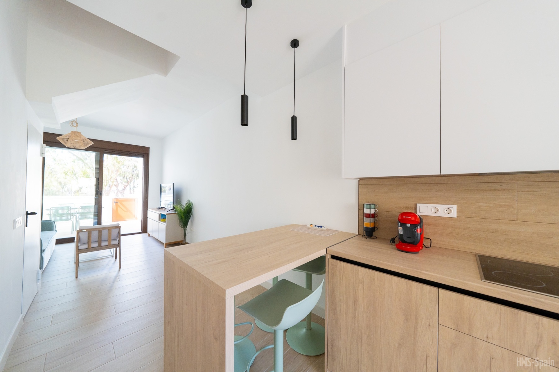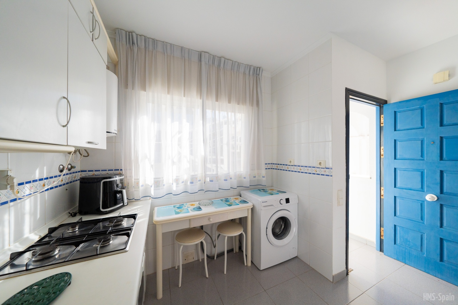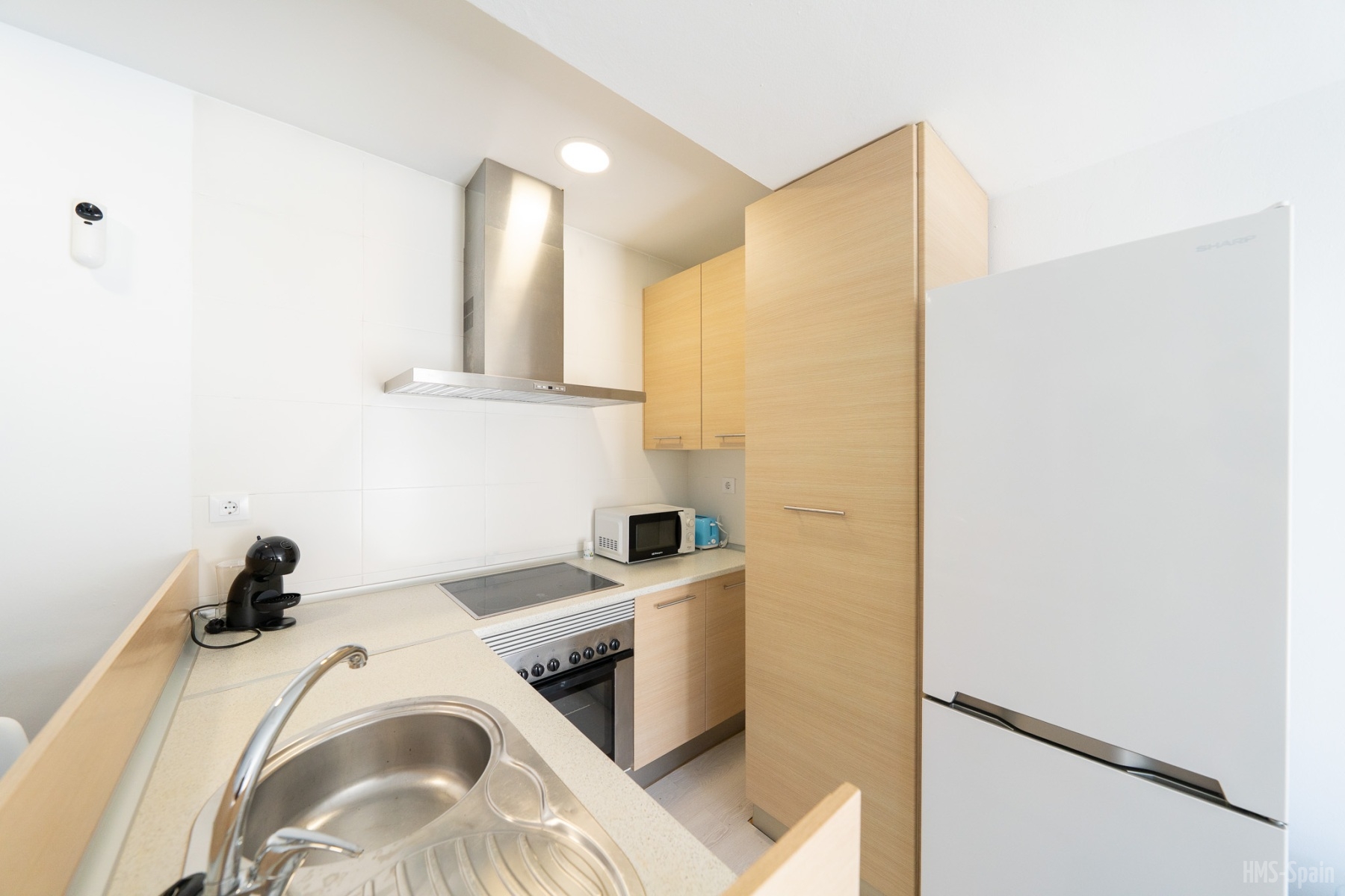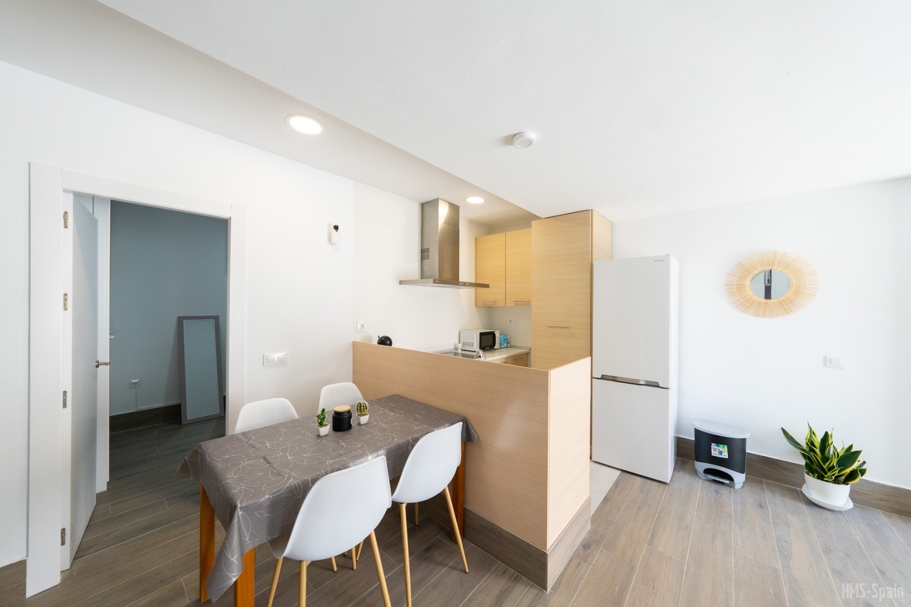 Acogedor estudio muy cerca del centro y de la playa. Cocina totalmente equipada abierta con el salón. Tiene sofá cama , aire acondicionado en el salón y baño completo con ducha. Ideal para disfrutar unas estupendas vacaciones. Terraza equipada con mesas y sillas para disfrutar de comida al aire libre. Piscina comunitaria