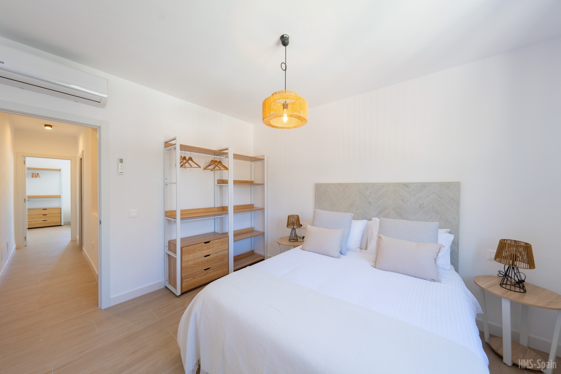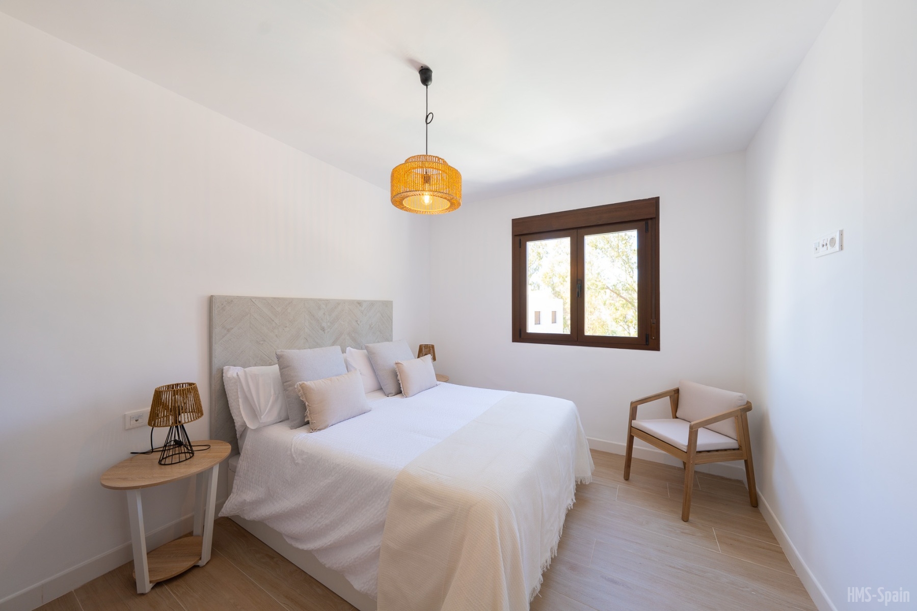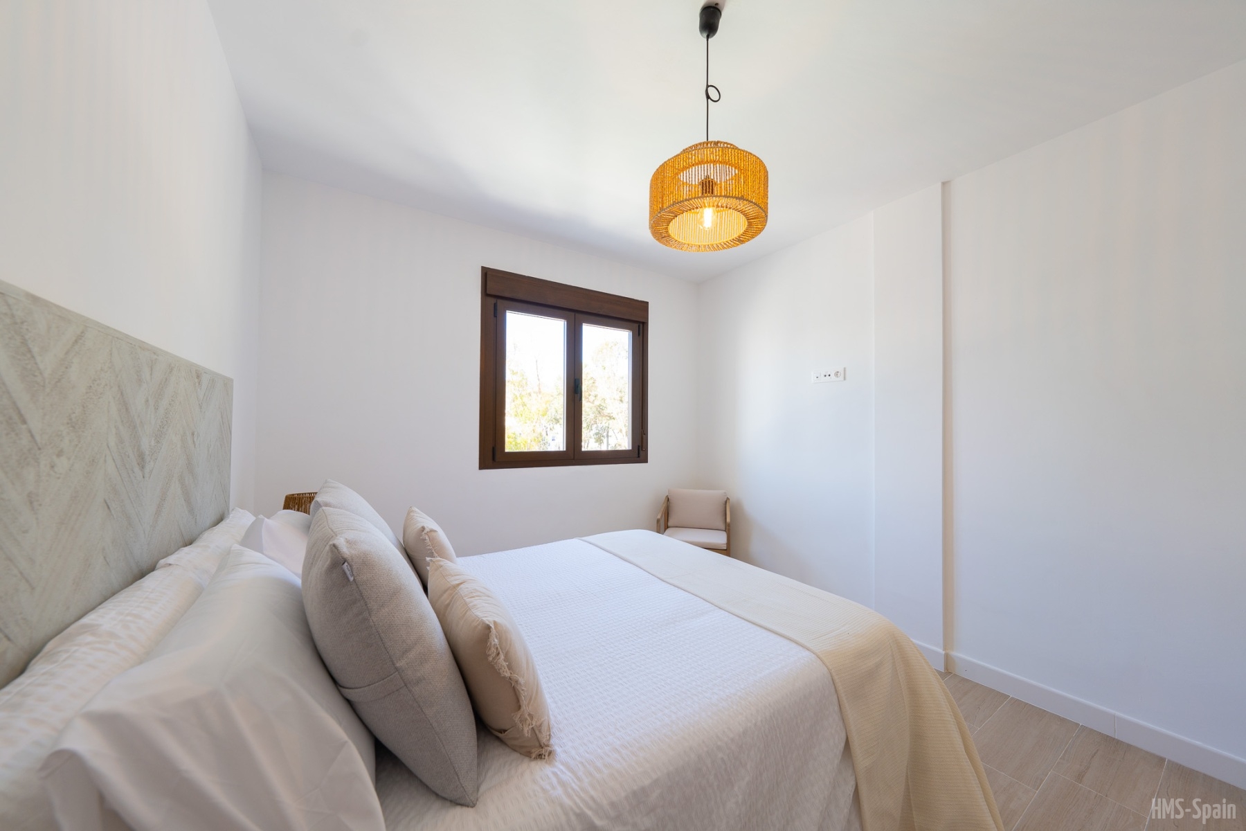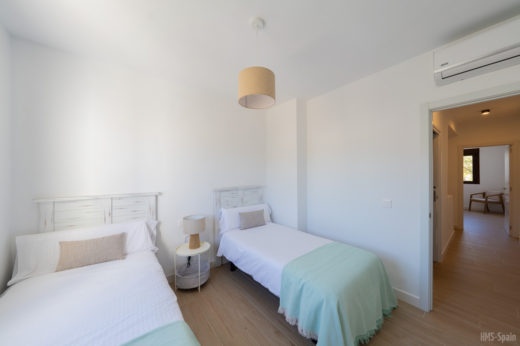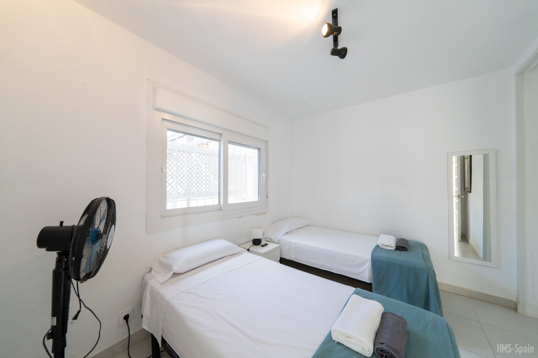 Cuenta con 2 habitaciones: una equipada con dos camas individuales de 90 cm, y otra con una cama de matrimonio de 150 cm, perfectas para familias o grupos pequeños. Todas las estancias disponen de aire acondicionado, garantizando el máximo confort durante todo el año.