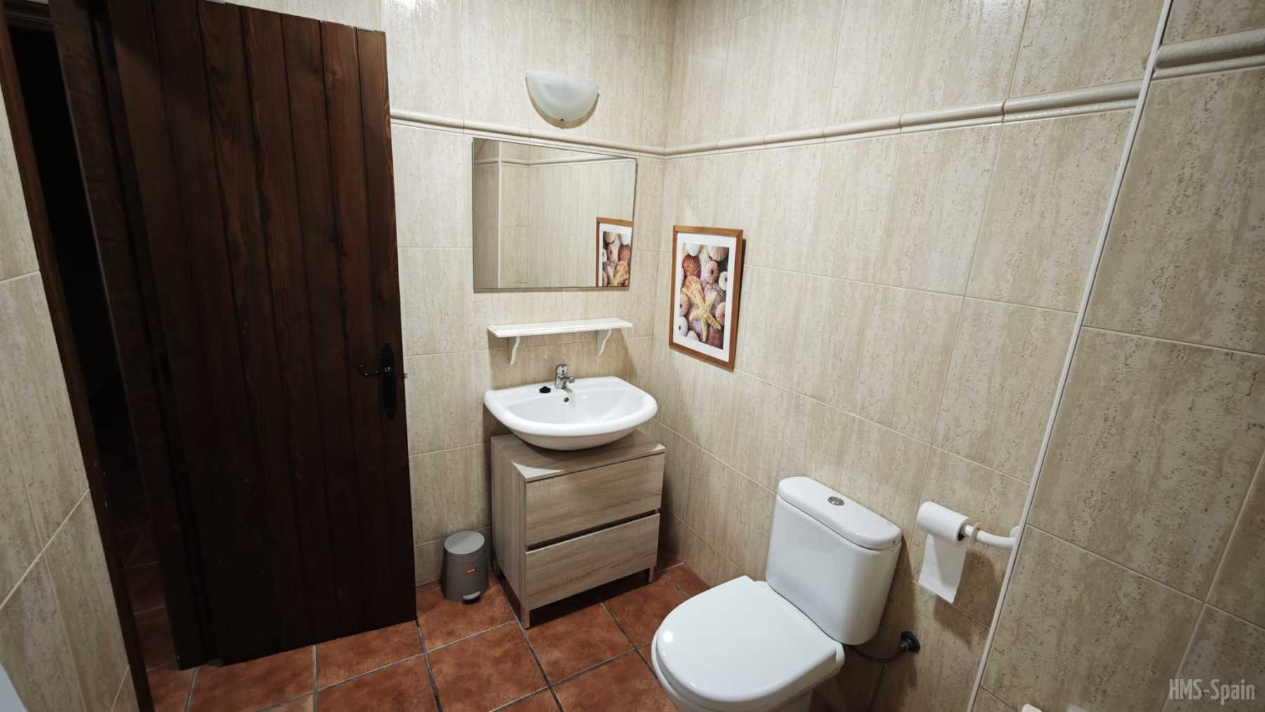 La casa dispone de un baño completo con bañera, y un luminoso salón-cocina totalmente equipado, que incluye vitrocerámica, frigorífico, microondas, lavadora, cafetera, plancha y todo lo necesario para una estancia cómoda.