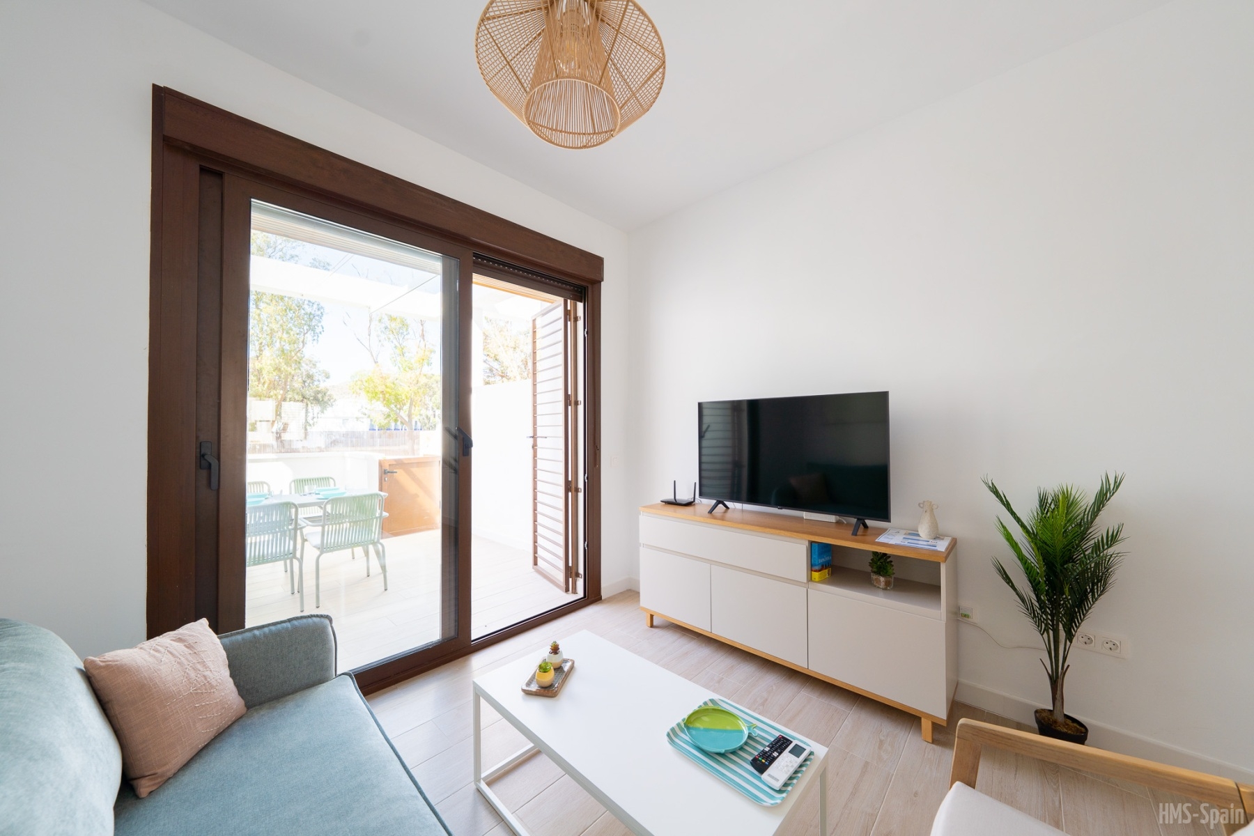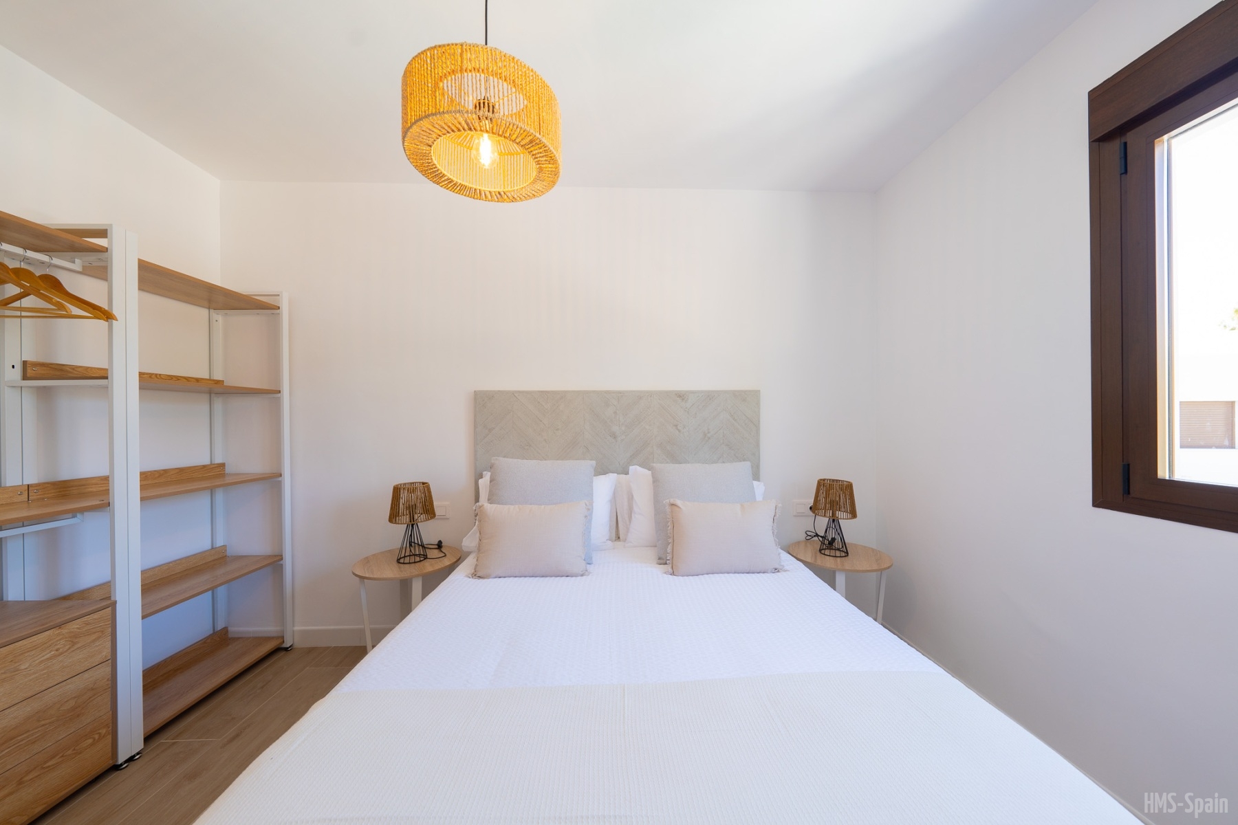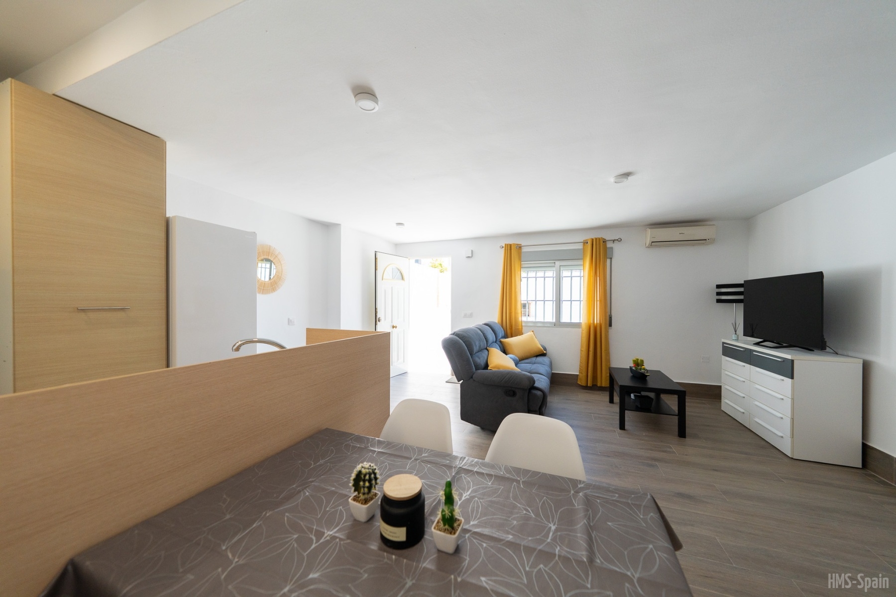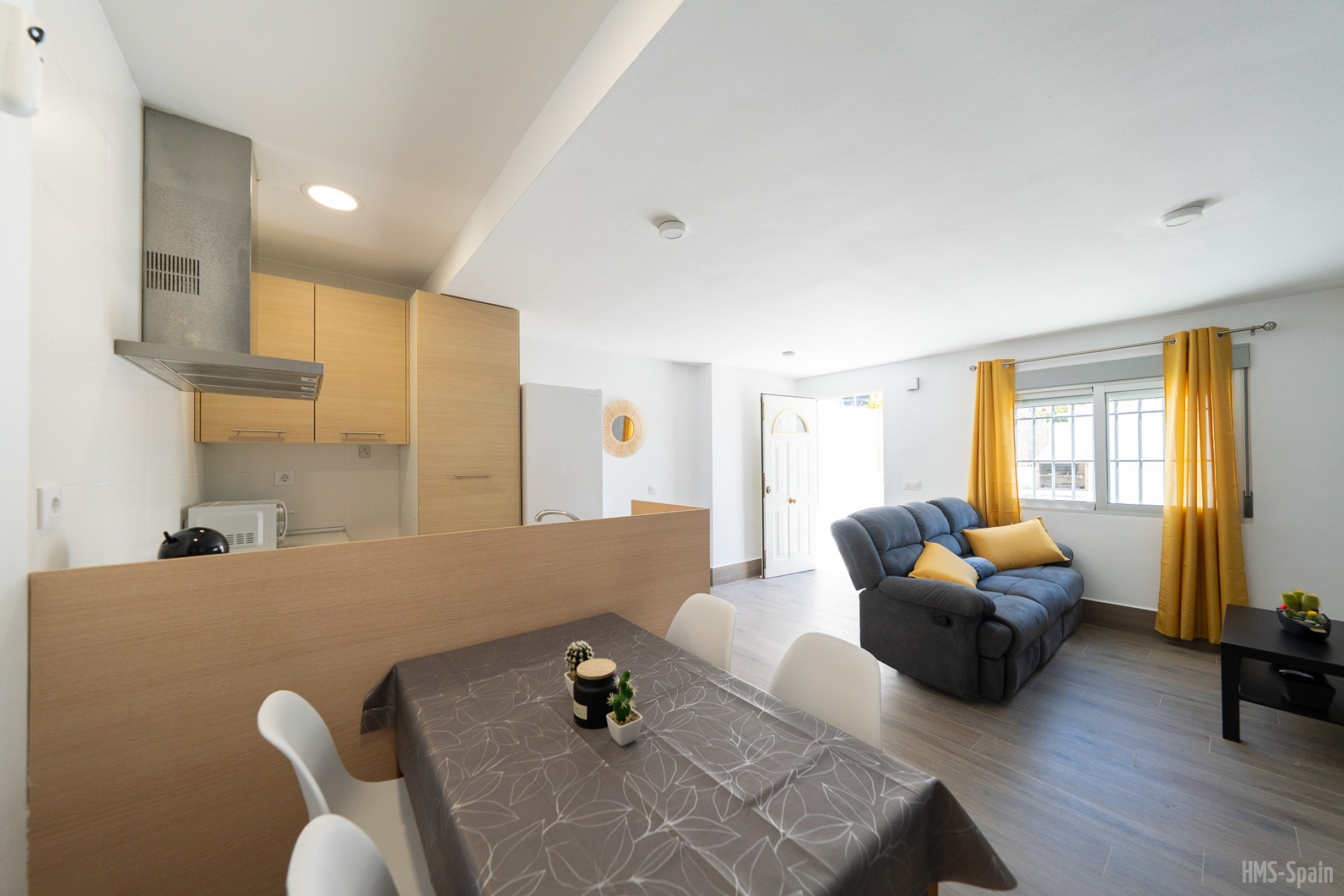 Precioso apartamento recién reformado en San José al lado de la playa. Dispone de 2 dormitorios, salón-cocina, baño y solárium con terraza y barbacoa. Ideal para pasar unas estupendas vacaciones en familia. A 50m a pie de la playa de La Calilla.