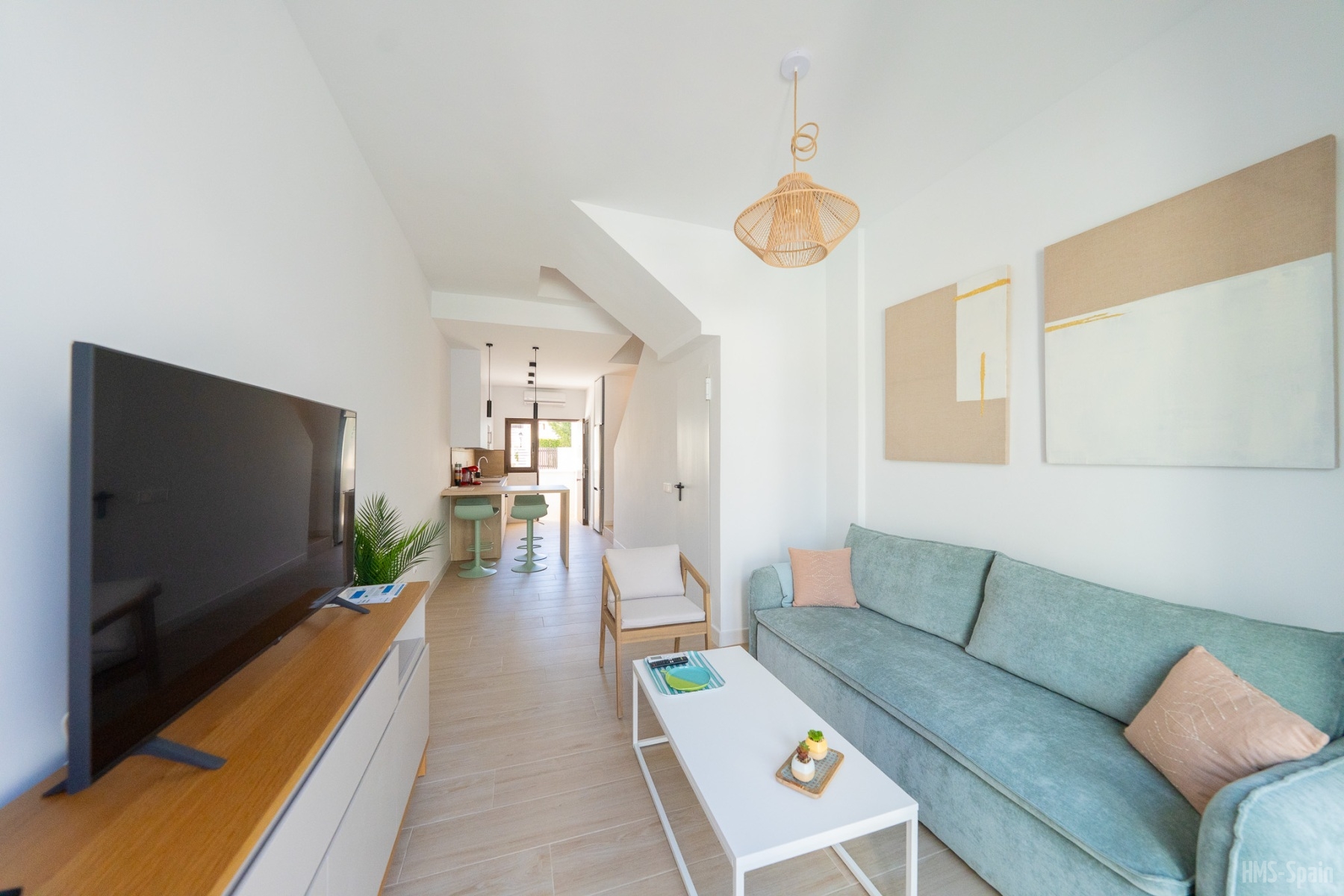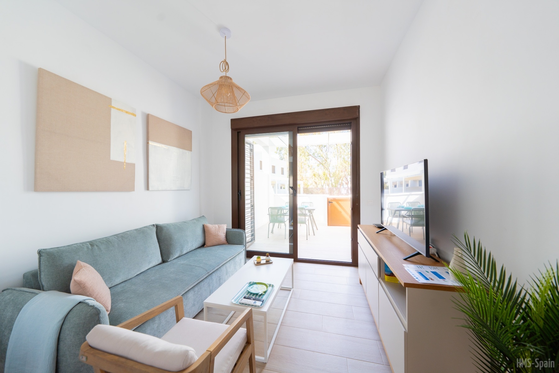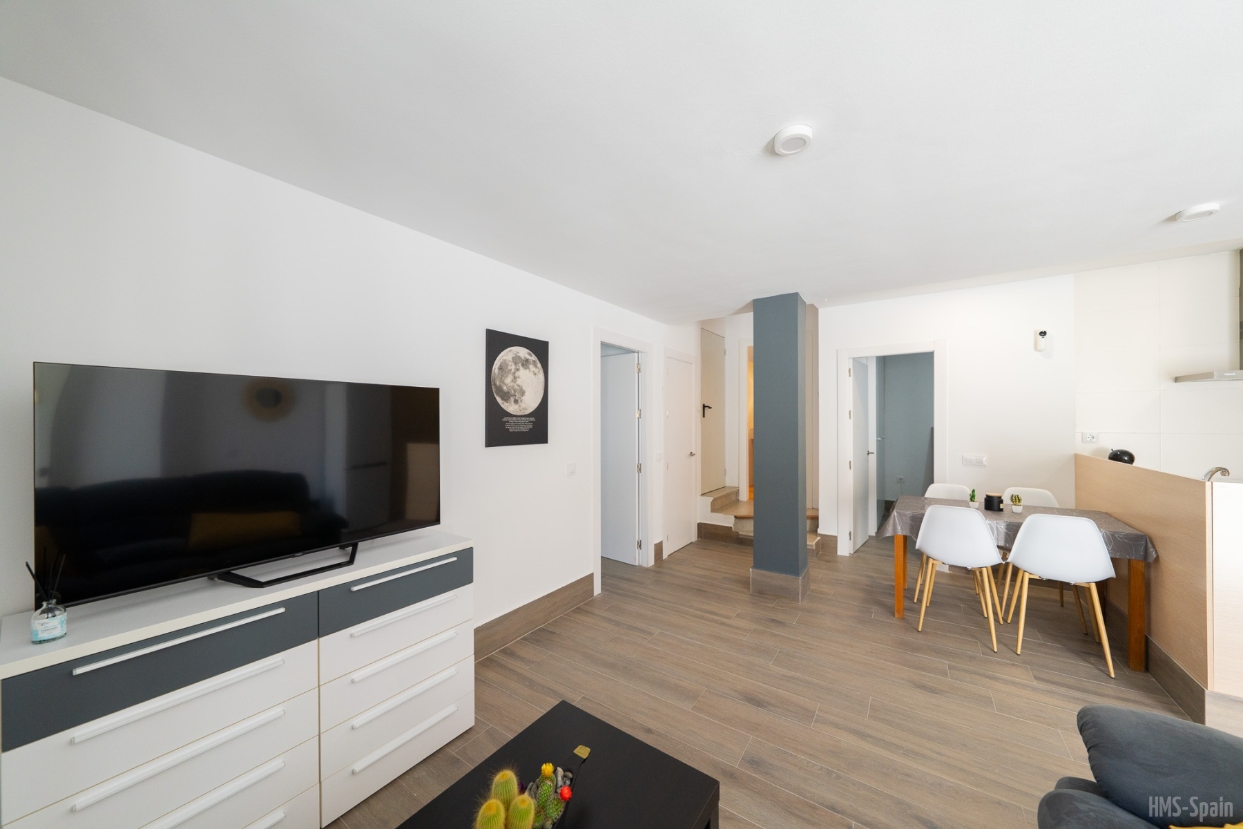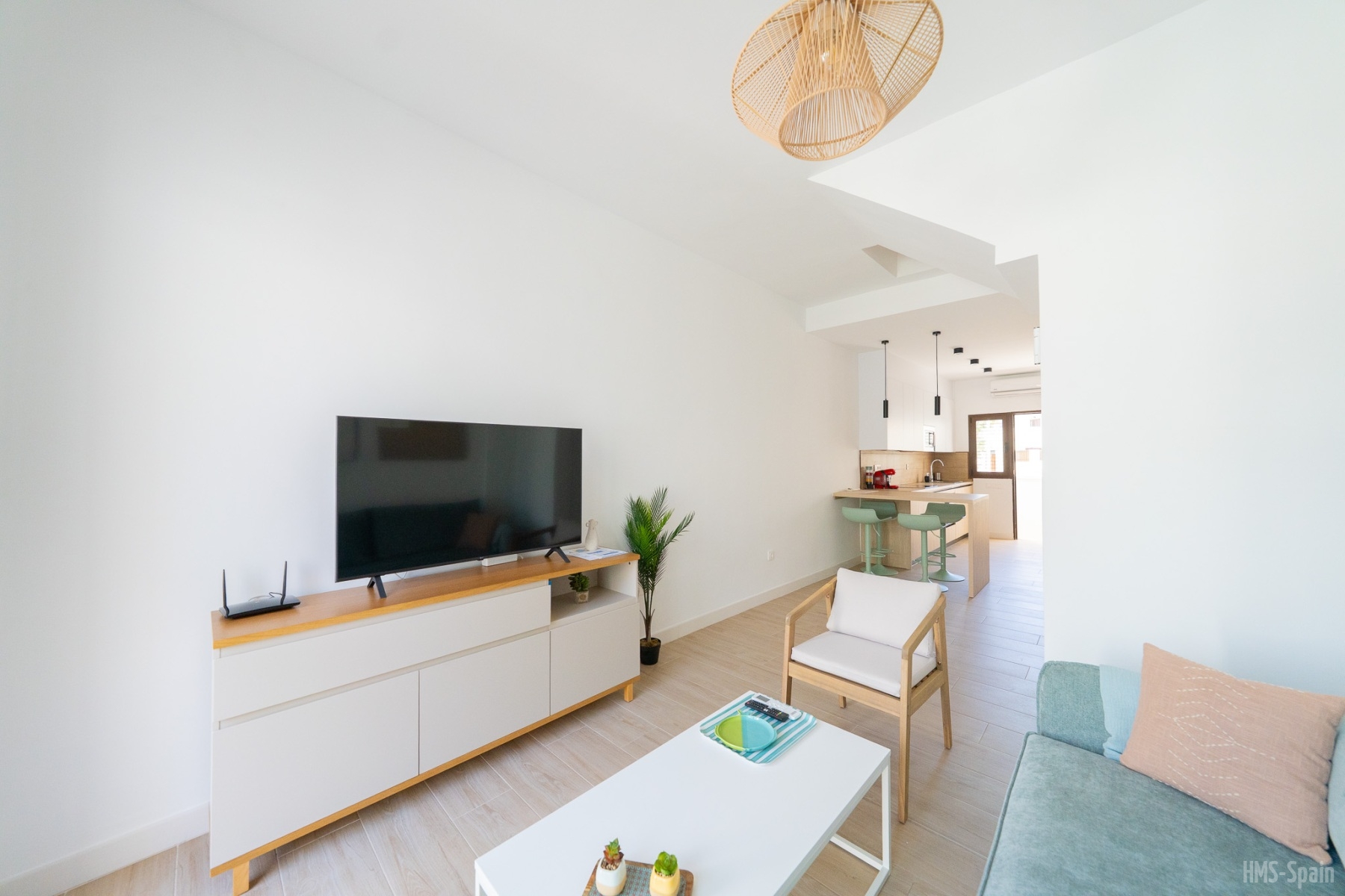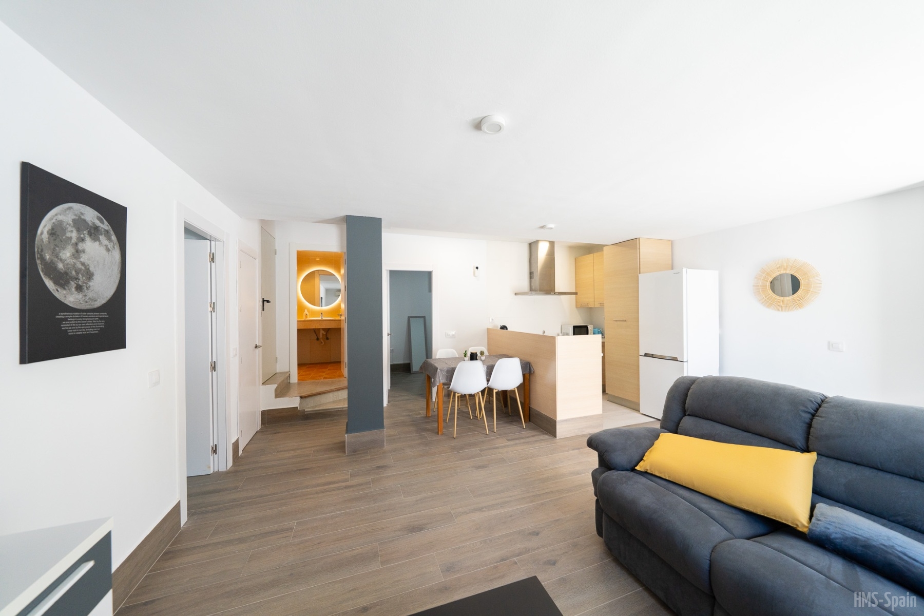 Precioso apartamento recién reformado en San José al lado de la playa. Dispone de 2 dormitorios, salón-cocina, baño y solárium con terraza y barbacoa. Ideal para pasar unas estupendas vacaciones en familia. A 50m a pie de la playa de La Calilla.