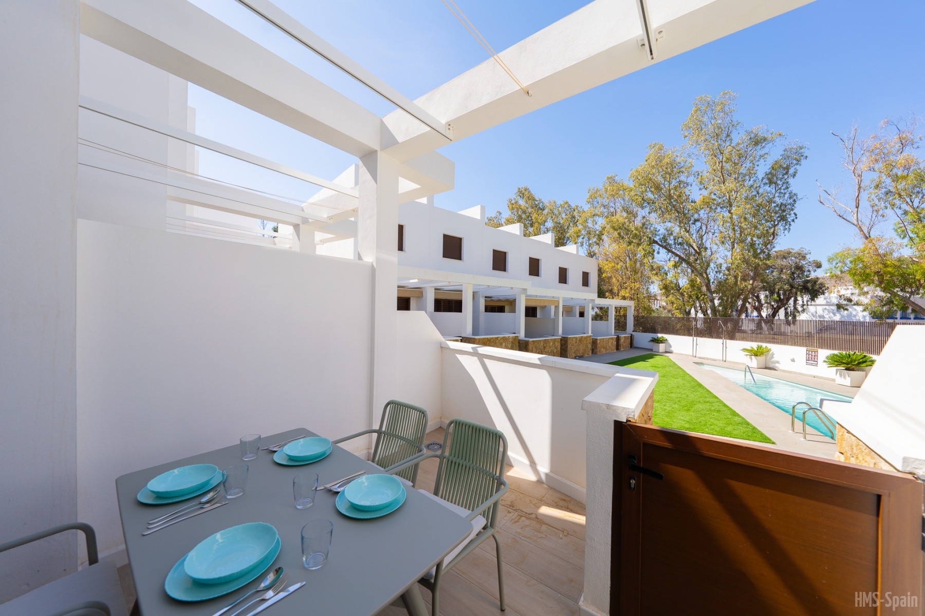 Uno de sus mayores atractivos es su bonita terraza con mobiliario de exterior, ideal para disfrutar de comidas al aire libre o momentos de relax.