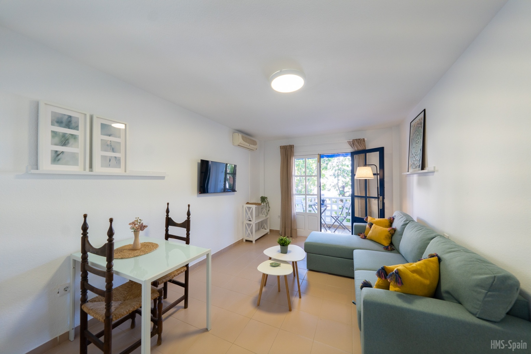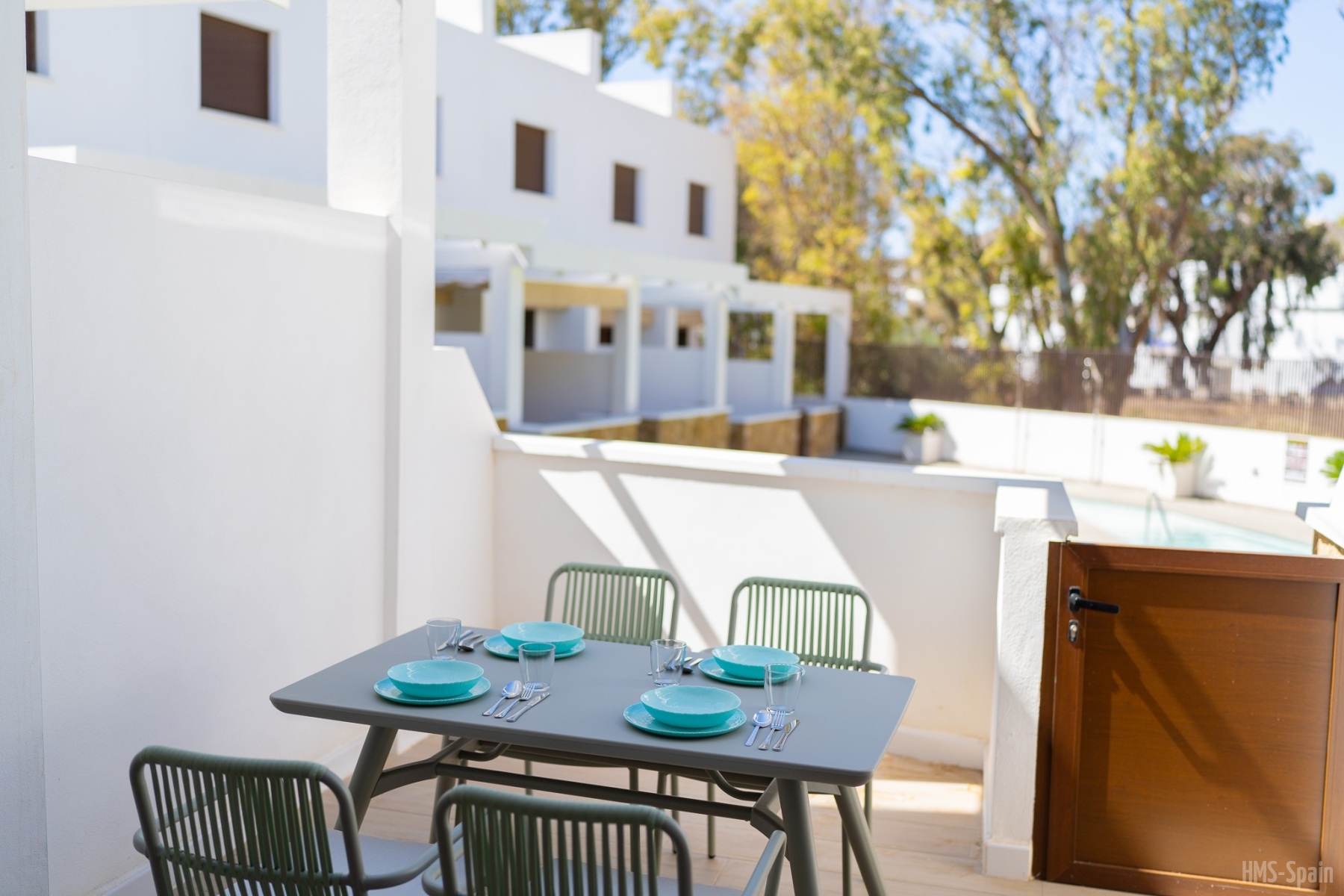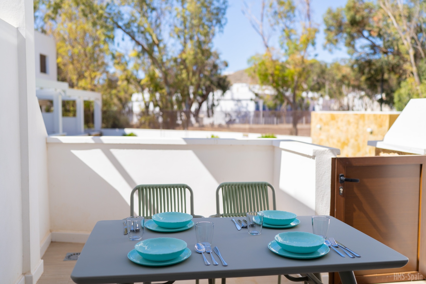El apartamento se encuentra en una urbanización con piscina panorámica con vistas al mar y bajada directa. A 10 min del pueblo, a 2 minutos de la playa de la calilla y a 20 andando de la espectacular playa de los genovés.