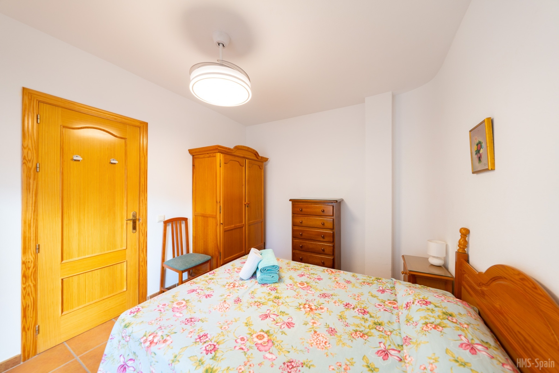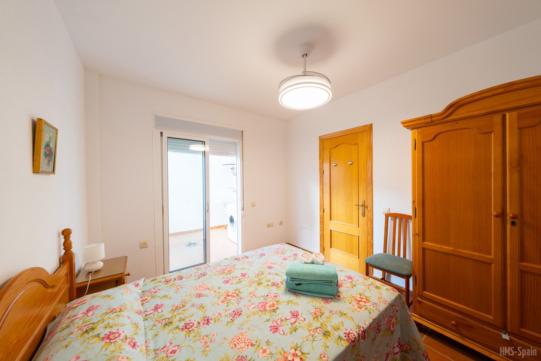 Bonito apartamento de alquiler vacacional ideal para familias. Dispone de 2 dormitorios equipados con cama de matrimonio de 150cm y 2 camas de 90 cm.Un baño, cocina completamente equipada y salón-comedor con sofa-cama. Cuenta con una amplia terraza equipada con mesa y sillas y barbacoa para poder disfrutar de comidas al aire libre.