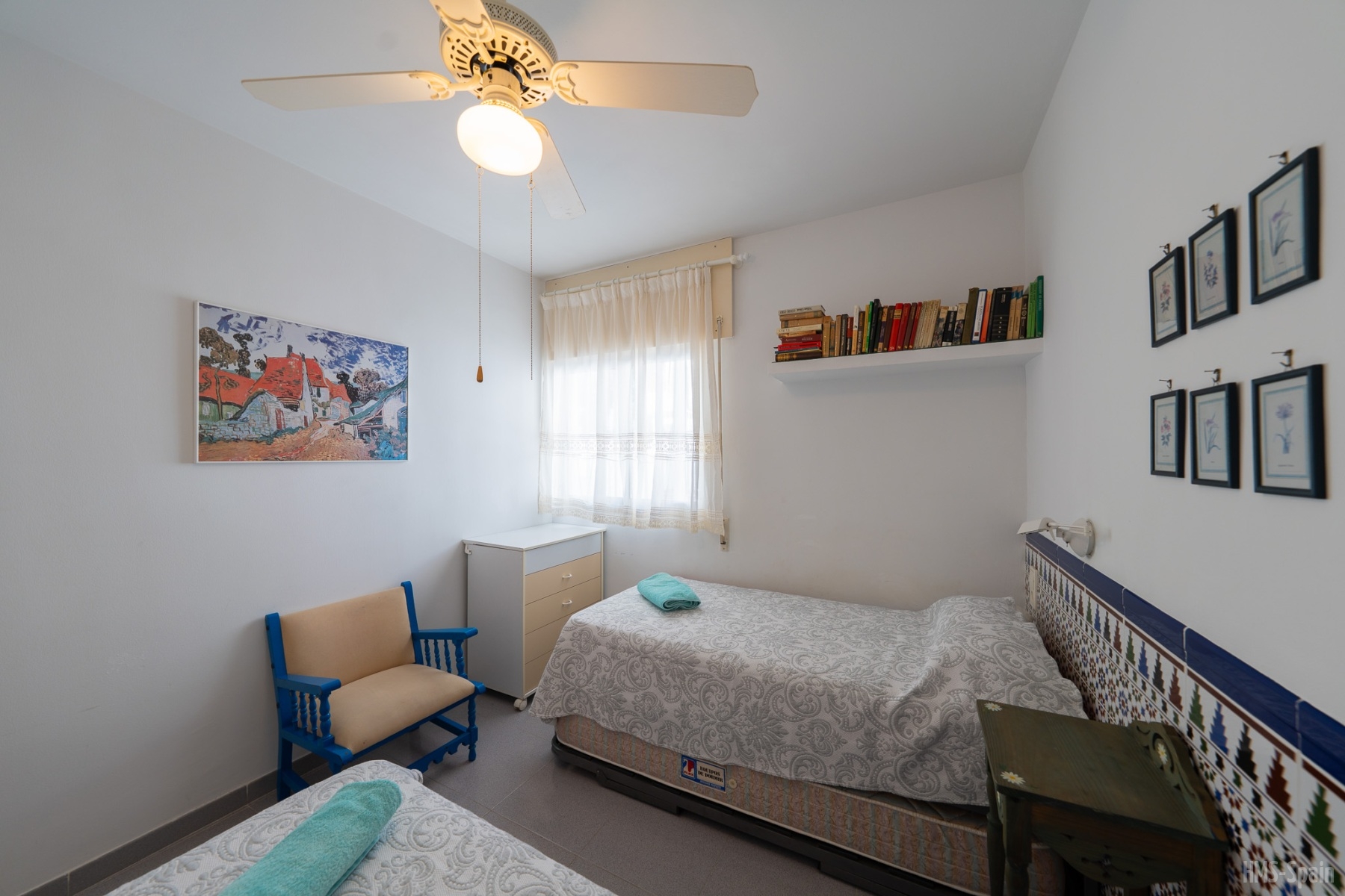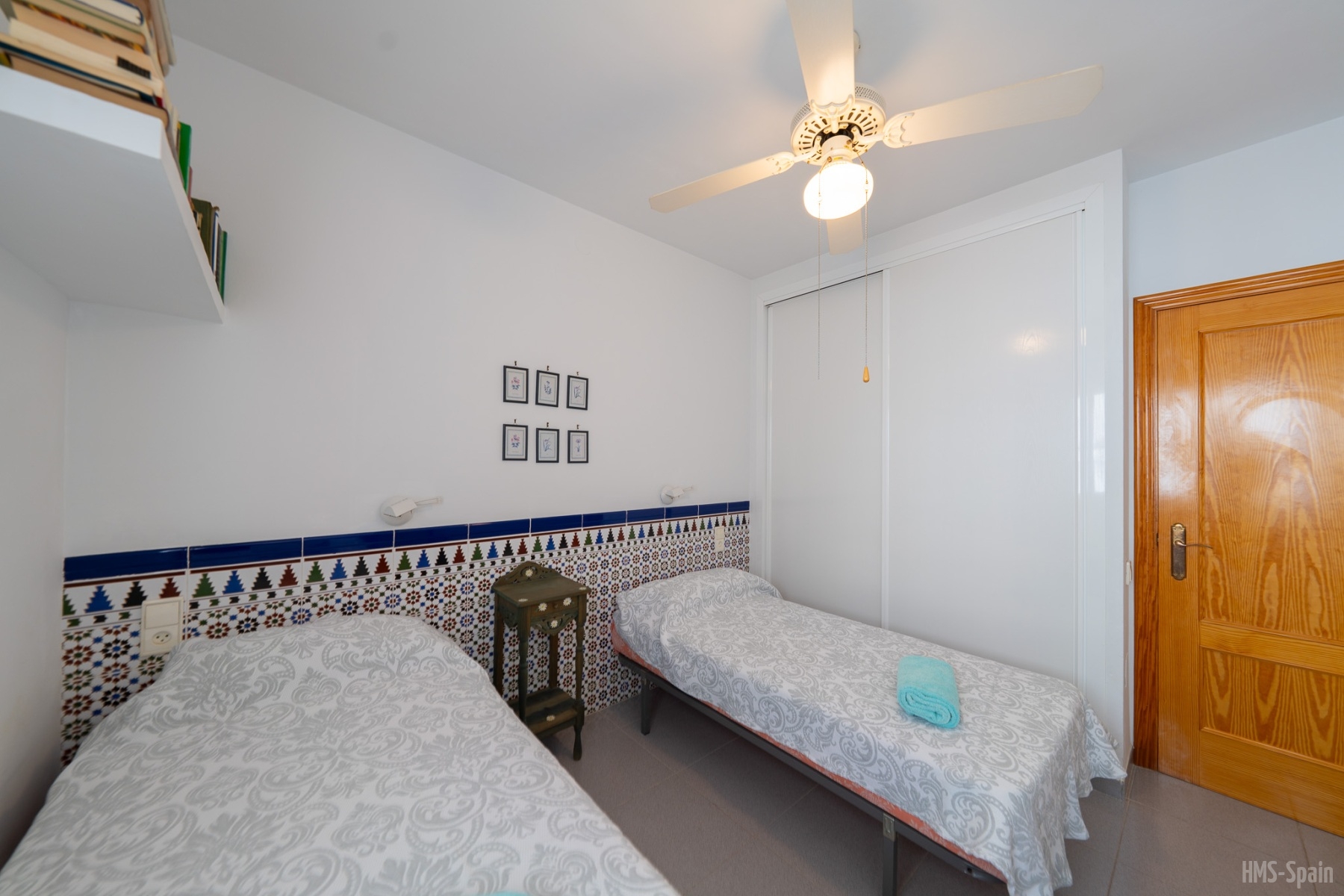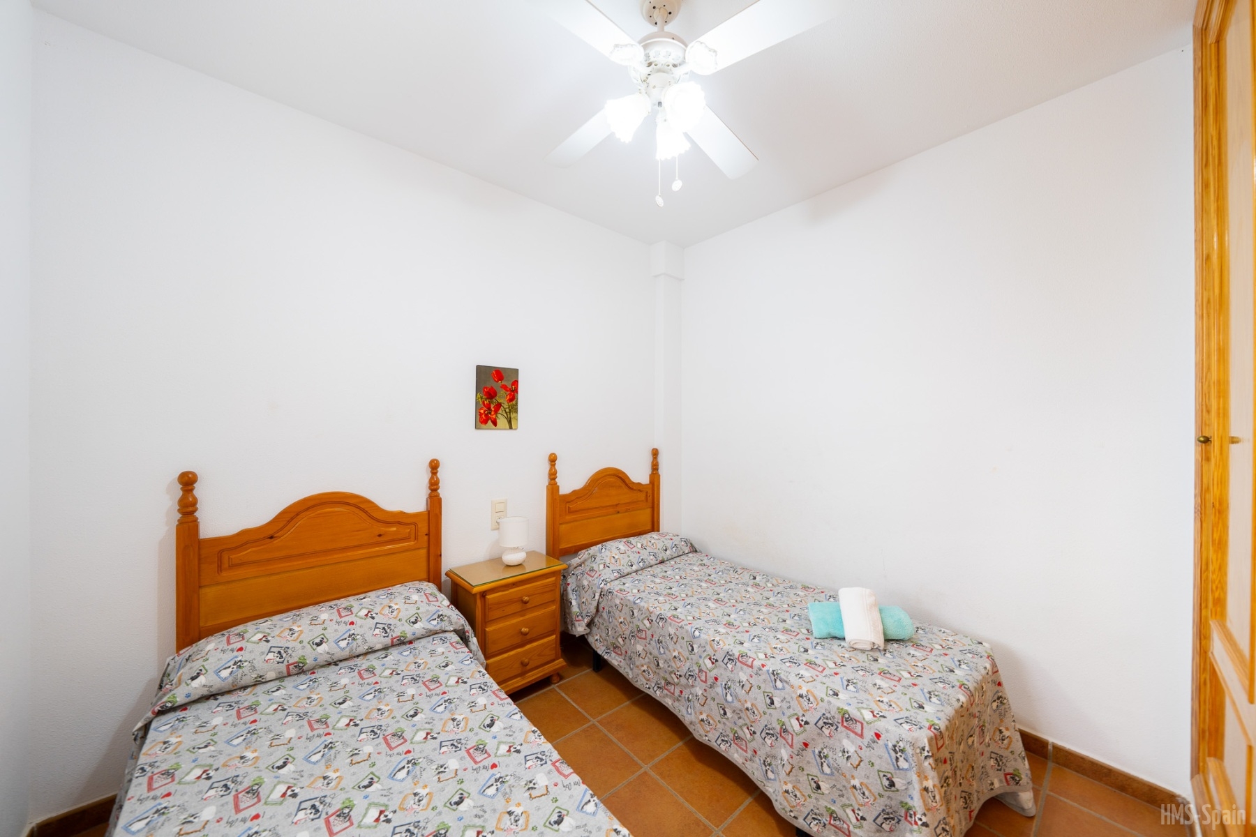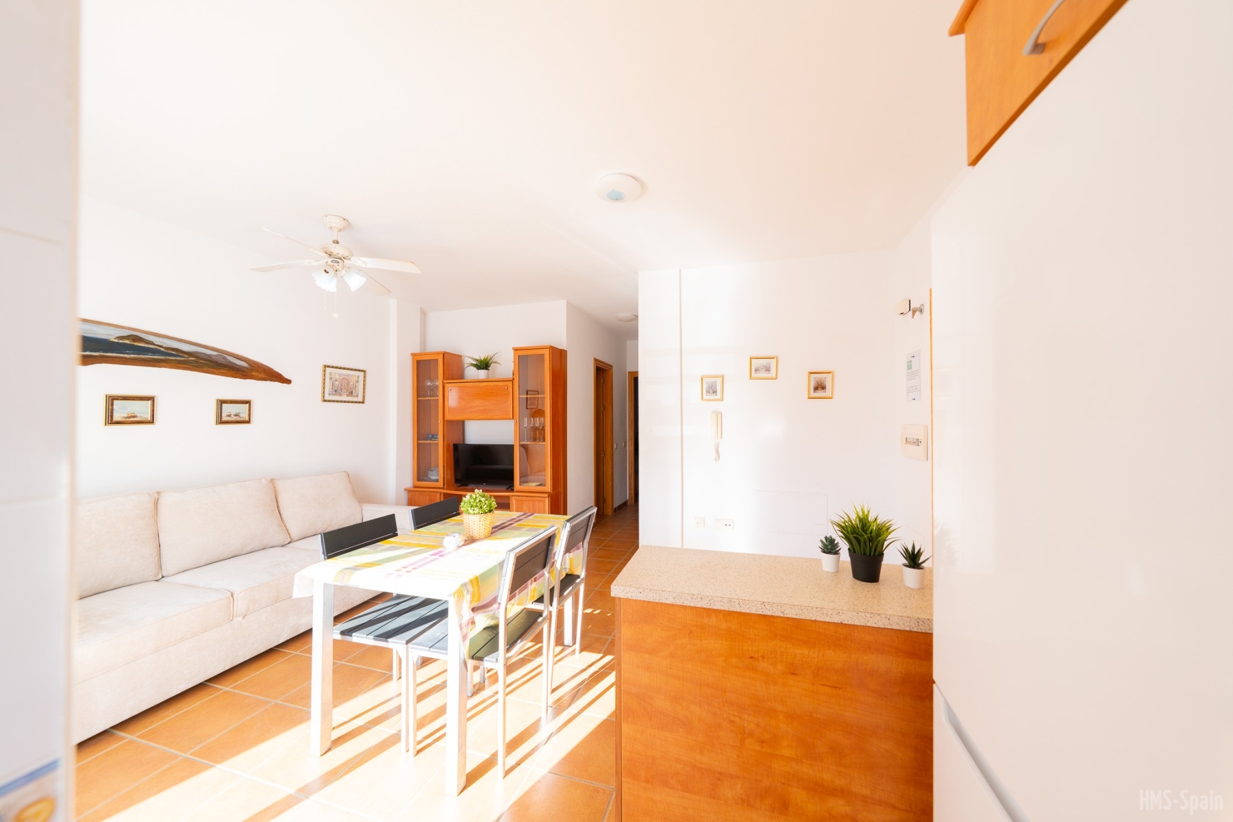 Acogedor apartamento muy cerca del centro y de la playa. Dispone de dos dormitorios con tres camas individuales, y otra habitación con una cama de 150cm. Salón, cocina totalmente equipada con horno, lavadora, air fryer, cafetera. Terraza y piscina comunitaria. Aire acondicionado en el salón Ideal para disfrutar unas estupendas vacaciones.