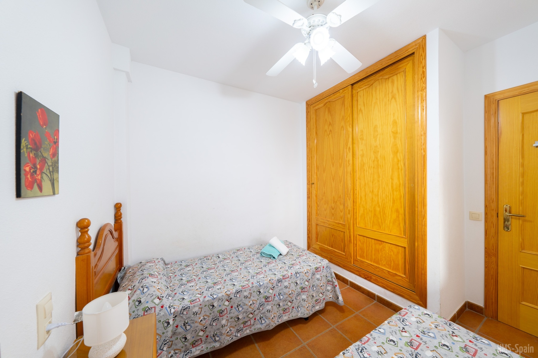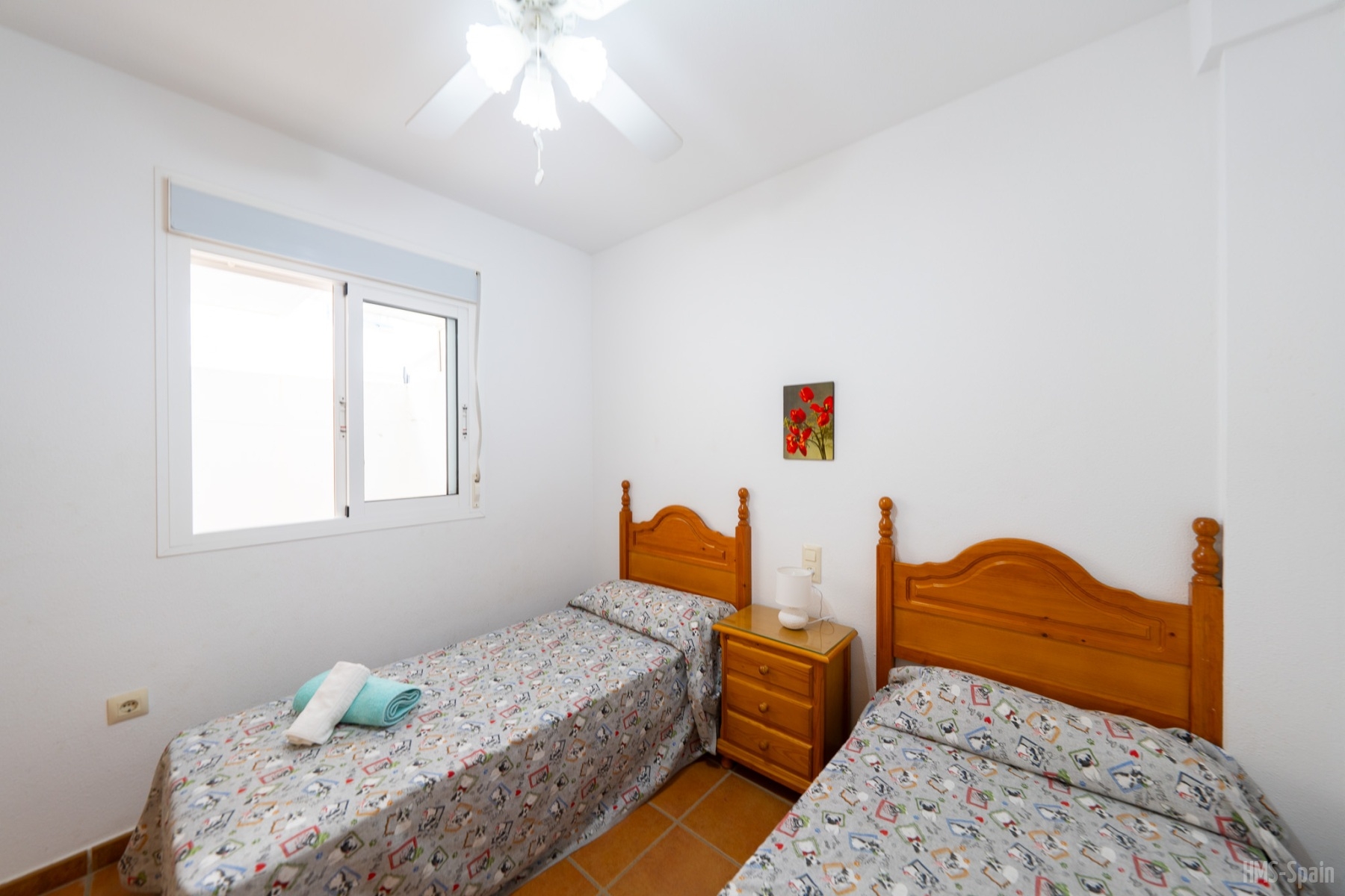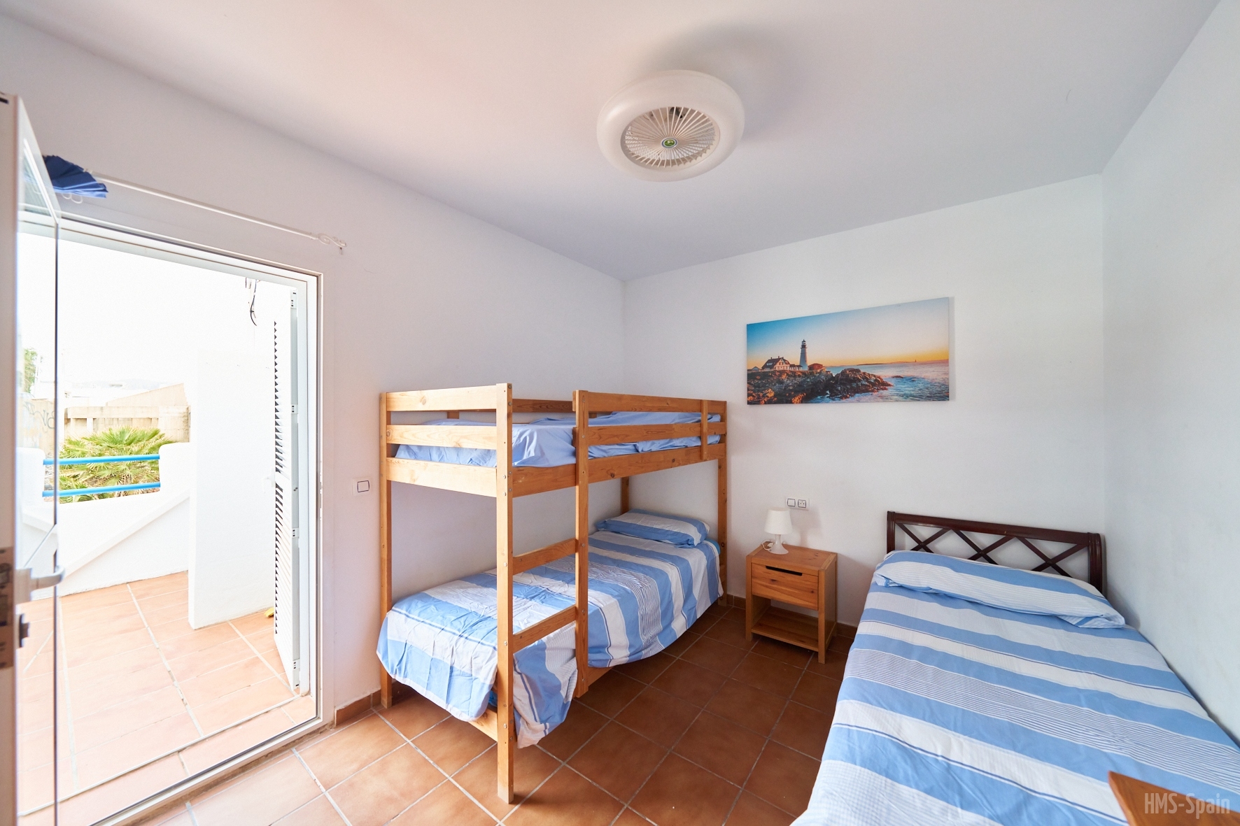 Apartamento con magnífica ubicación y maravillosas vistas a la Bahía de San Jose. Tiene 2 dormitorios, uno con una cama doble de 150 cm y el otro con una cama individual de 90 cm y una litera. Aire Acondicionado. Wiffi gratis