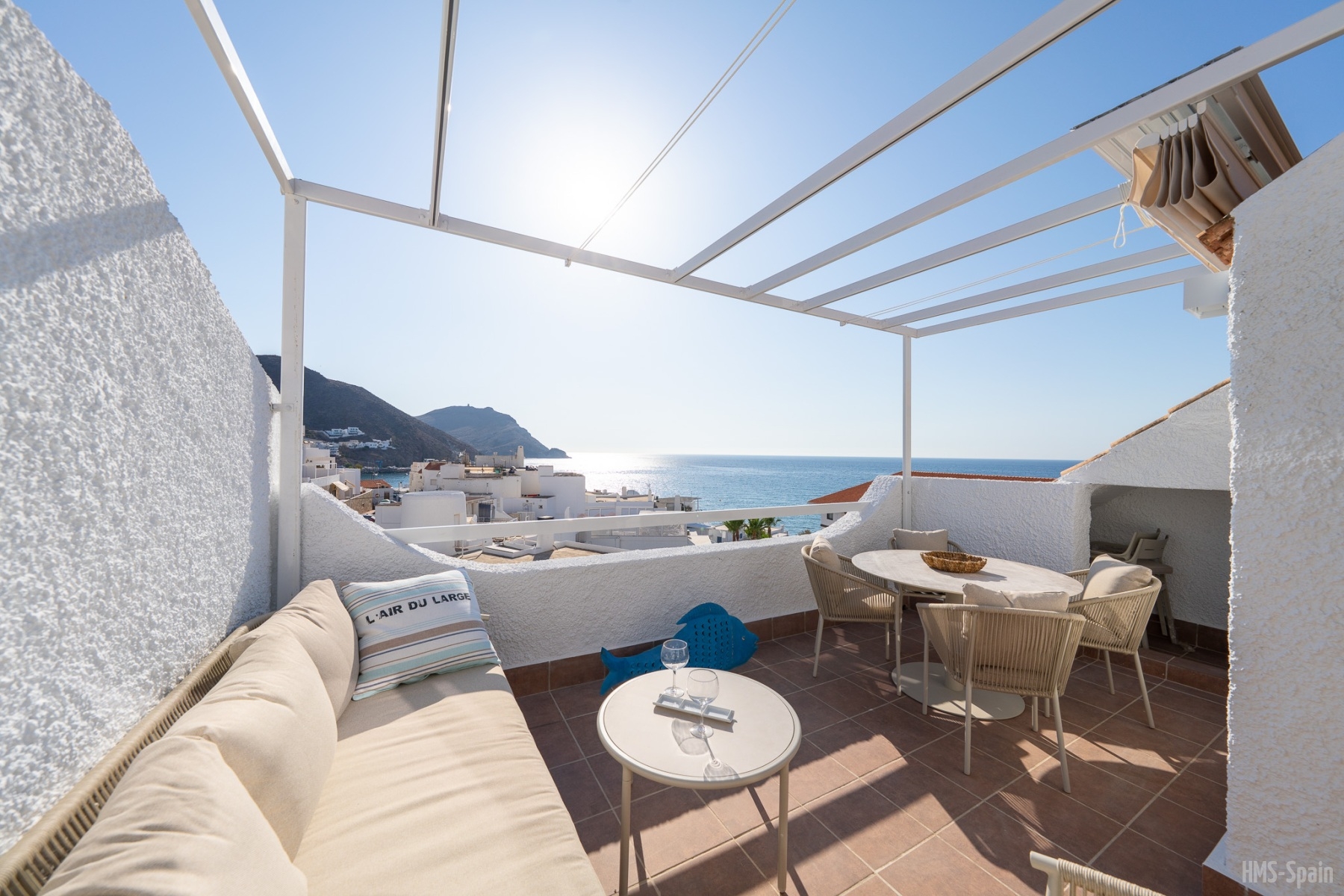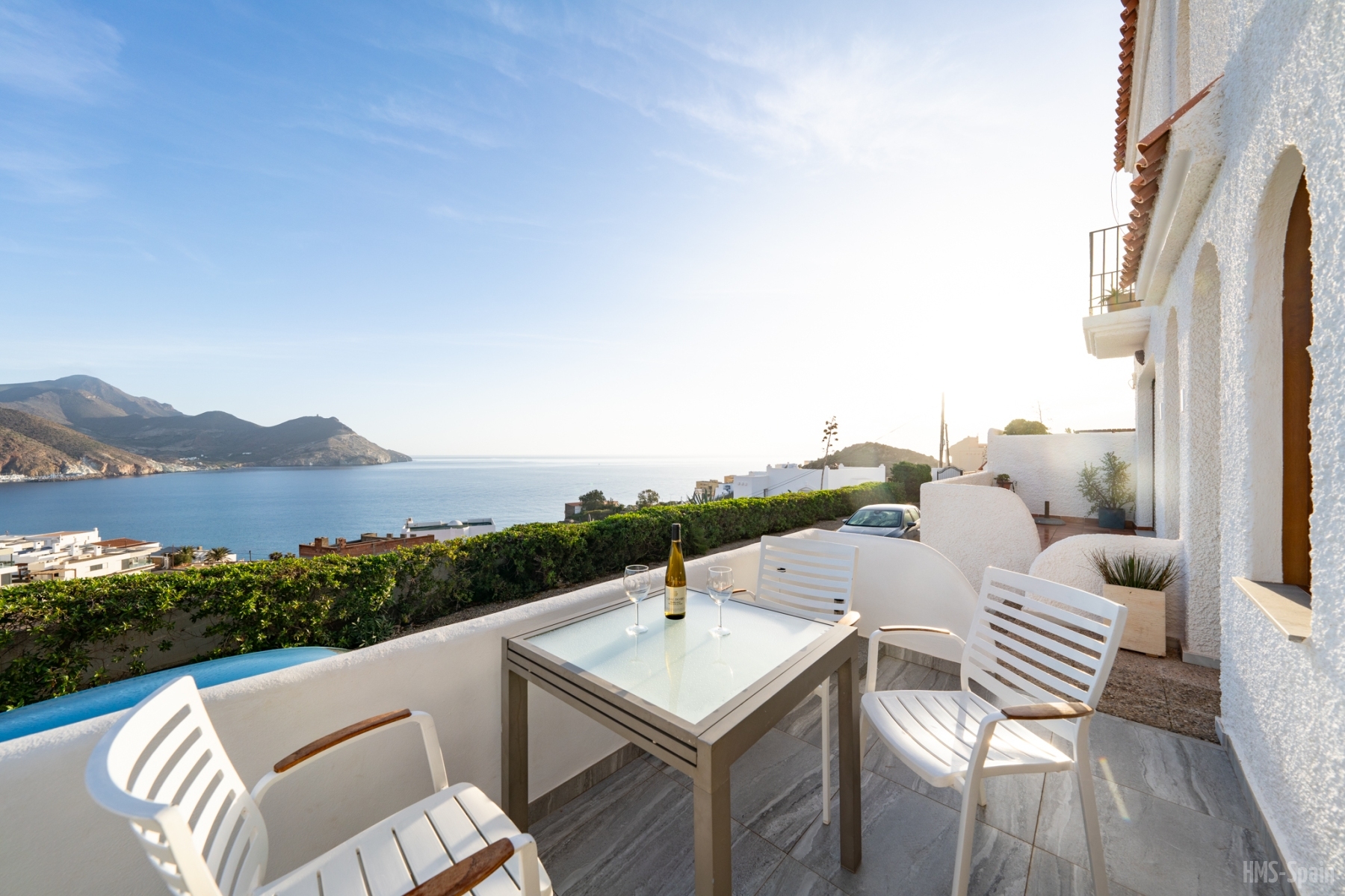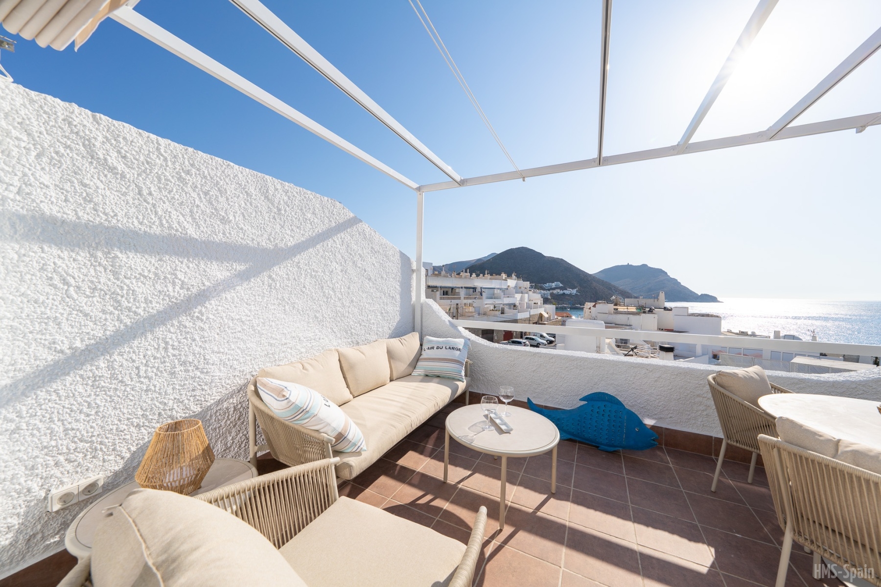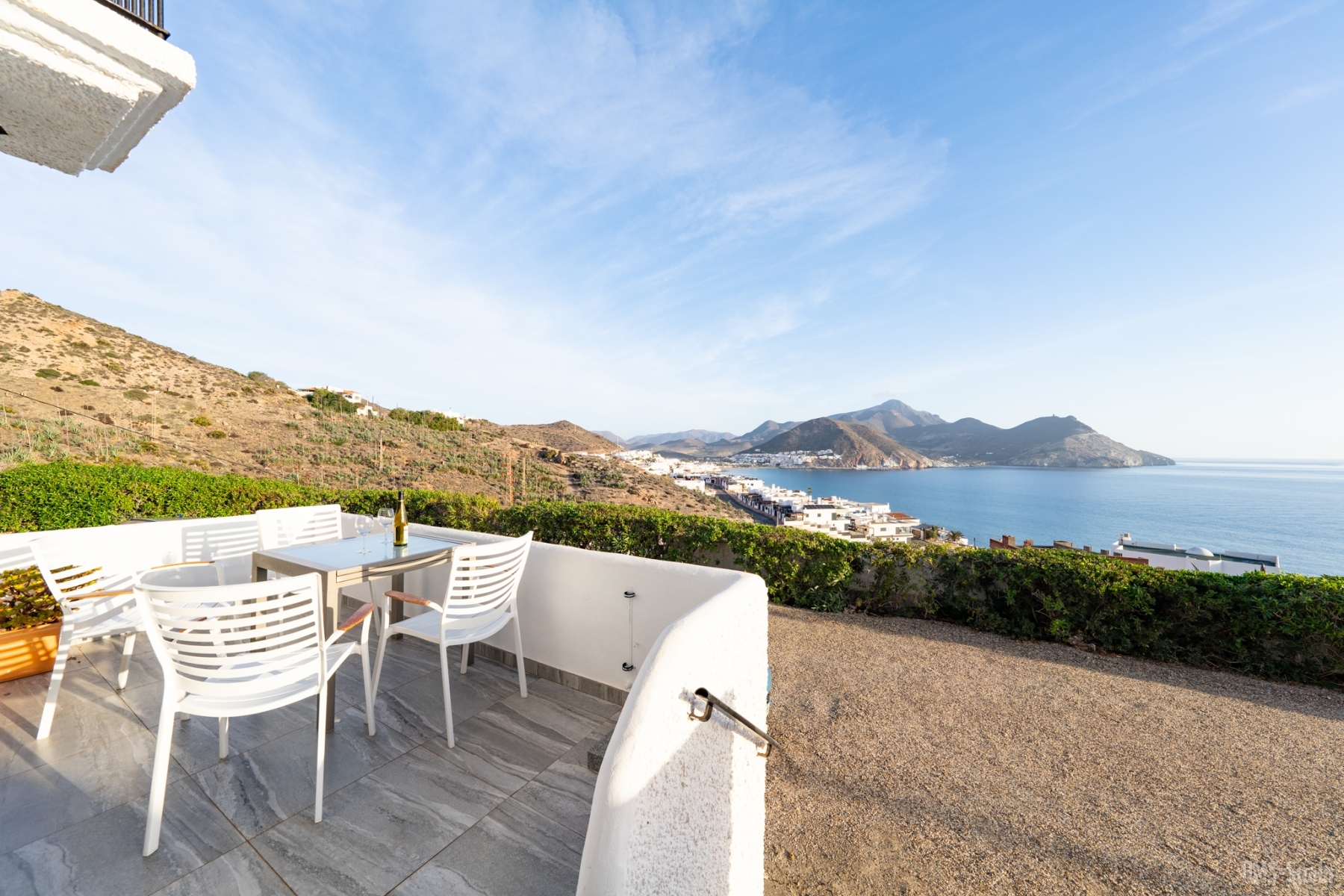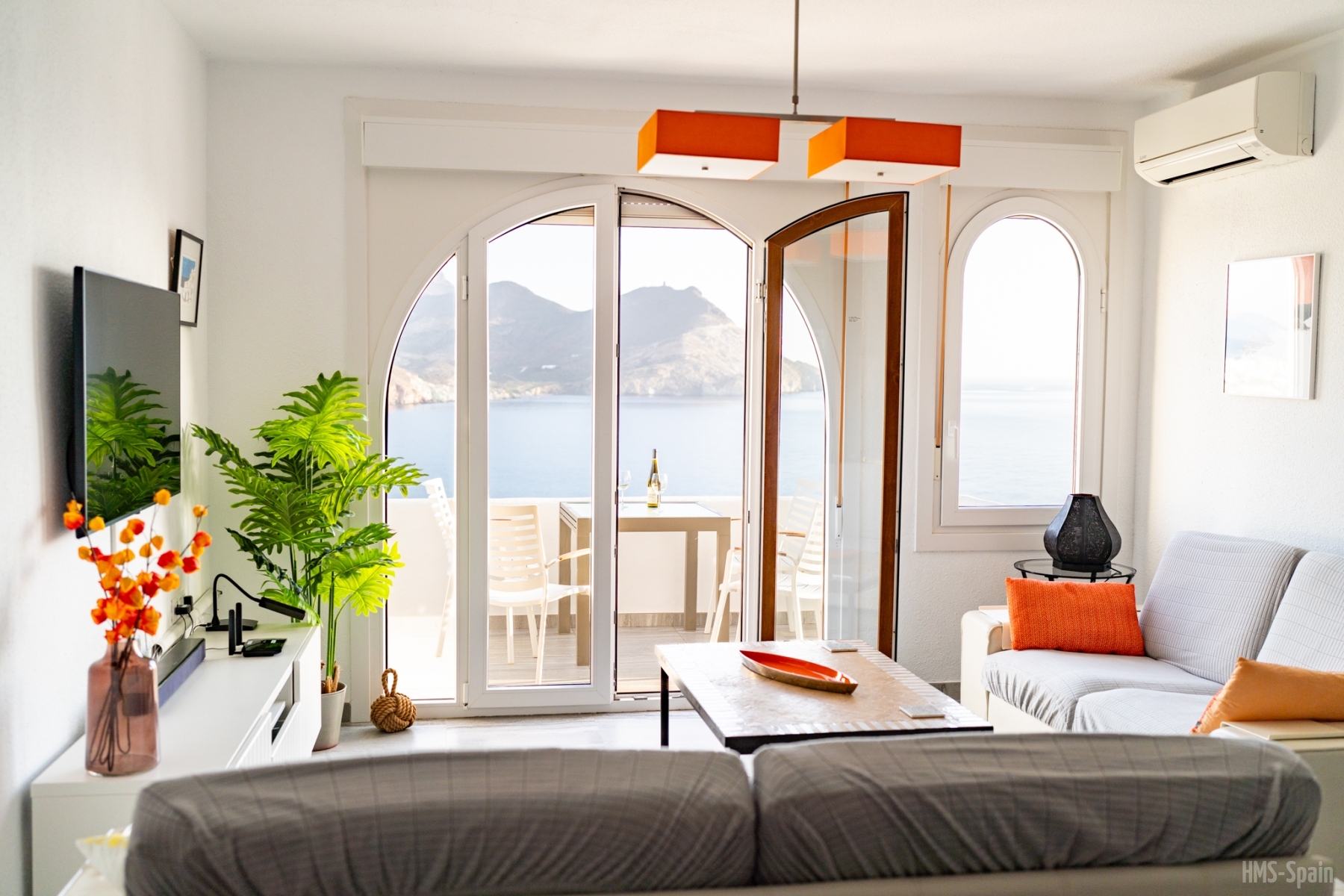Apartamento ubicado en el parque natural de Cabo de Gata, en primera linea de playa. Con vistas espectaculares. Dispone de una piscina comunitaria sobre las rocas del mar, bajada privada al mar, la playa más próxima esta a escasos 5 minutos a pie.