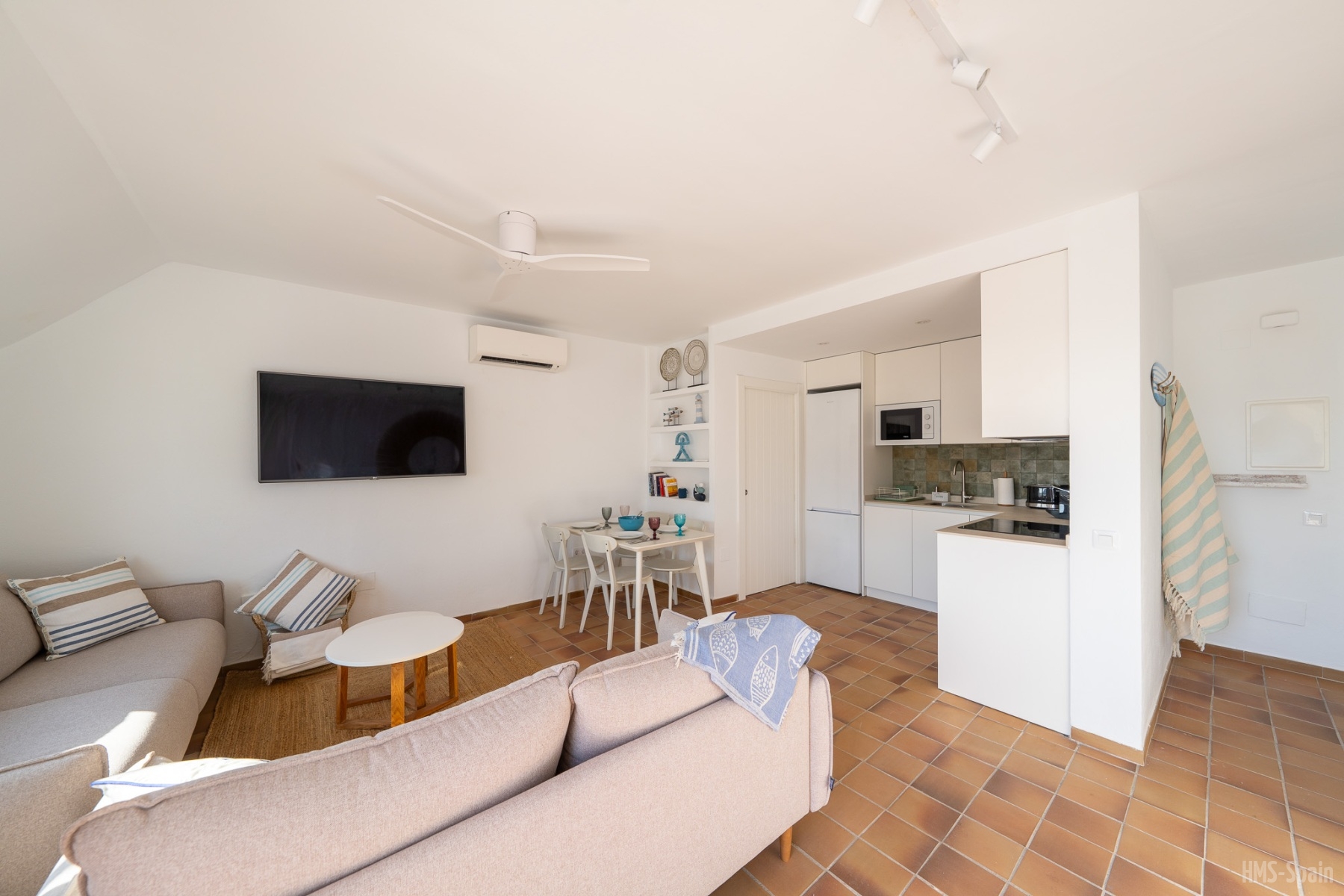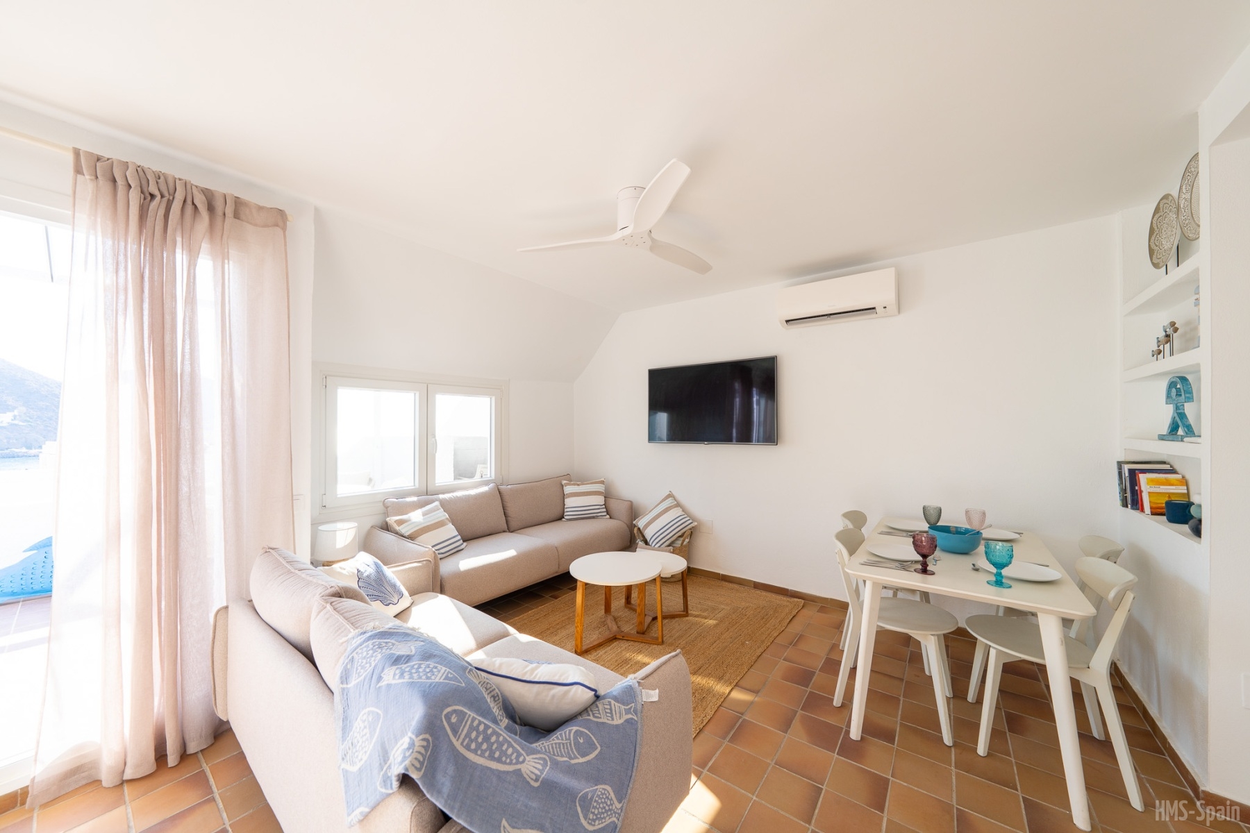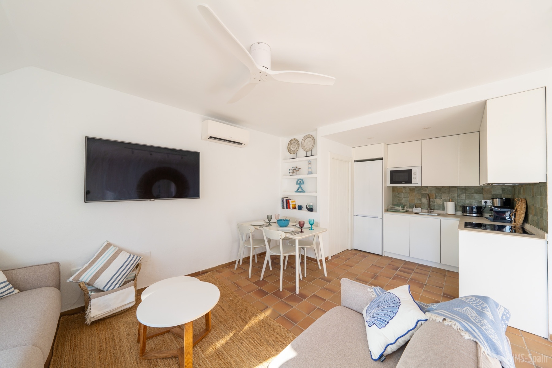Fabuloso dúplex de dos dormitorios y dos baños ubicado en urbanización con piscina. Con capacidad para cuatro personas, dispone de cocina totalmente equipada, salón-comedor, dos dormitorios y amplia terraza equipada con mesas y sillas con vistas al mar. Aire acondicionado en todas las habitaciones y en el salón. wifi gratis