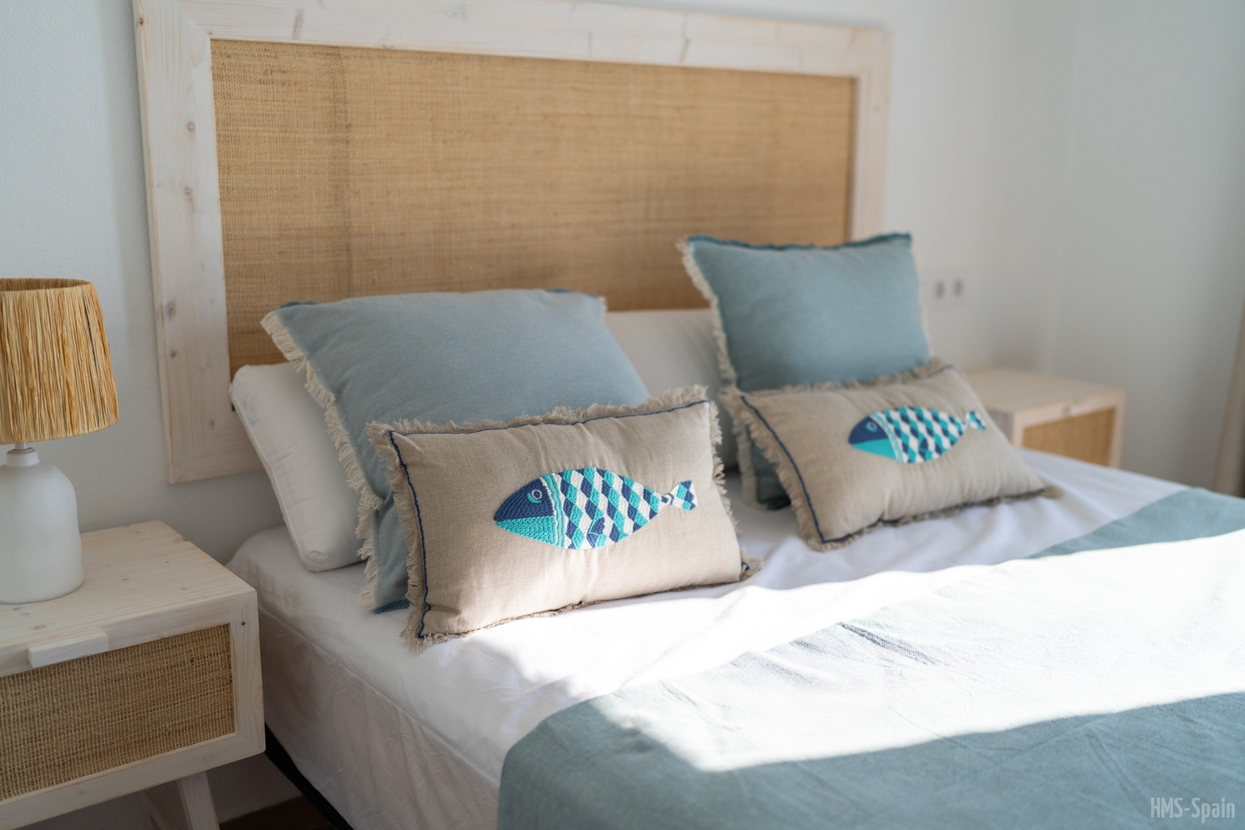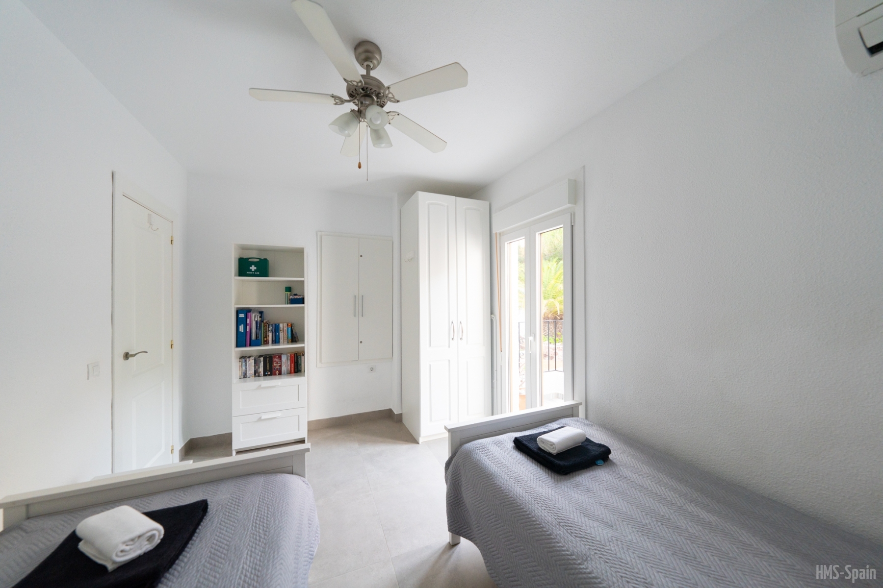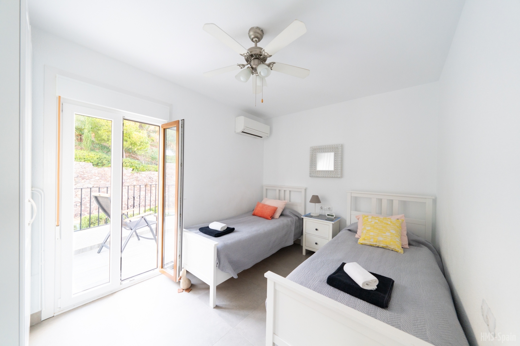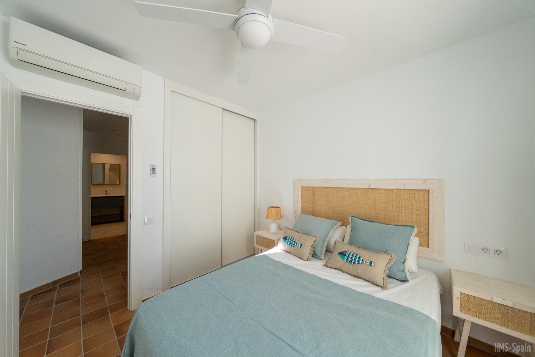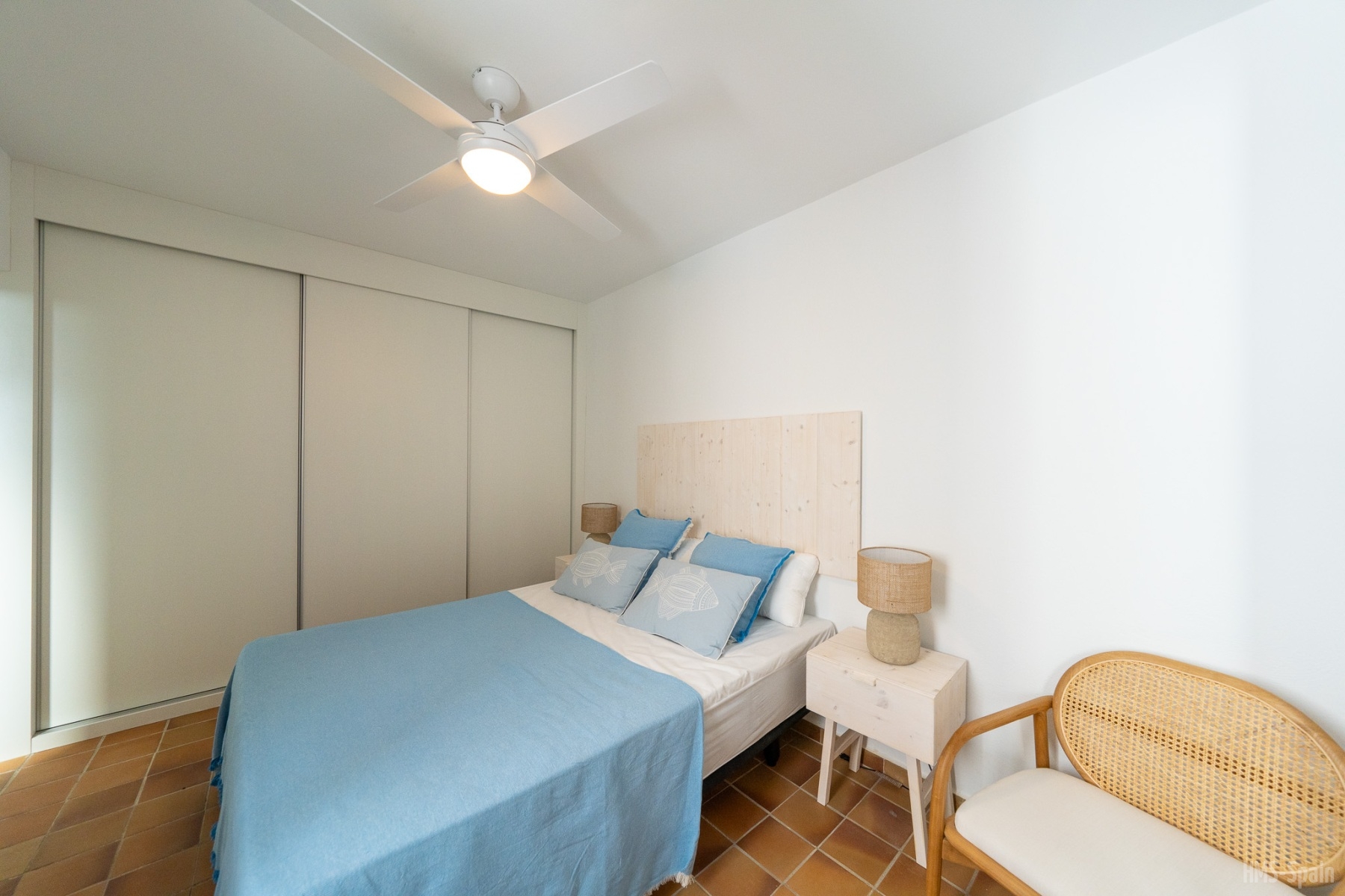 Cuenta con 2 habitaciones: una equipada con dos camas individuales de 90 cm, y otra con una cama de matrimonio de 150 cm, perfectas para familias o grupos pequeños. Todas las estancias disponen de aire acondicionado, garantizando el máximo confort durante todo el año.