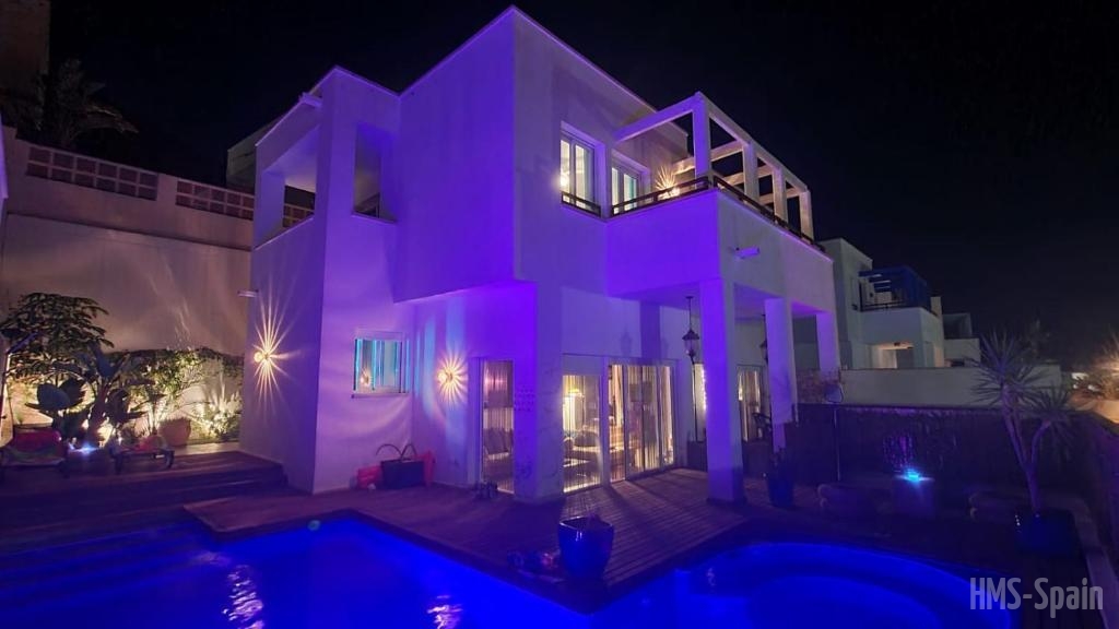 Espectacular Villa con piscina privada, totalmente equipada y con capacidad para 8 personas ubicada en una zona tranquila de San José en pleno Parque Natural de Cabo de Gata, a 10 minutos del centro del pueblo y de la playa