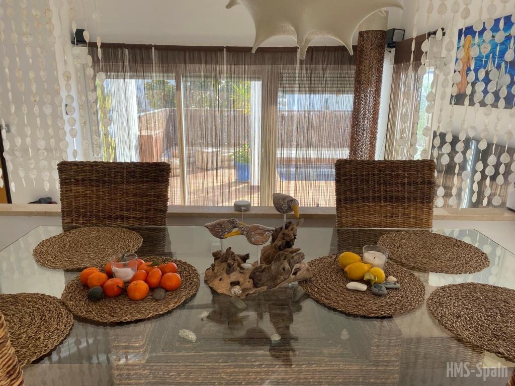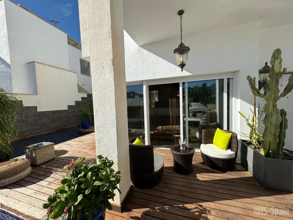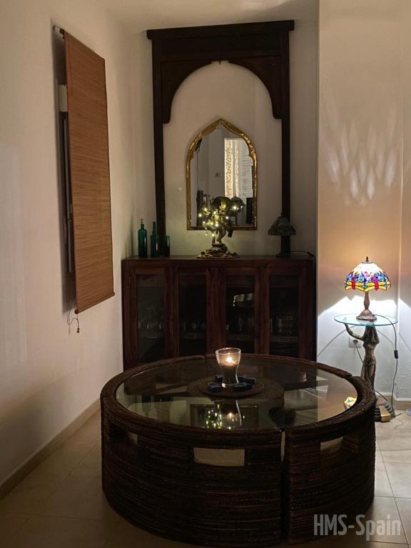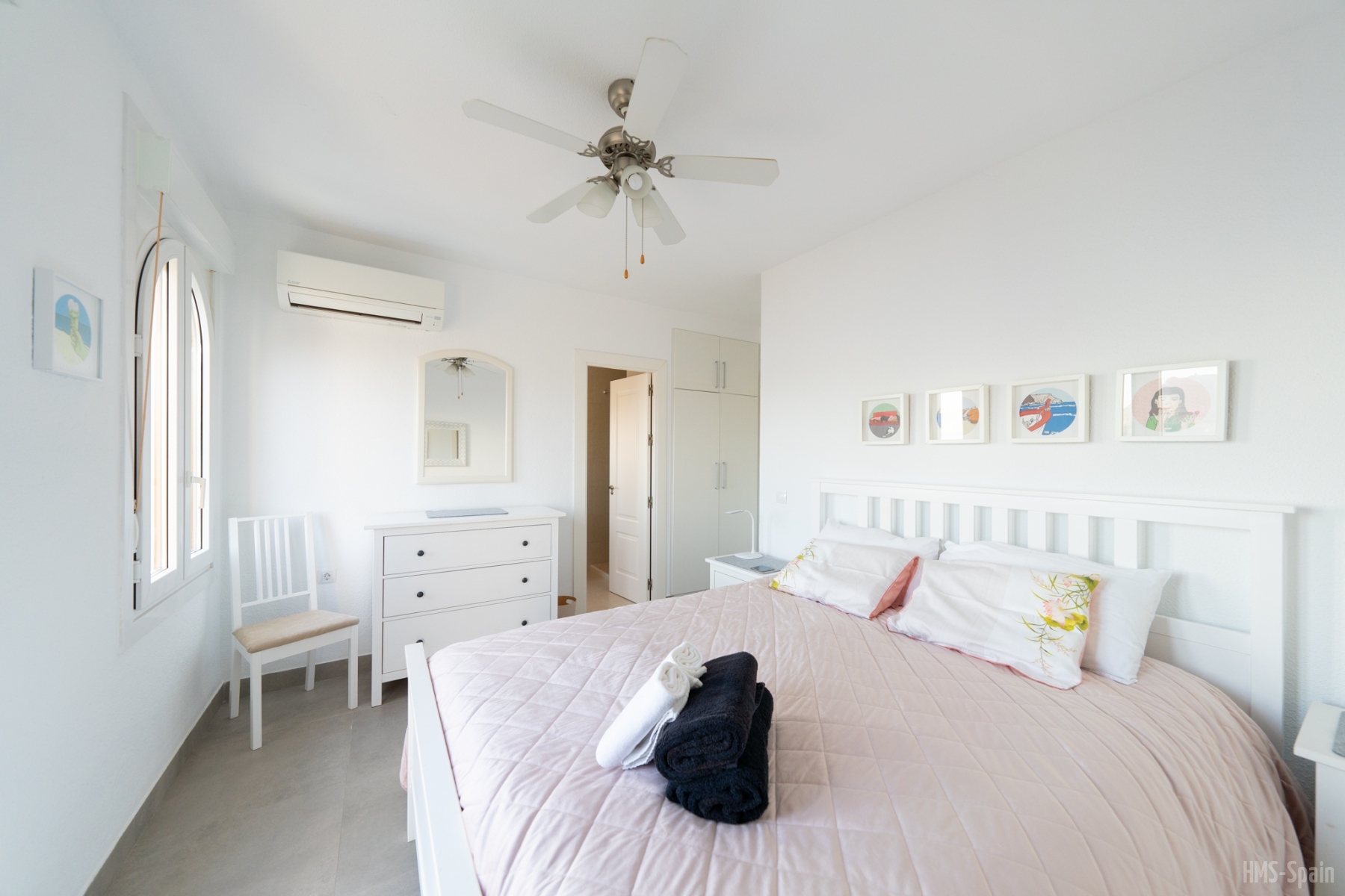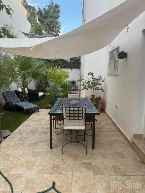 Dispone de dos dormitorios, uno en planta baja y el otro en la segunda planta con camas de 150cm y 160cm , 2 baños, salón-comedor y cocina totalmente equipada. Aire acondicionado en todas las estancias. Terraza amueblada para disfrutar de comidas al aire libre. Dispone de piscina comunitaria.Wiffi gratis. A menos de 5 minutos de la playa y del Paseo Marítimo.