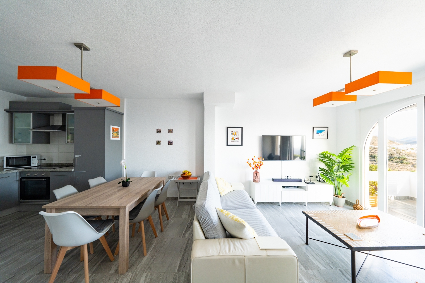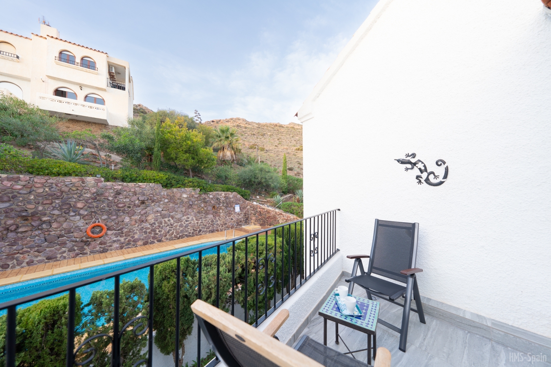 El apartamento se encuentra en una urbanización con piscina panorámica con vistas al mar y bajada directa. A 10 min del pueblo, a 2 minutos de la playa de la calilla y a 20 andando de la espectacular playa de los genovés.