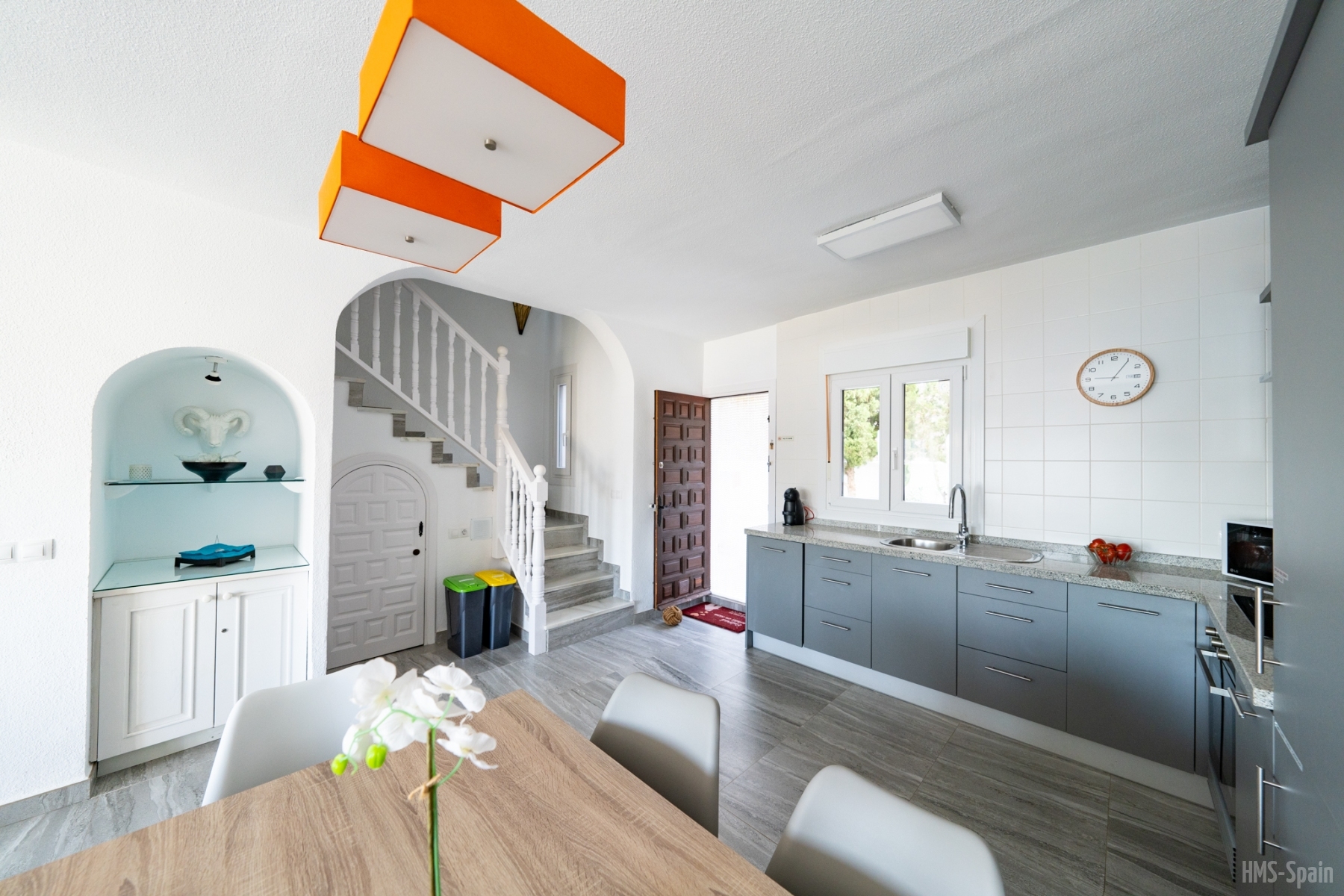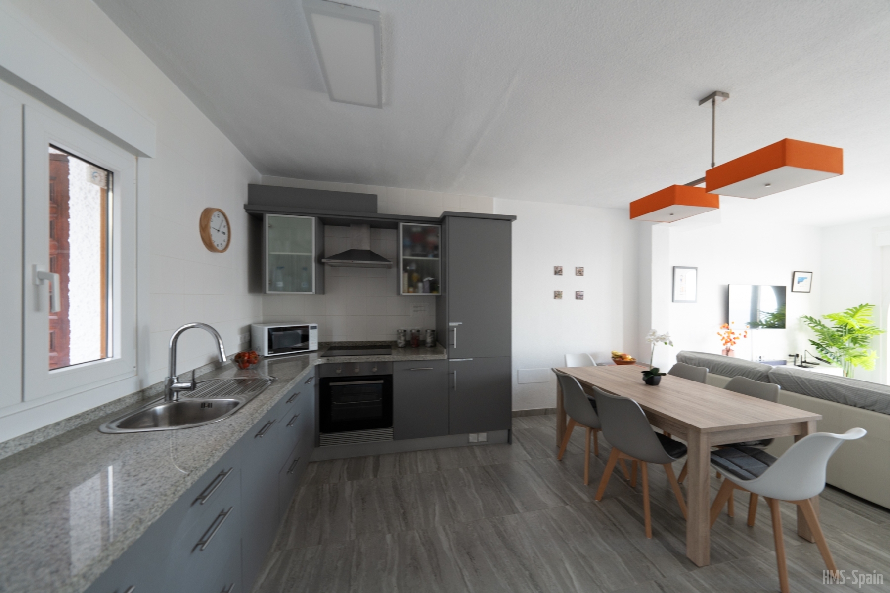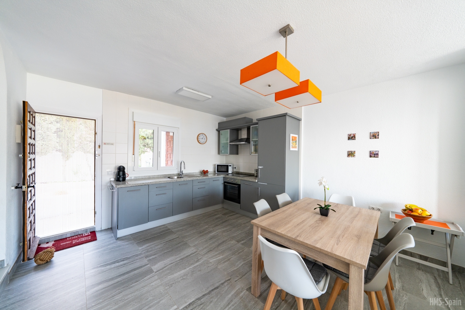 Dispone de cocina completamente equipada, perfecta para preparar tus comidas con total comodidad durante la estancia. Además, la casa cuenta con aire acondicionado en salón (planta baja) En los dormitorios ventiladores de techo, garantizando una temperatura agradable durante todo el año.