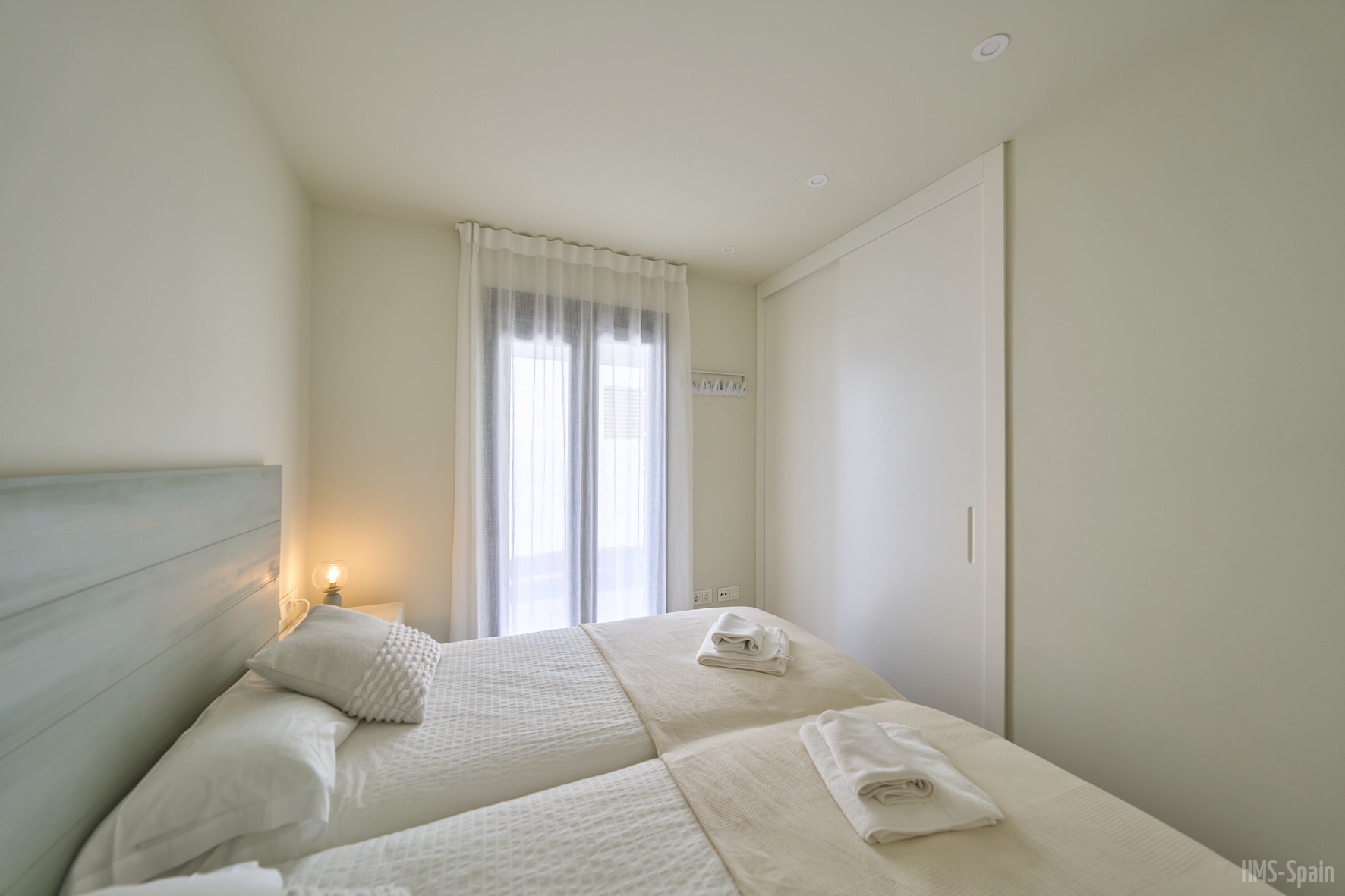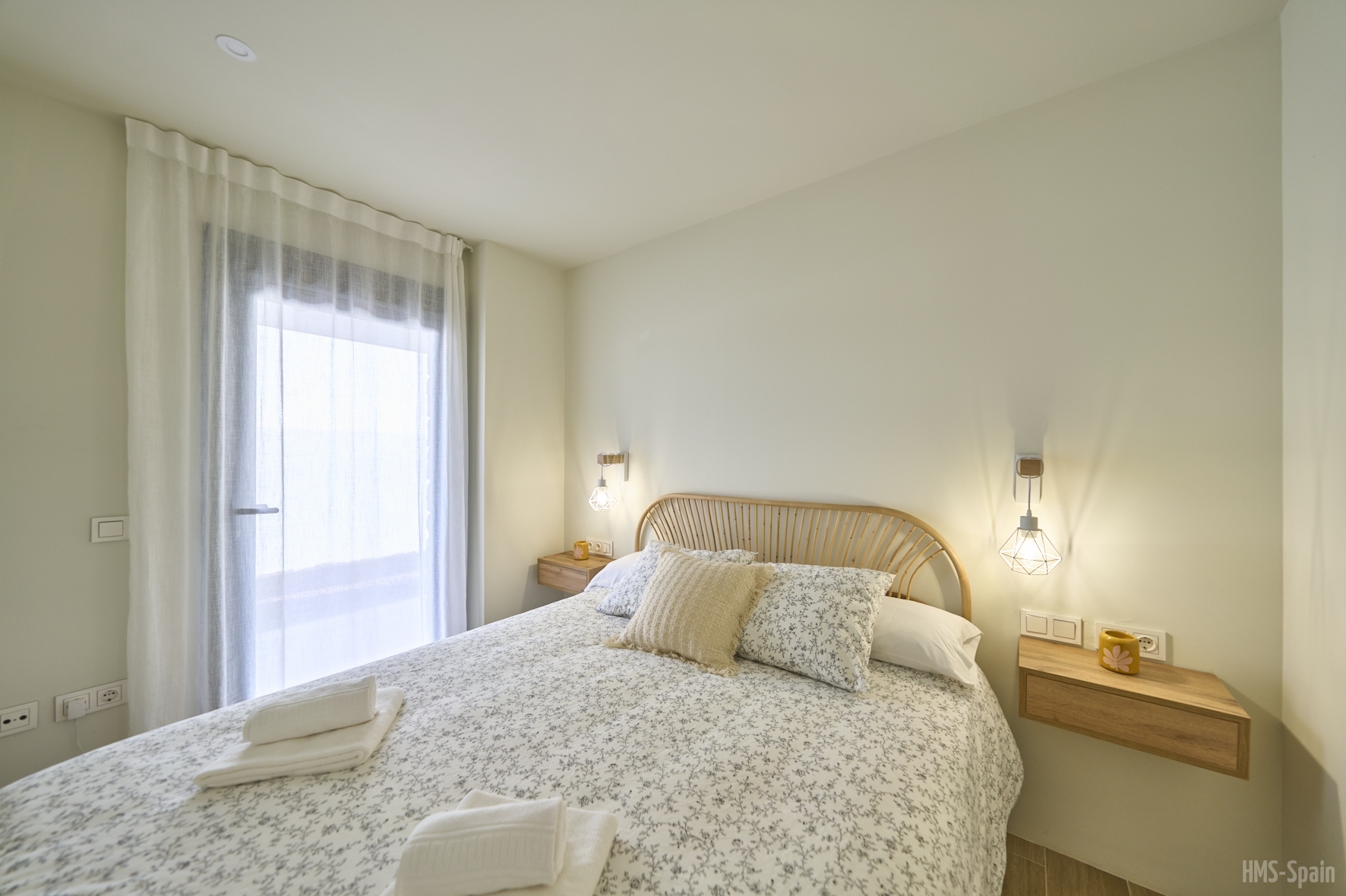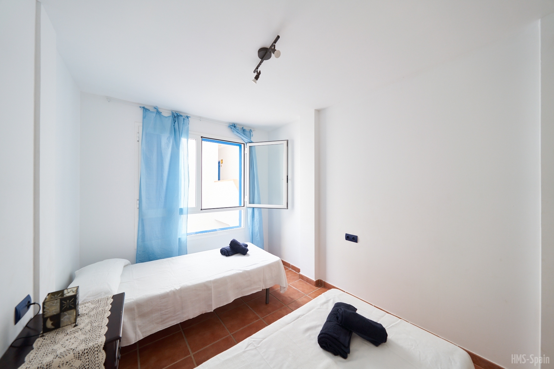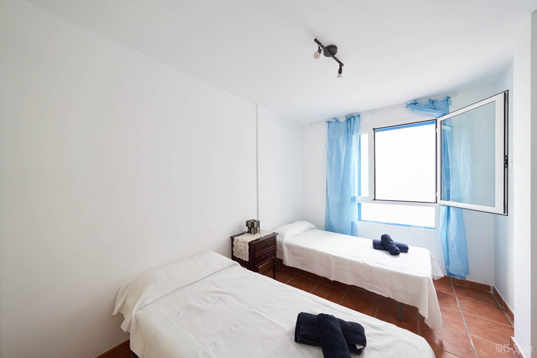 Dispone de cuatro dormitorios, dos de ellos con dos camas de 90 cm y dos dormitorio con una cama de 135 cm cada una, 2 baños, salón-comedor y cocina. Terraza amueblada para disfrutar de comidas al aire libre. Dispone de piscina comunitaria. A menos de 5 minutos de la playa y del Paseo MarÃtimo.