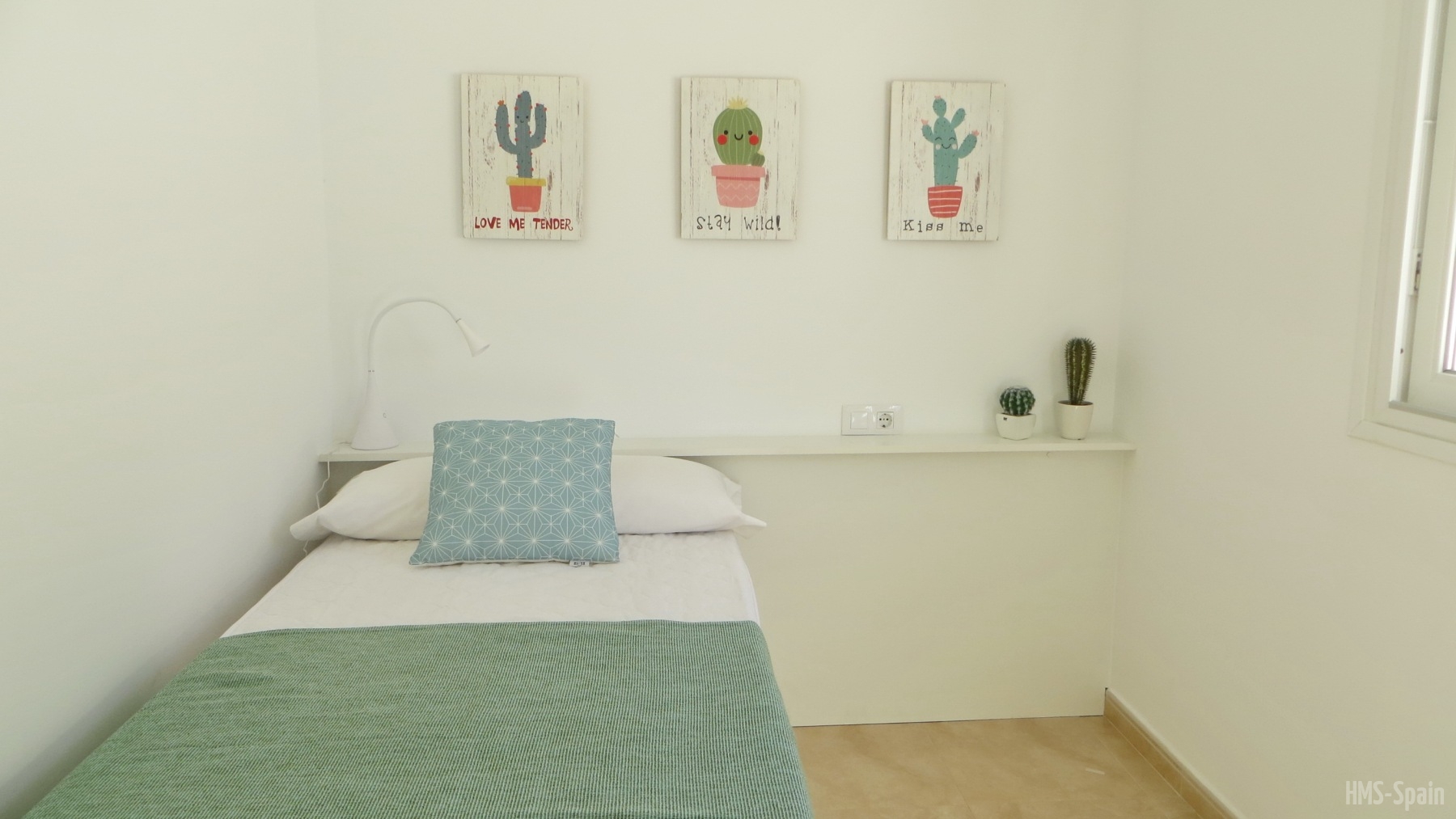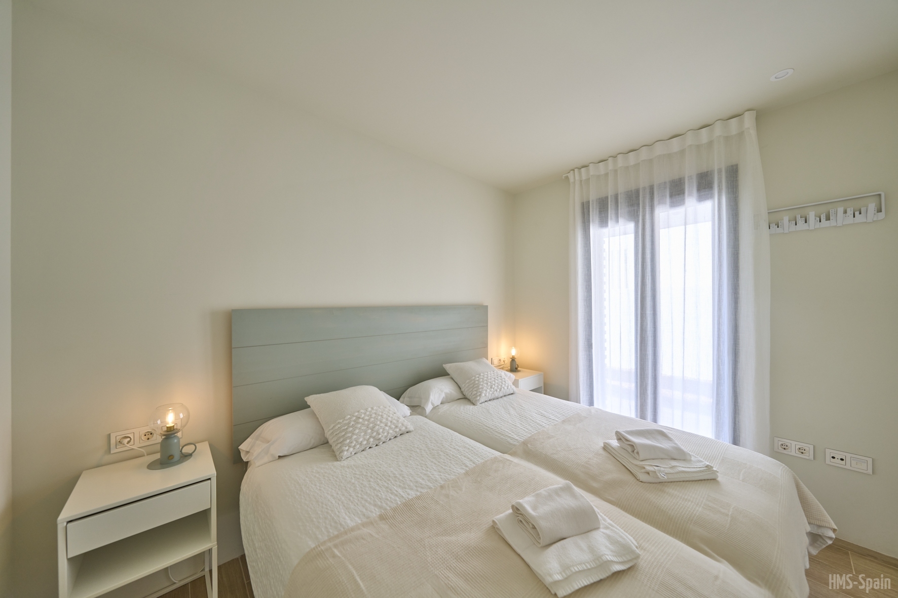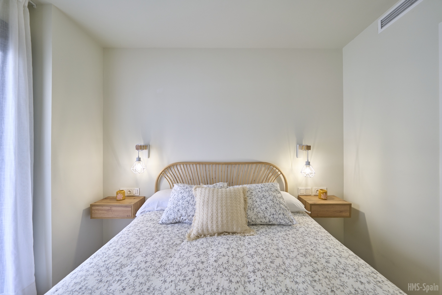 Dispone de cuatro dormitorios, dos de ellos con dos camas de 90 cm y dos dormitorio con una cama de 135 cm cada una, 2 baños, salón-comedor y cocina. Terraza amueblada para disfrutar de comidas al aire libre. Dispone de piscina comunitaria. A menos de 5 minutos de la playa y del Paseo MarÃtimo.