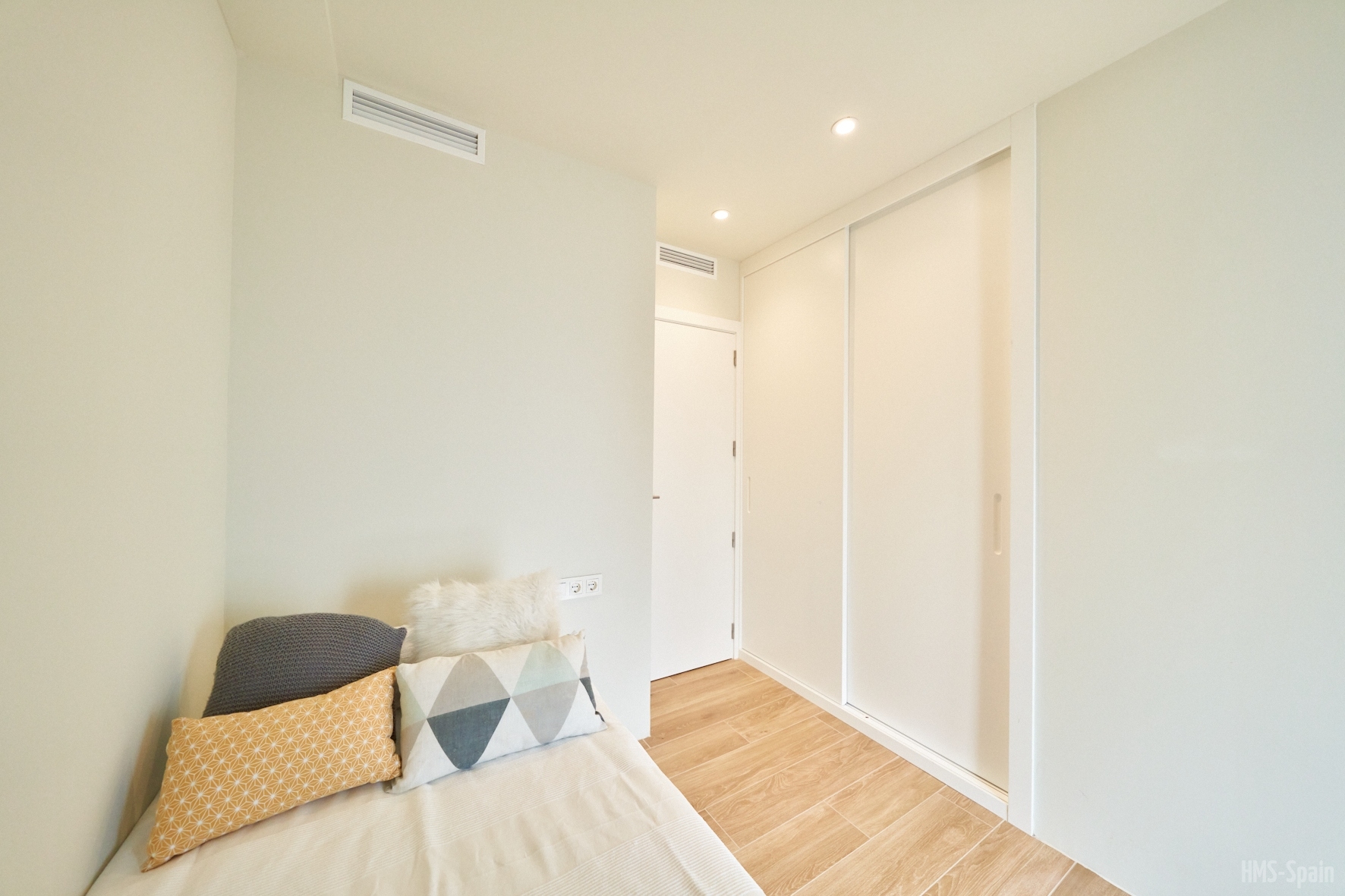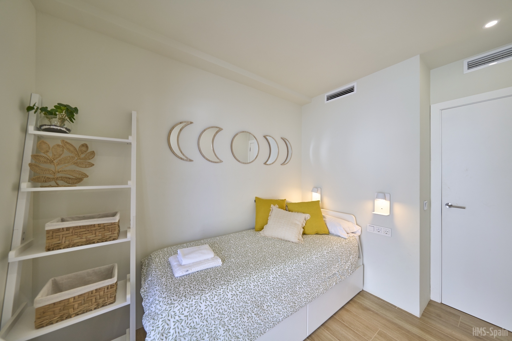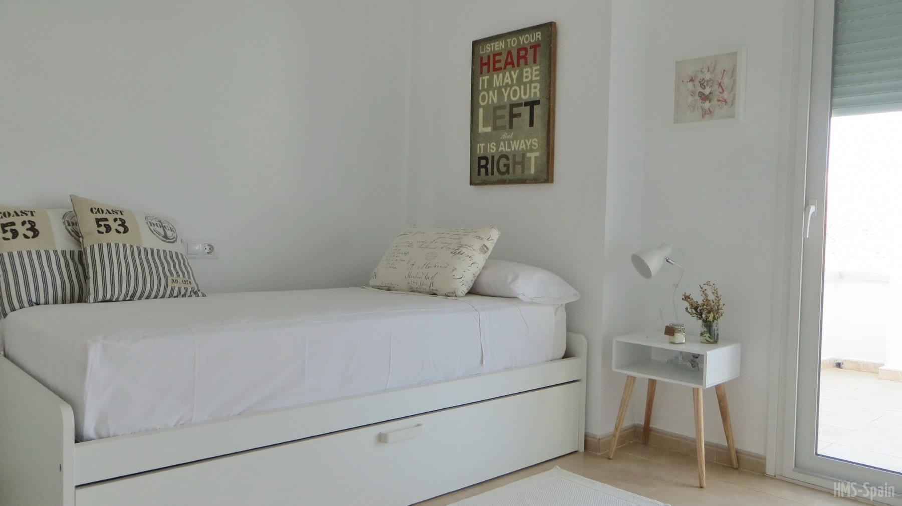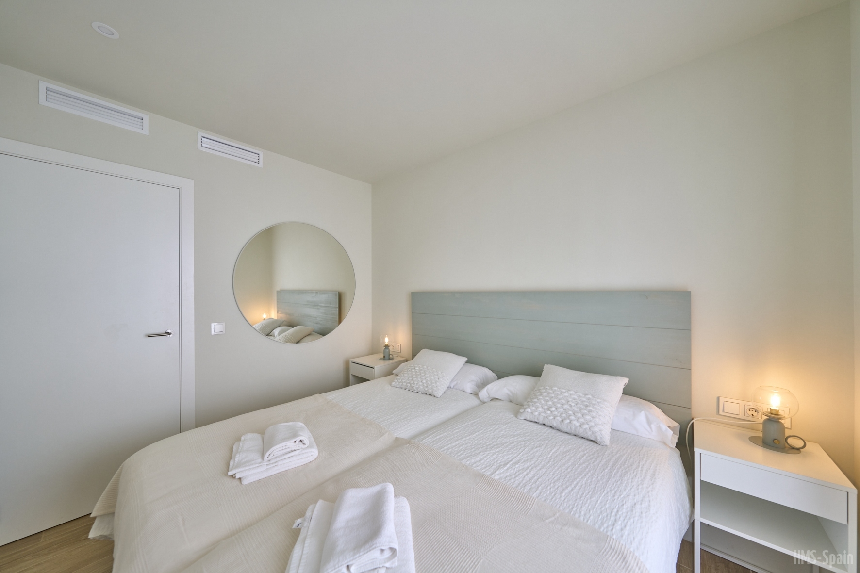 Dispone de cuatro dormitorios, dos de ellos con dos camas de 90 cm y dos dormitorio con una cama de 135 cm cada una, 2 baños, salón-comedor y cocina. Terraza amueblada para disfrutar de comidas al aire libre. Dispone de piscina comunitaria. A menos de 5 minutos de la playa y del Paseo MarÃtimo.