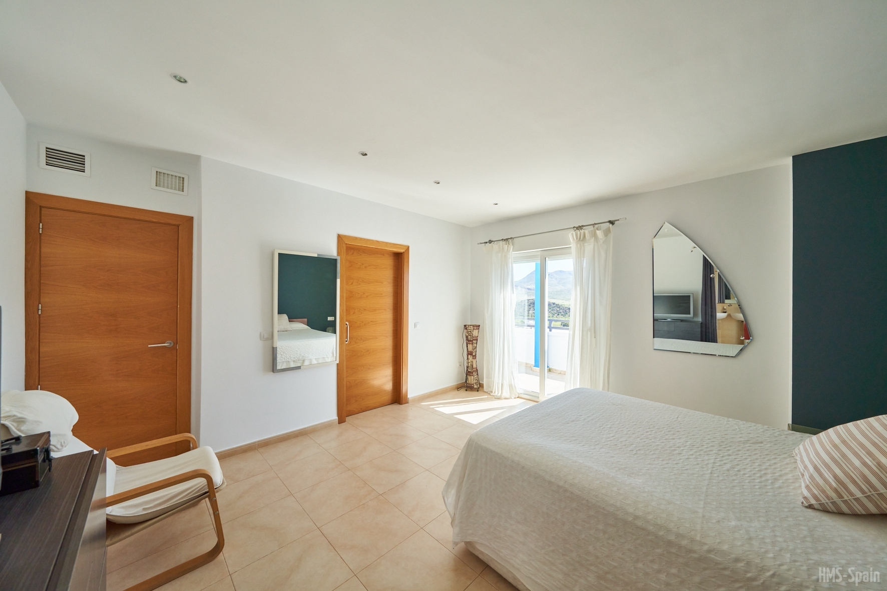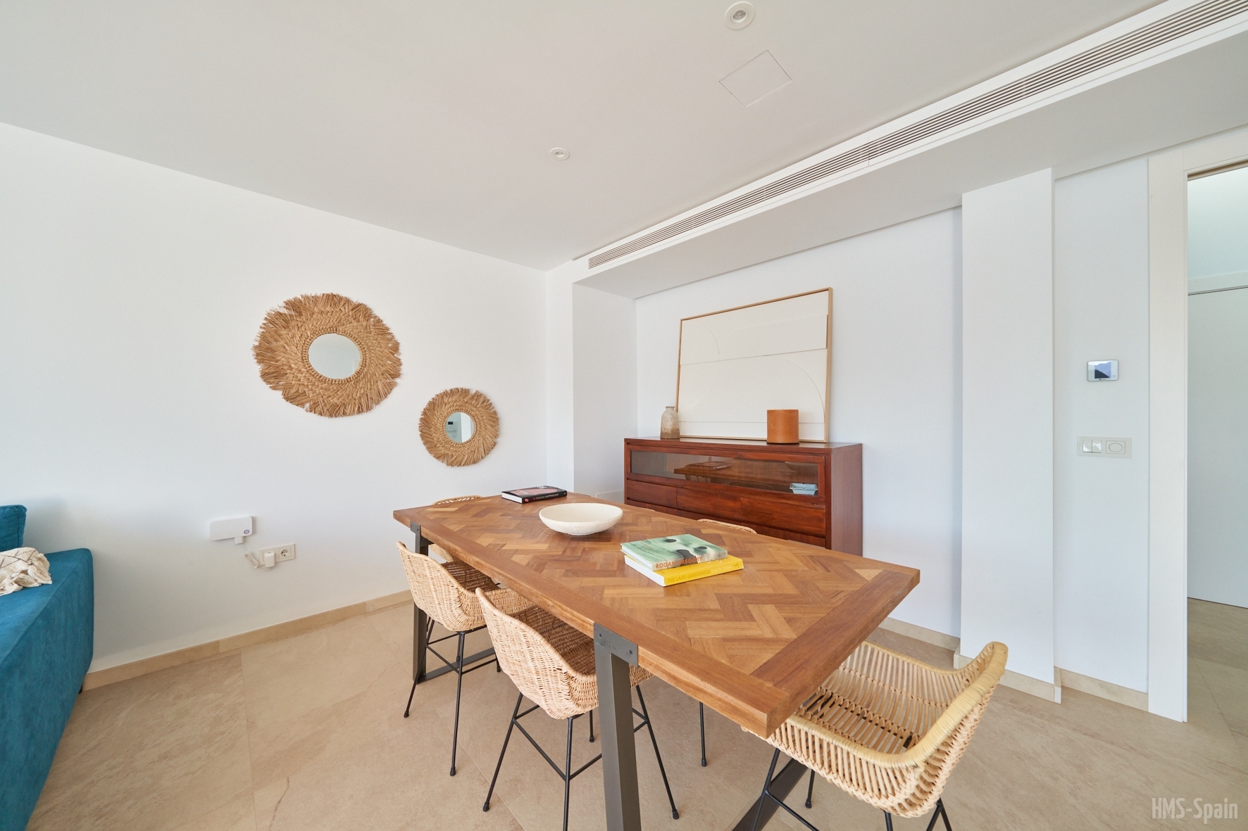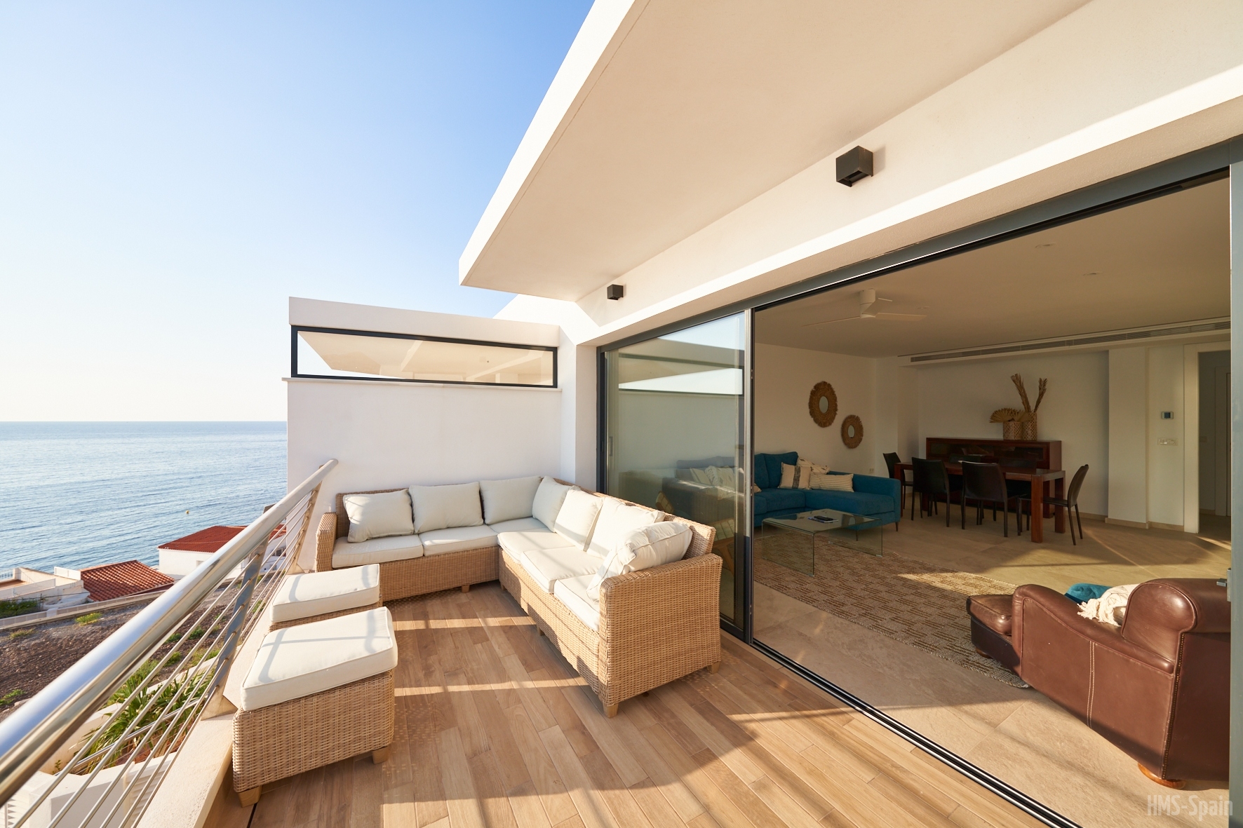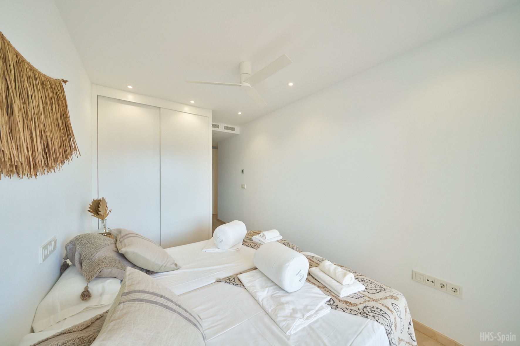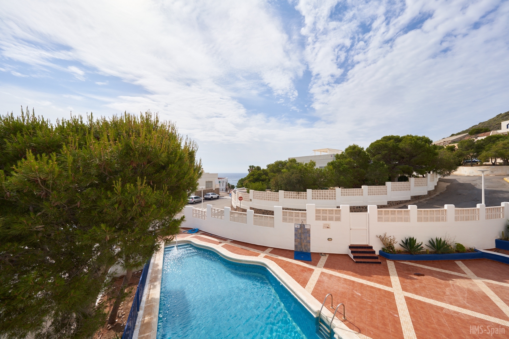 Magnifica vivienda con inmejorables vistas a toda la bahÃa de San José. Dispone de tres dormitorios con baños en Suite, un aseo en la planta principal, cocina totalmente equipada, terraza con muebles de exterior, garaje con capacidad para 3 coches y piscina comunitaria. Ideal para pasar unas fantásticas vacaciones en familia.