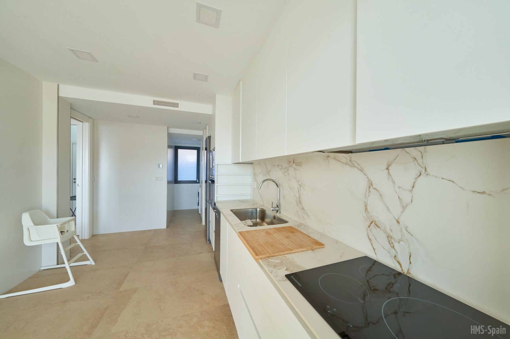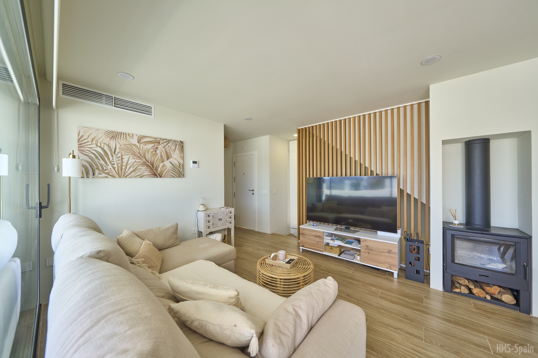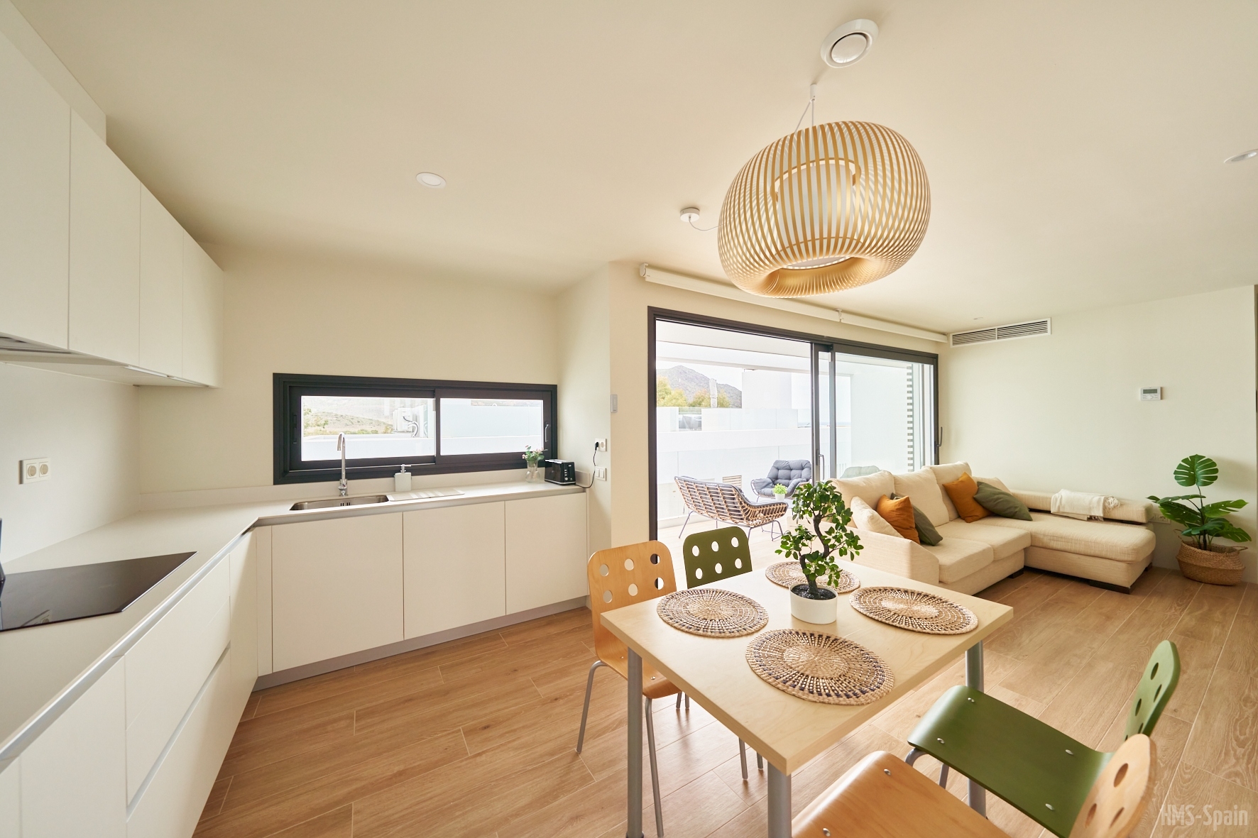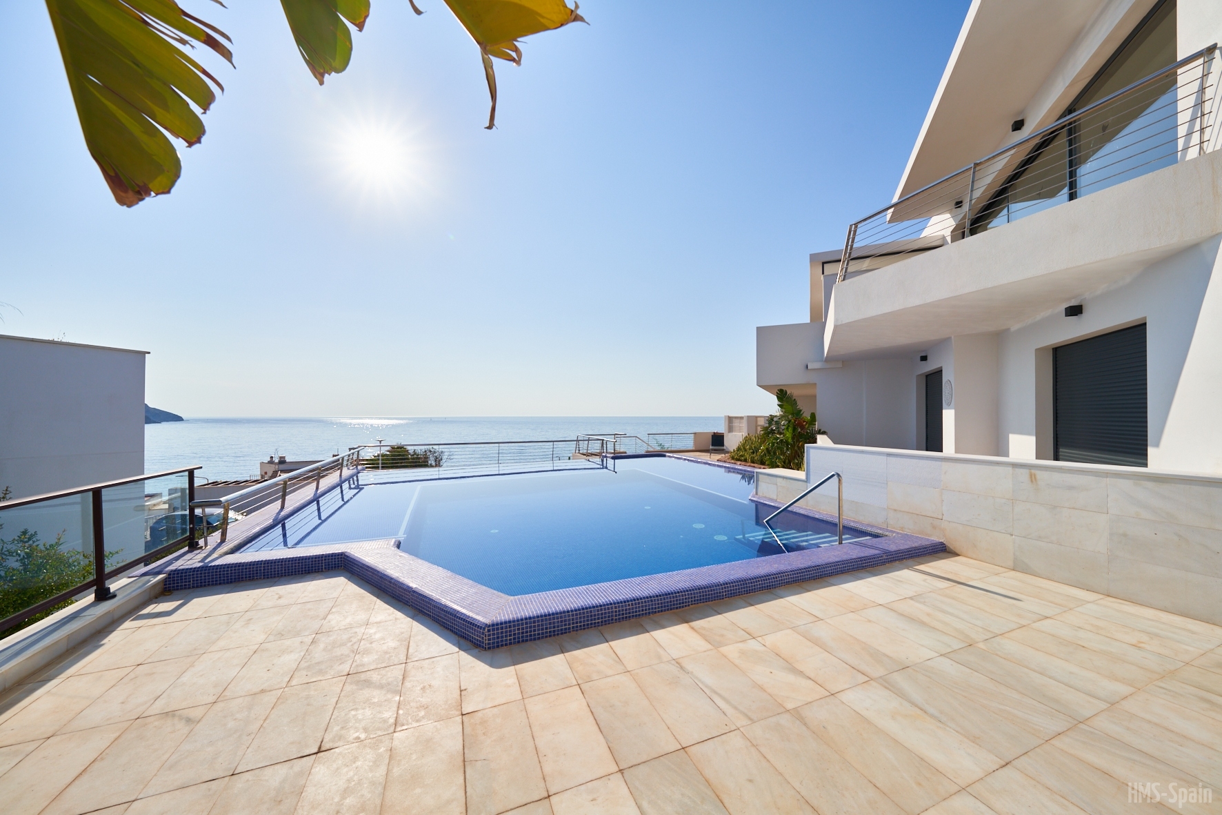 Magnifica vivienda con inmejorables vistas a toda la bahÃa de San José. Dispone de tres dormitorios con baños en Suite, un aseo en la planta principal, cocina totalmente equipada, terraza con muebles de exterior, garaje con capacidad para 3 coches y piscina comunitaria. Ideal para pasar unas fantásticas vacaciones en familia.