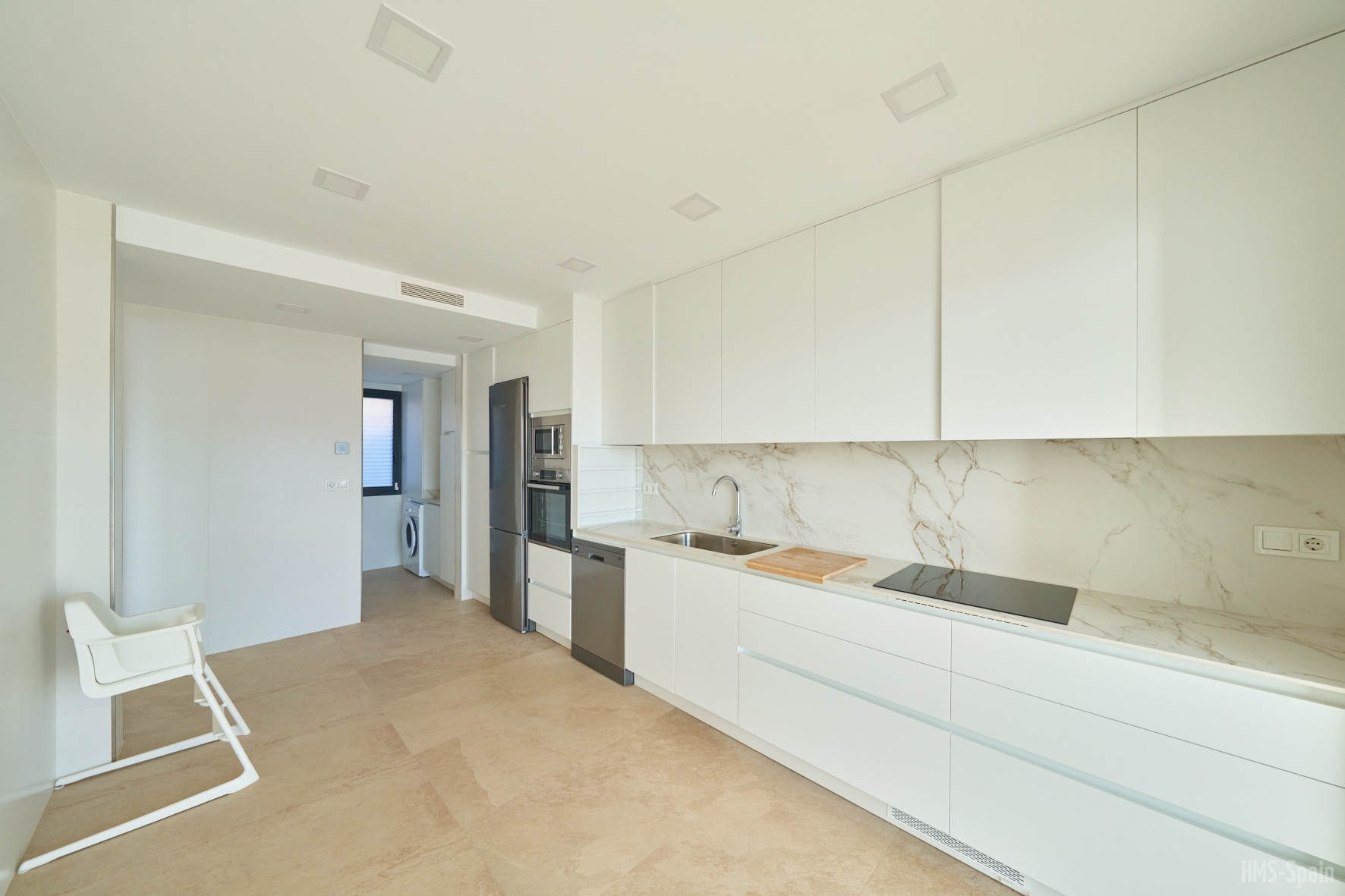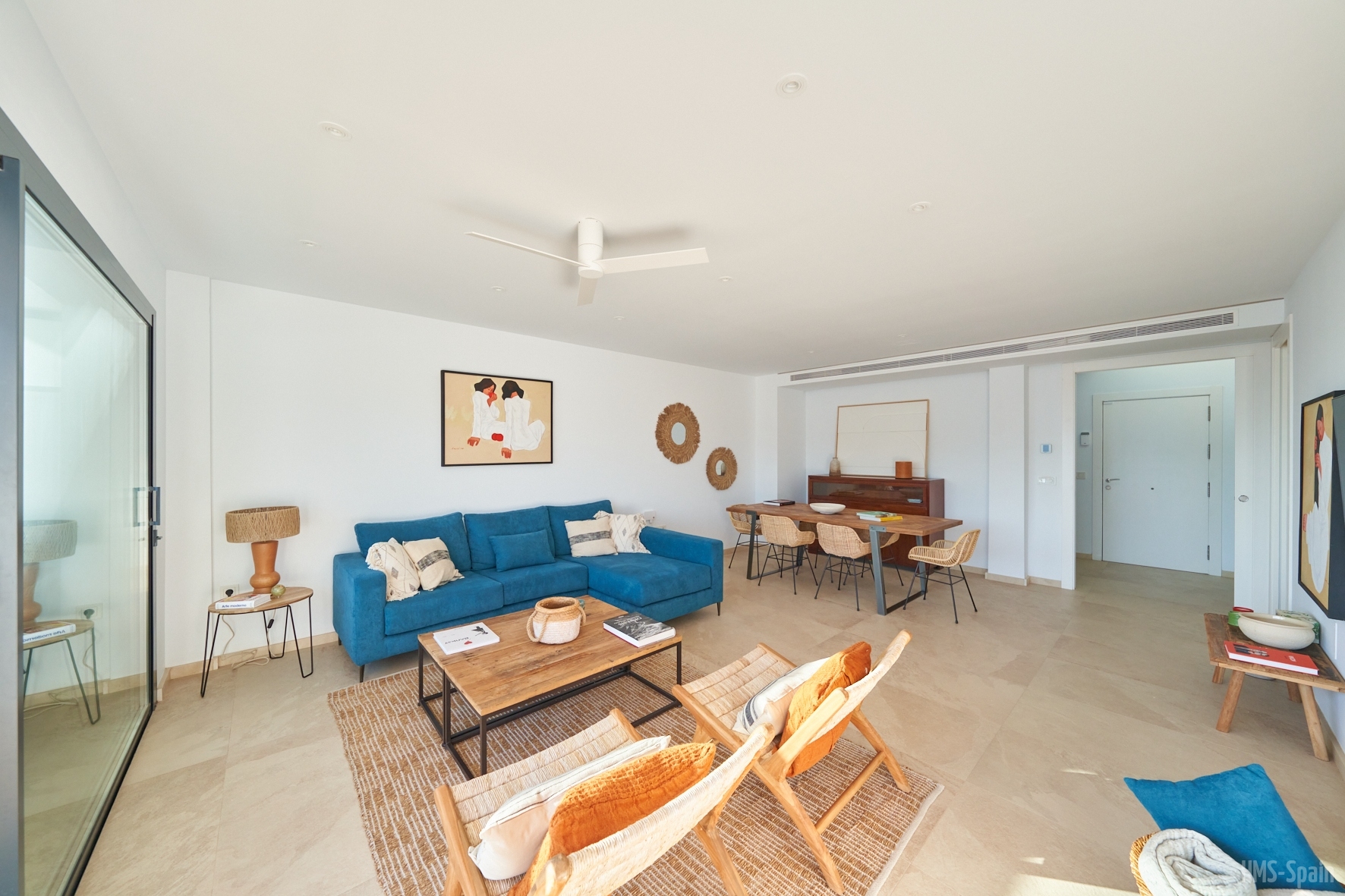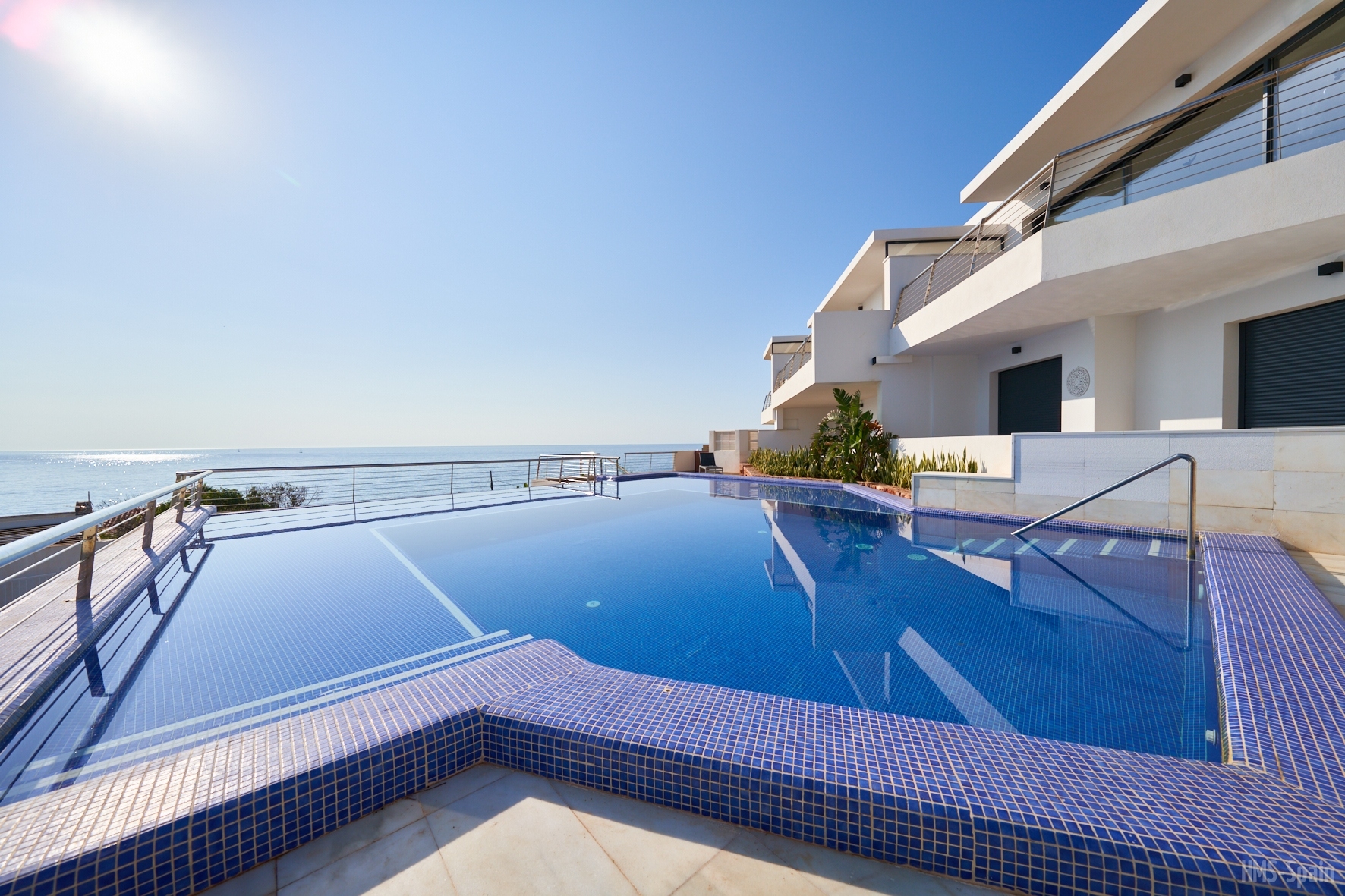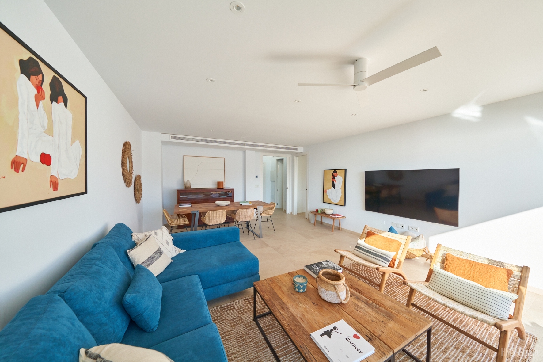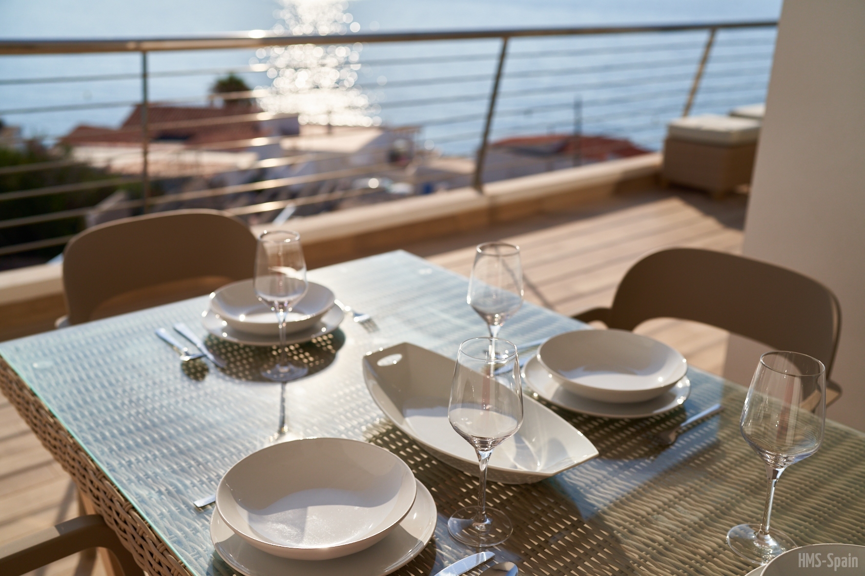 Magnifica vivienda con inmejorables vistas a toda la bahÃa de San José. Dispone de tres dormitorios con baños en Suite, un aseo en la planta principal, cocina totalmente equipada, terraza con muebles de exterior, garaje con capacidad para 3 coches y piscina comunitaria. Ideal para pasar unas fantásticas vacaciones en familia.