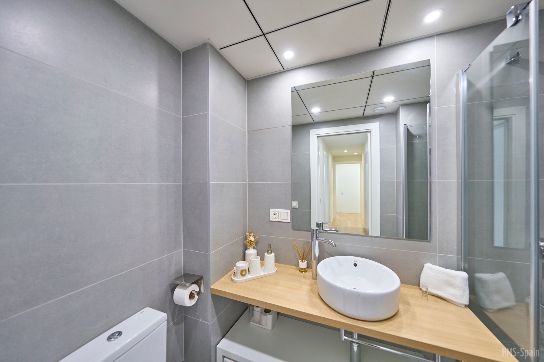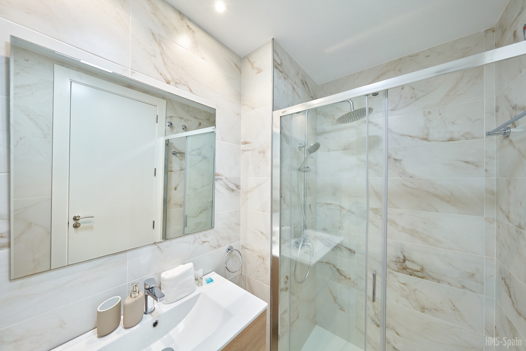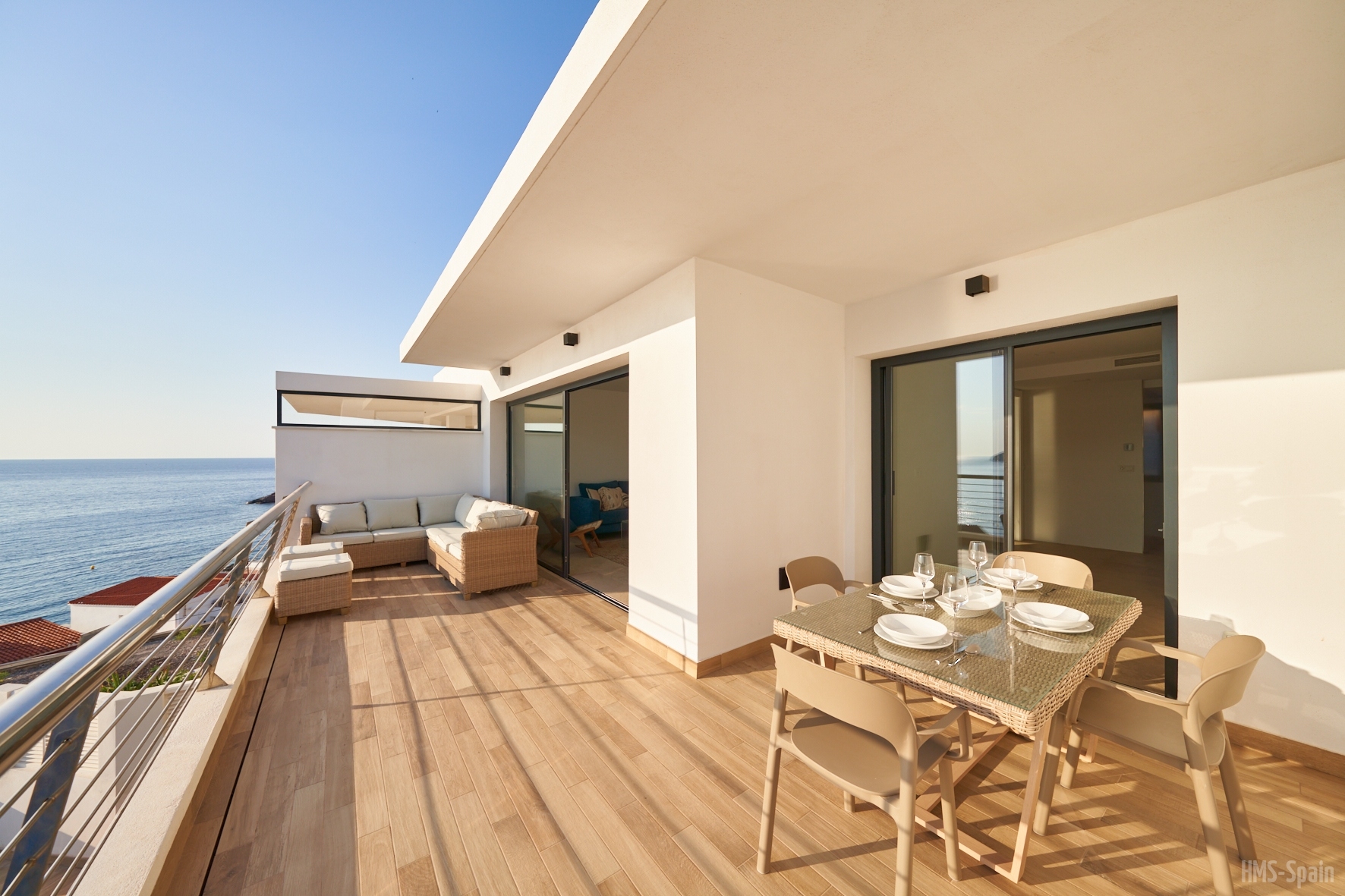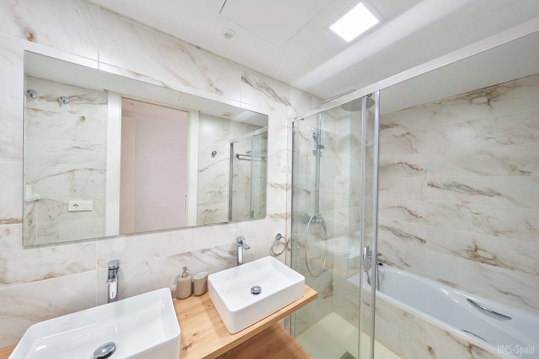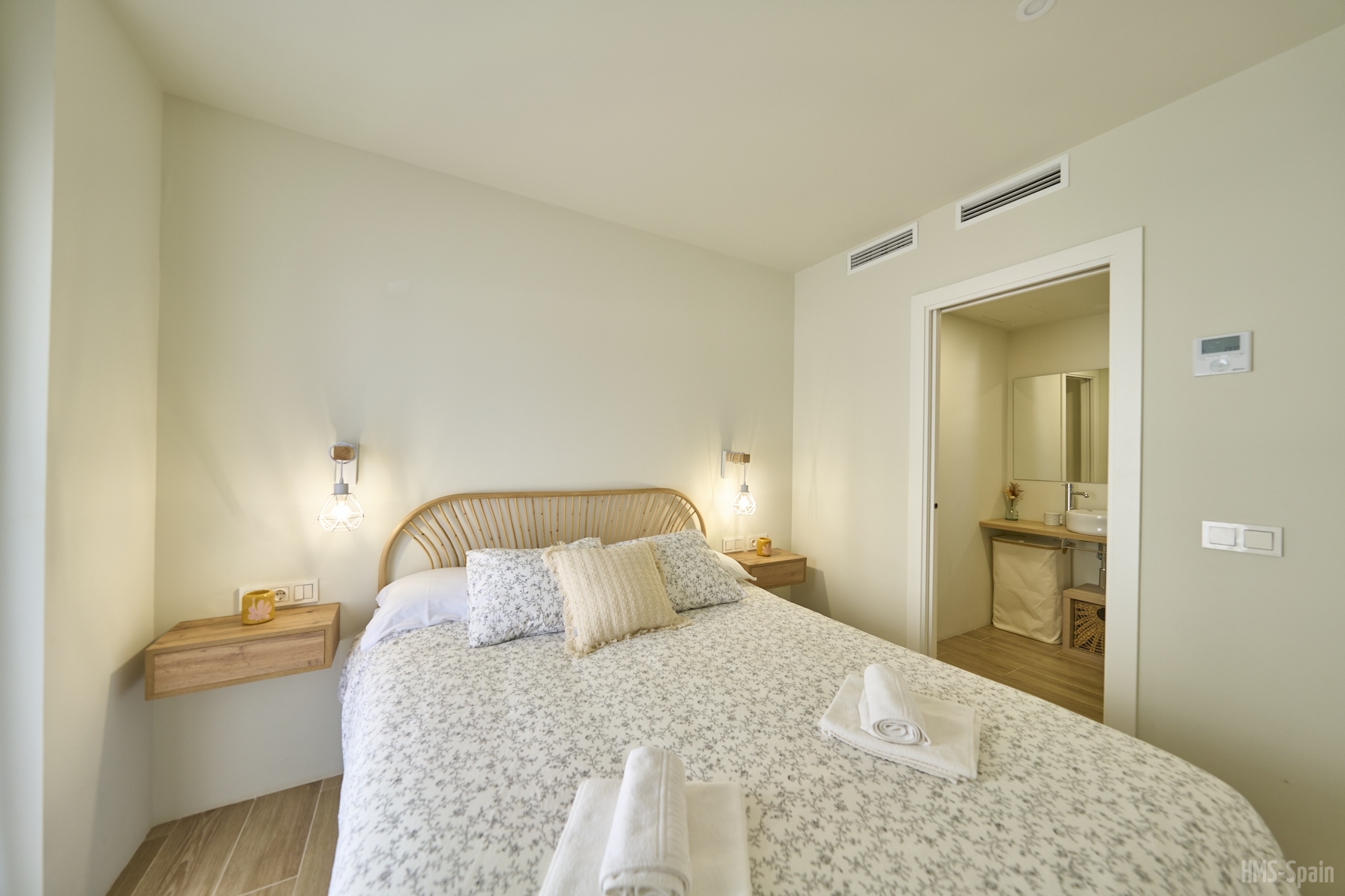3 dormitorios, 3 baños, terraza amueblada y plaza de aparcamiento. Máximo 8 personas.