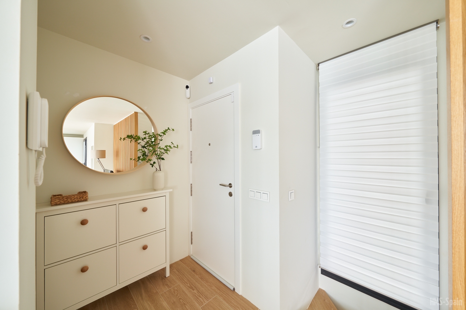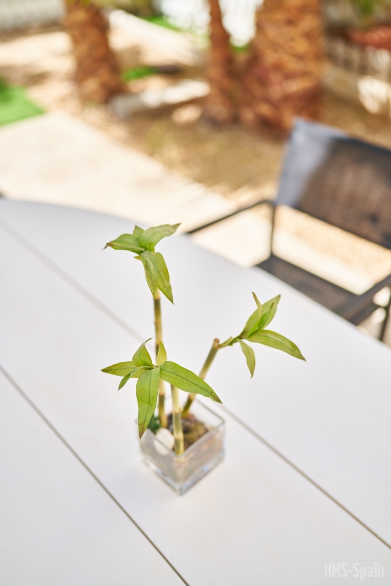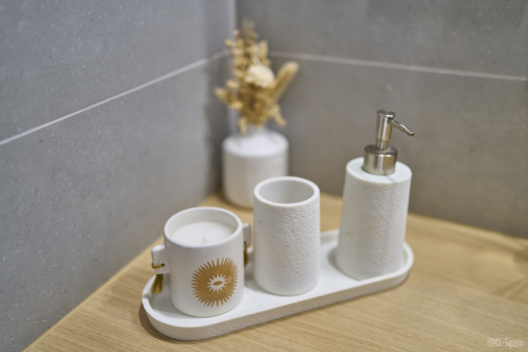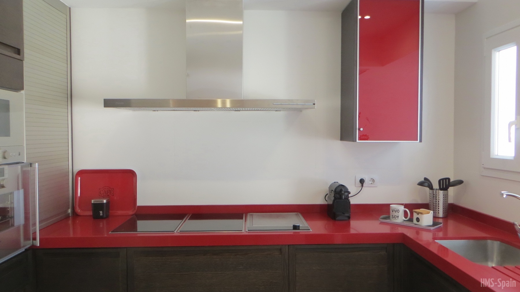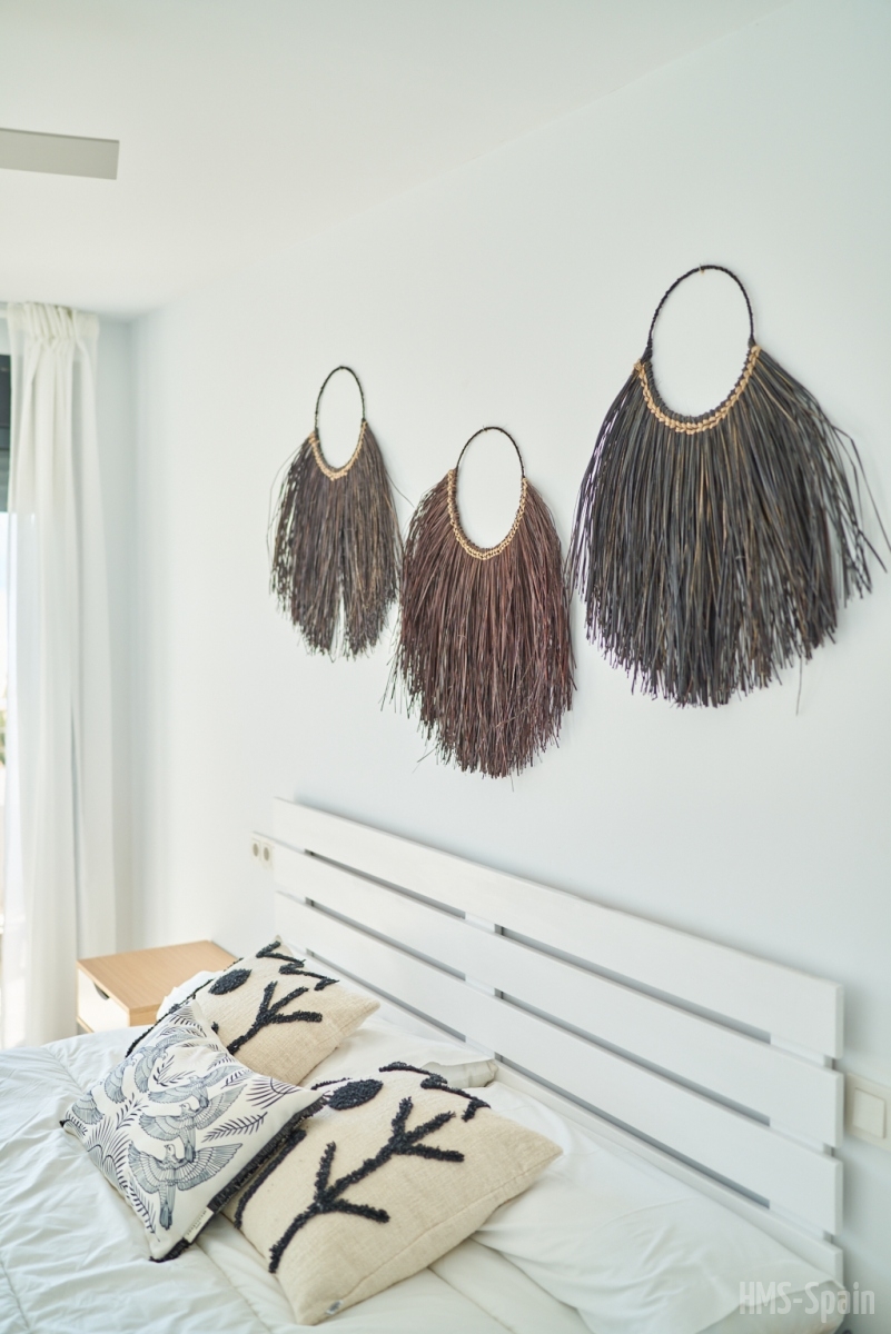 Distribución de la casa: en la planta primera esta la cocina salón comedor con terraza y aseo. En la planta baja están los tres dormitorios (suite con cama de matrimonio y baño completo privado, segunda habitación con cama de matrimonio o dos camas individuales, y tercera habitación con una litera, cuenta con un baño completo, las habitaciones dan a una terraza amplia con un mini jardÃn. En la planta cubierta hay un solárium con barbacoa.
