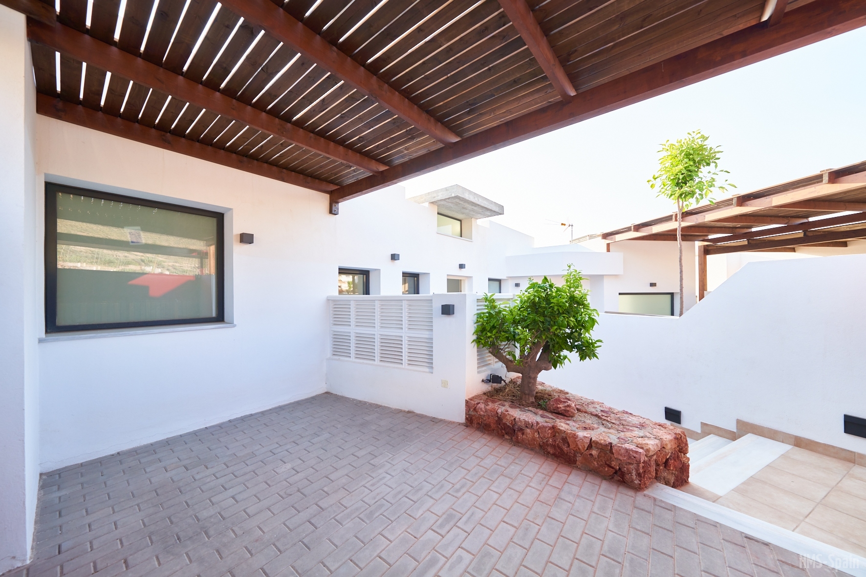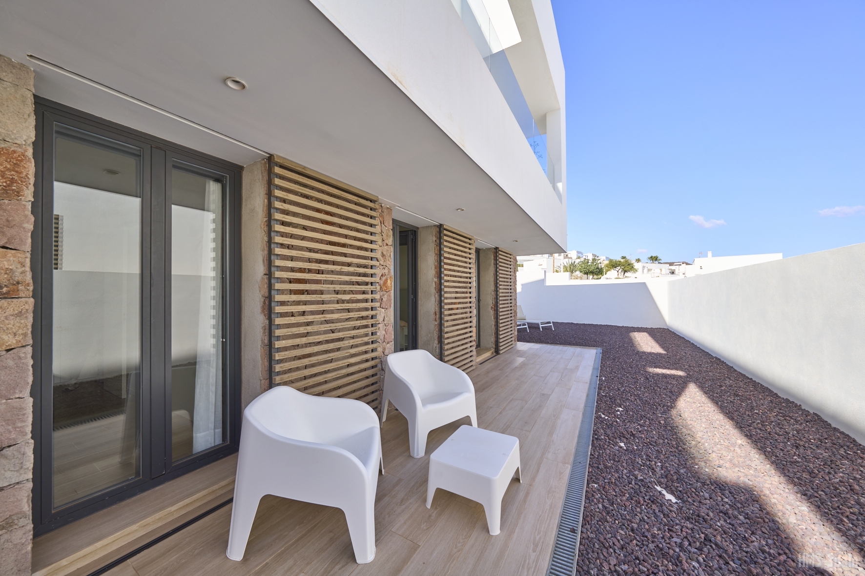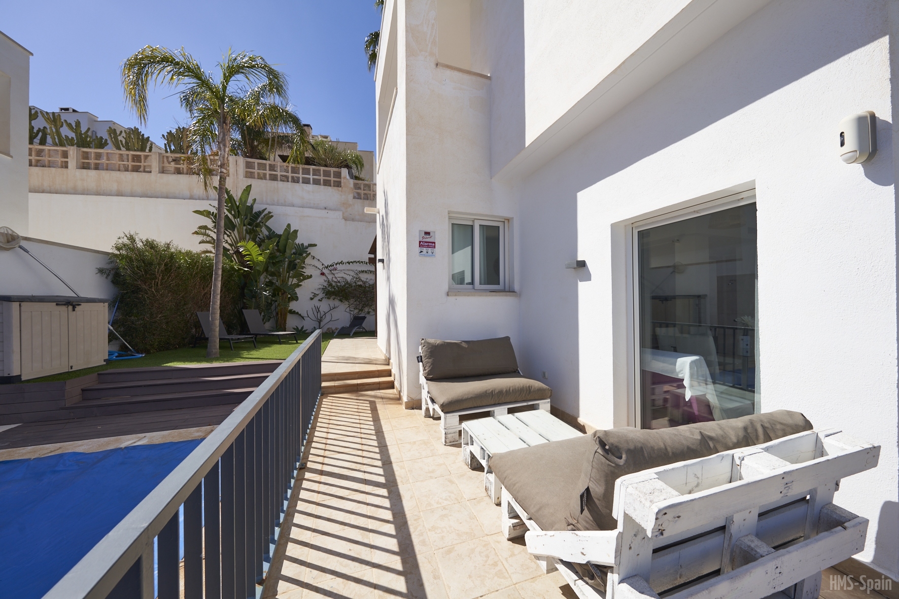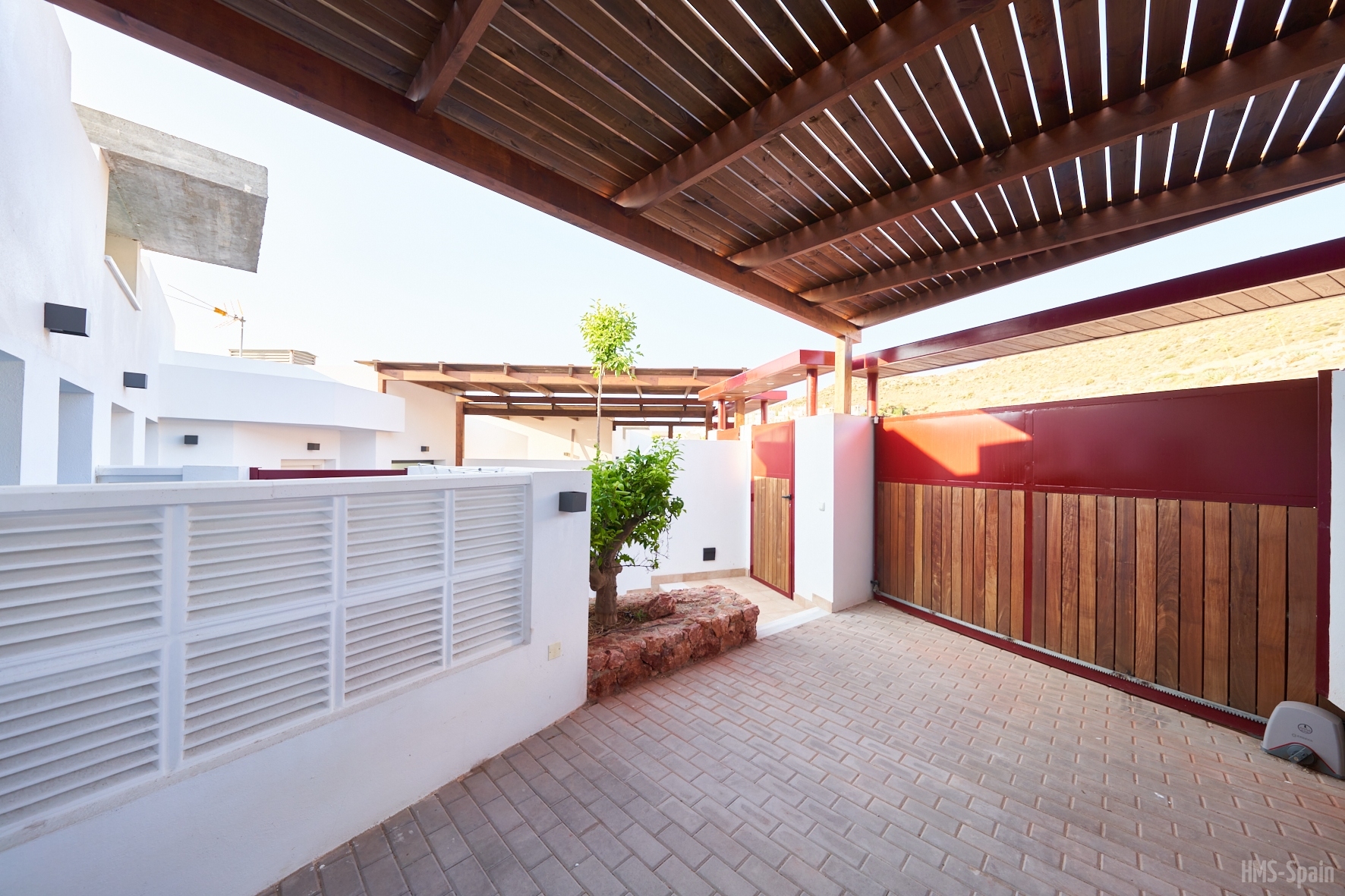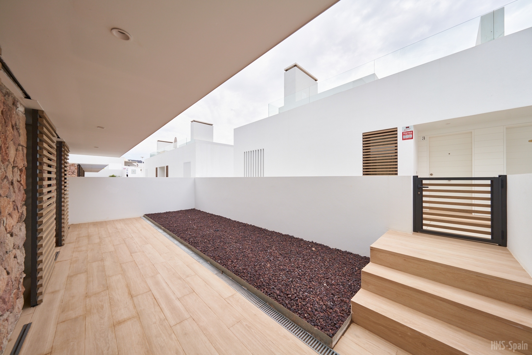 Magnifica casa muy bien equipada de obra nueva ubicada en una zona tranquila de San José ideal para pasar unas vacaciones en familia con todas las comodidades necesarias. Dispone de 3 dormitorios, 2 baños y un aseo, dos plazas de garaje, jardÃn, terrazas amuebladas y solárium con barbacoa, muebles de exterior y tumbonas. Urbanización con piscina y zonas comunitarias.