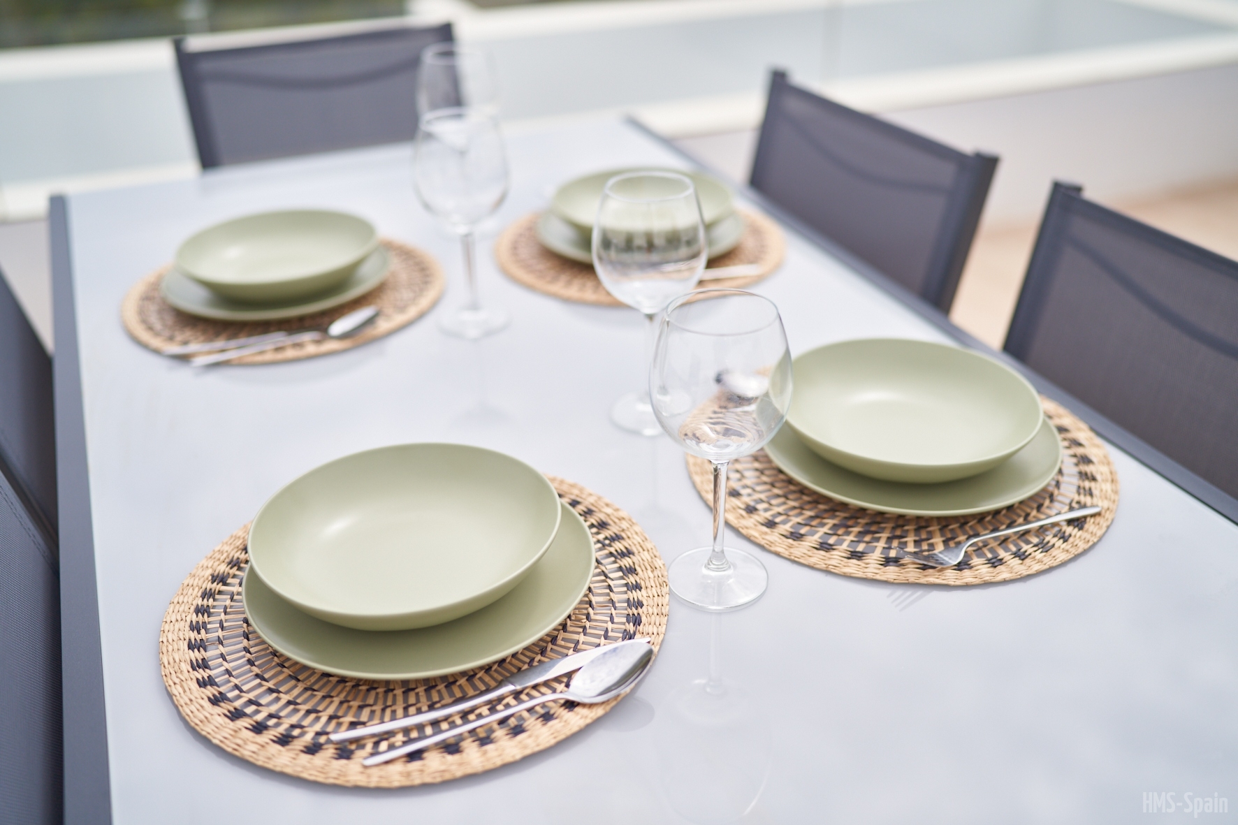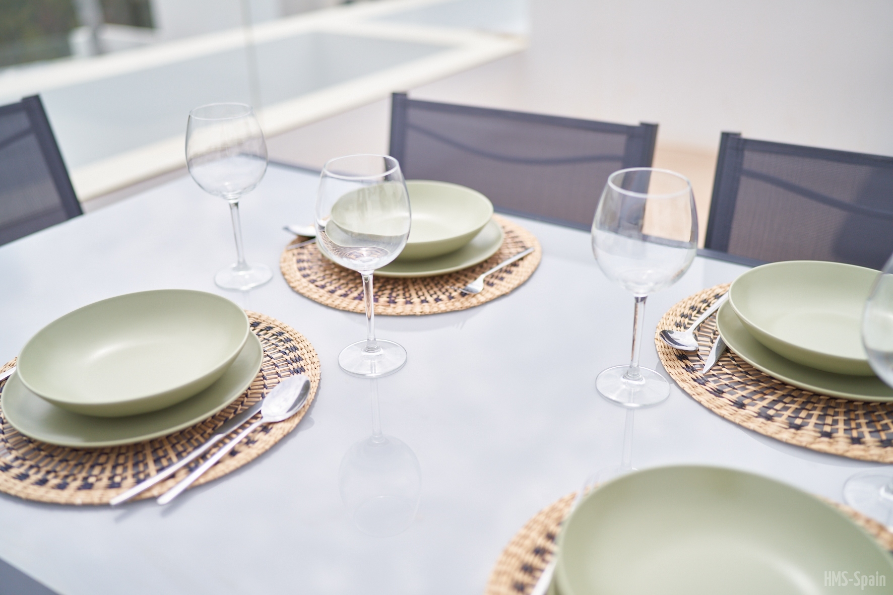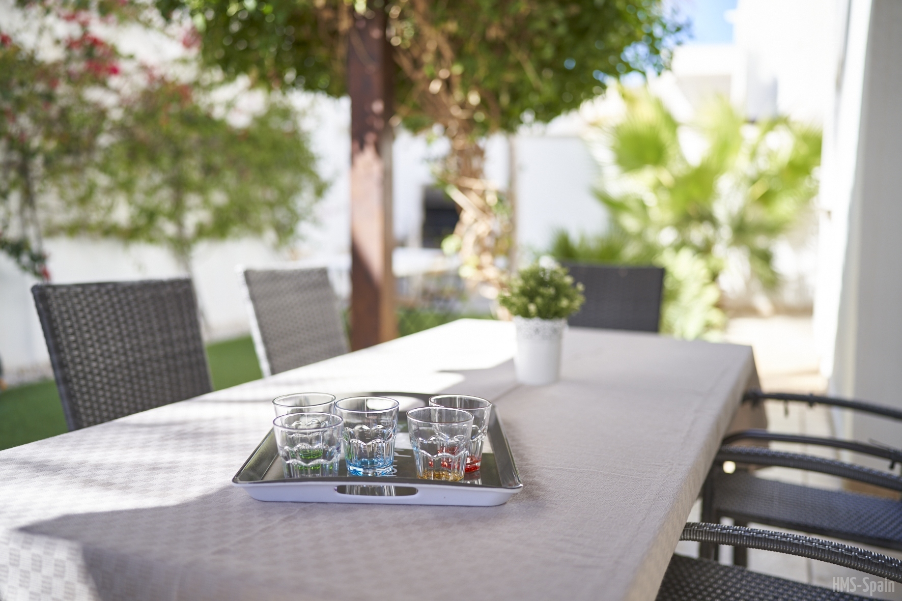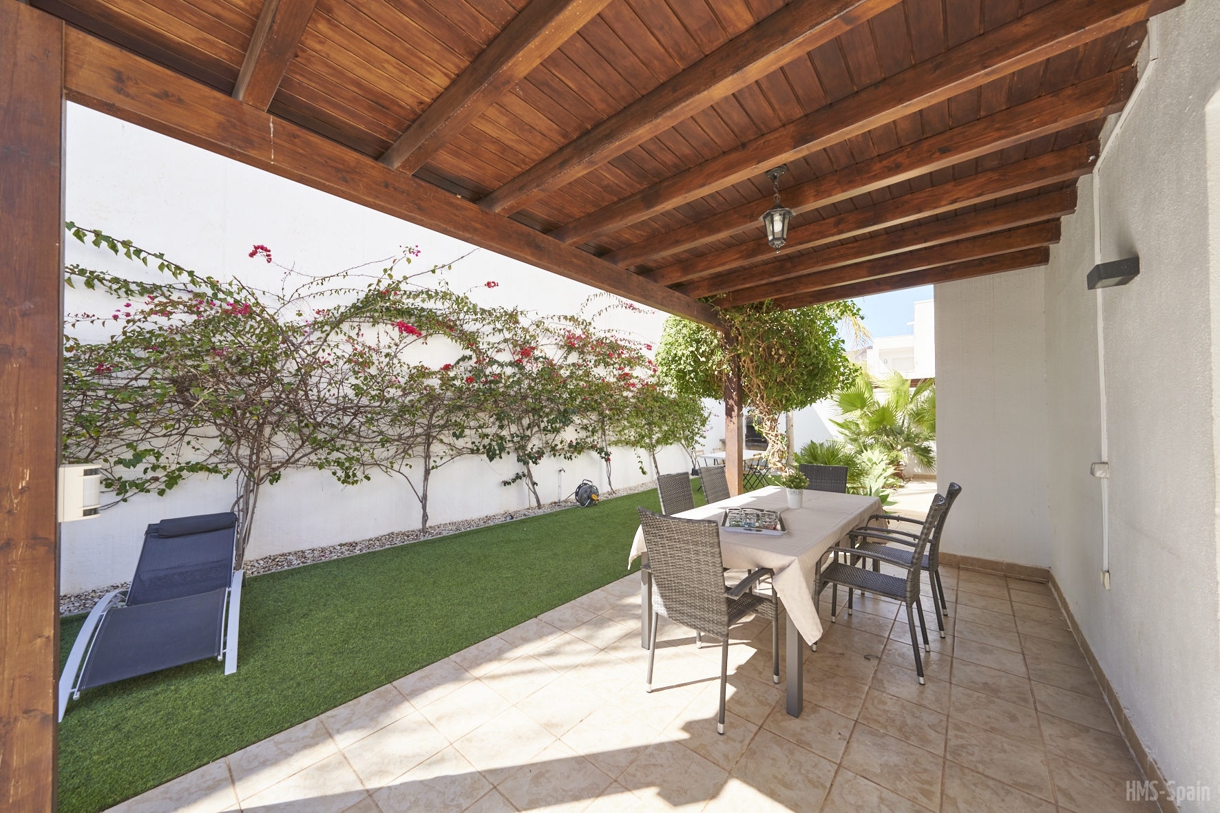 Magnifica casa muy bien equipada de obra nueva ubicada en una zona tranquila de San José ideal para pasar unas vacaciones en familia con todas las comodidades necesarias. Dispone de 3 dormitorios, 2 baños y un aseo, dos plazas de garaje, jardÃn, terrazas amuebladas y solárium con barbacoa, muebles de exterior y tumbonas. Urbanización con piscina y zonas comunitarias.