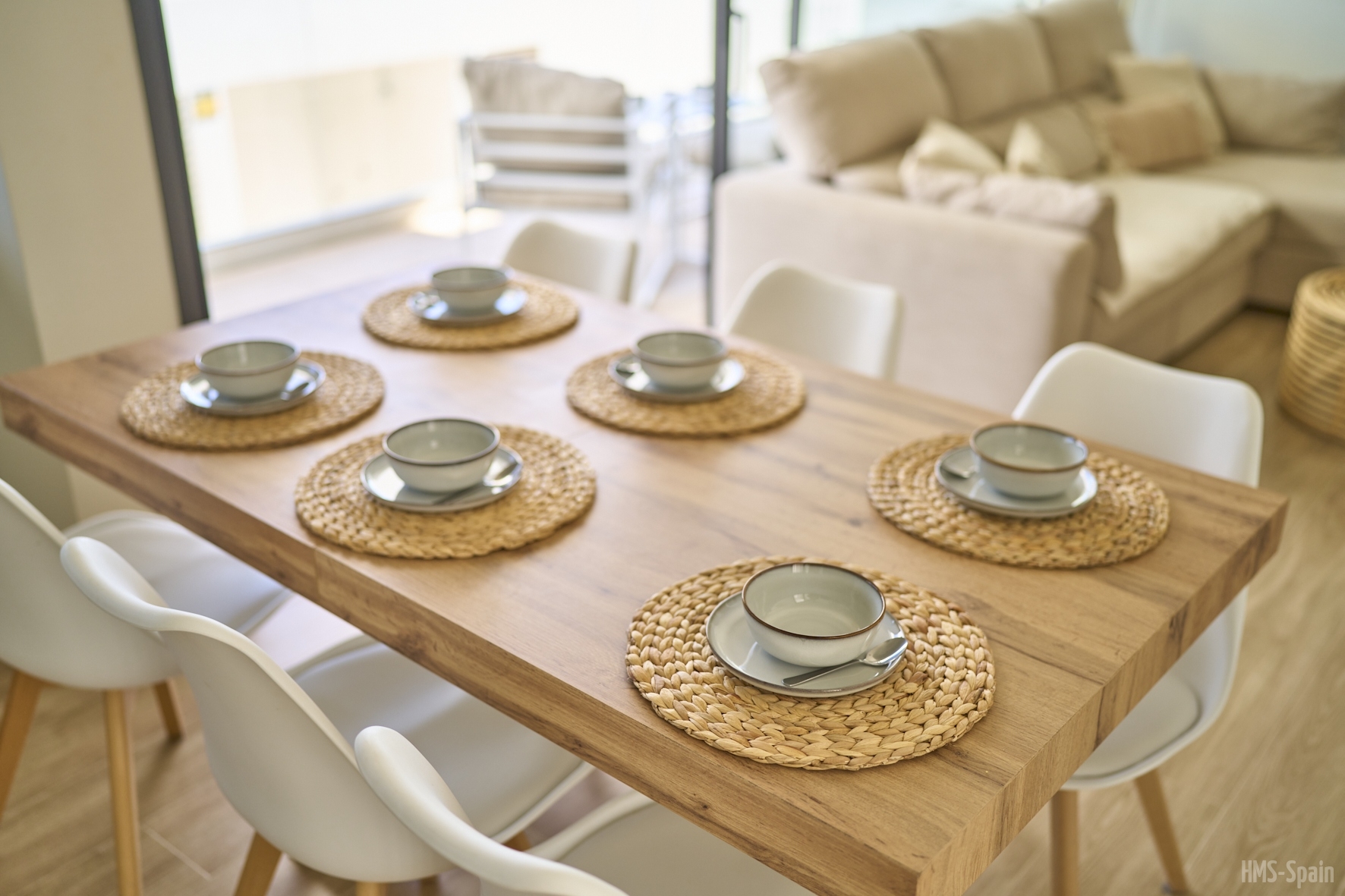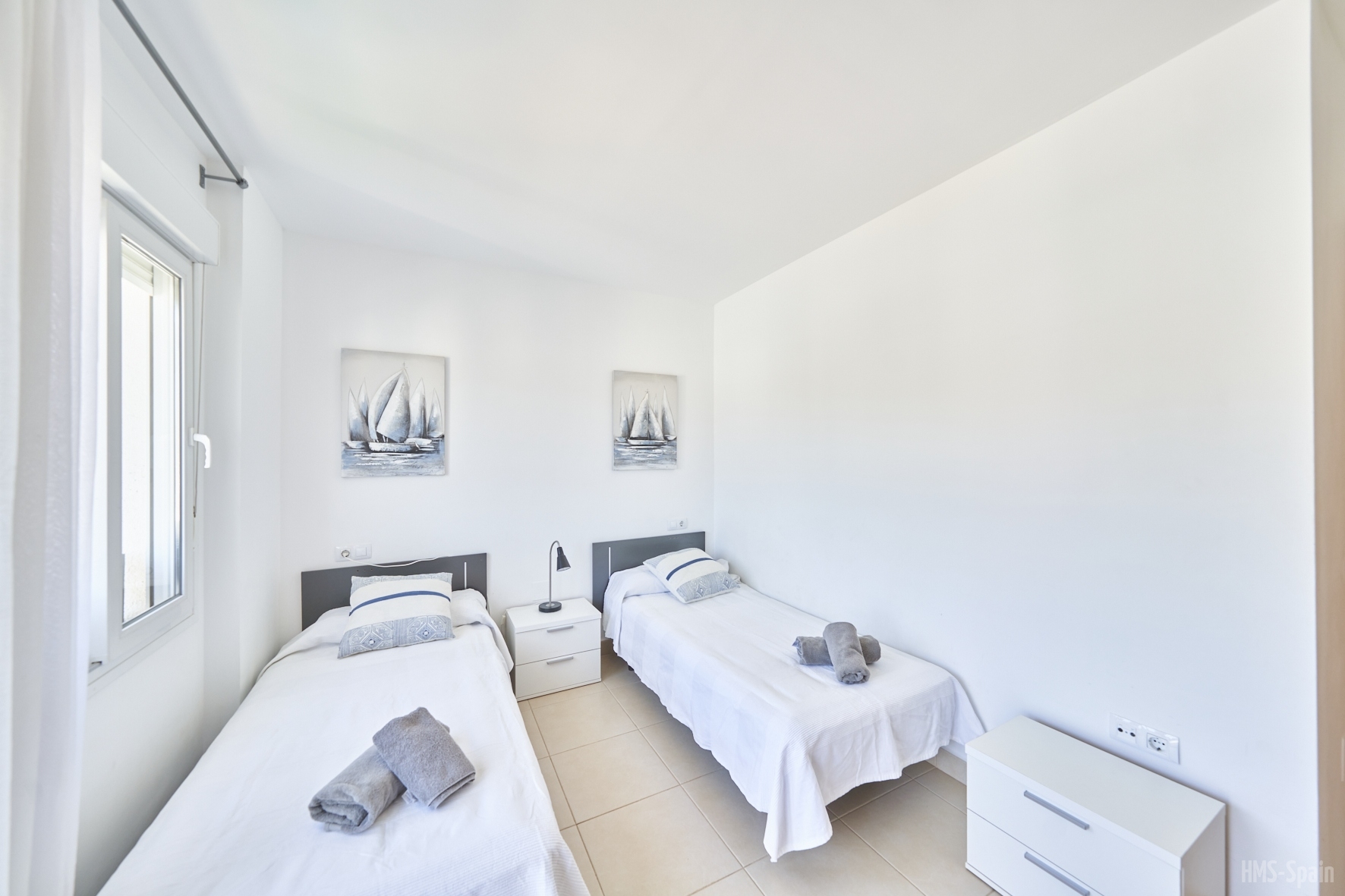 Dispone de cuatro dormitorios, dos de ellos con dos camas de 90 cm y dos dormitorio con dos camas de 135 cm cada una, 2 baños, salón-comedor y cocina. Terraza amueblada para disfrutar de comidas al aire libre. Dispone de piscina comunitaria. A menos de 5 minutos de la playa y del Paseo MarÃtimo.