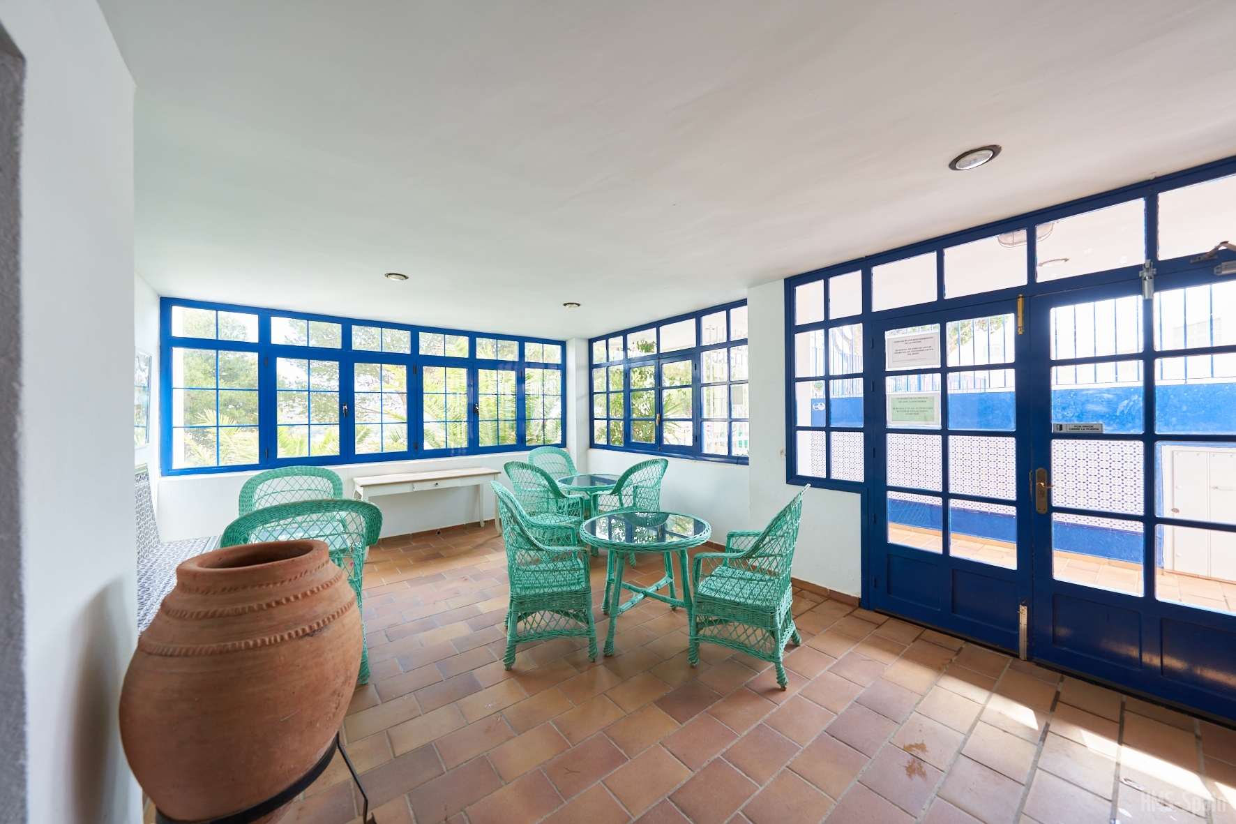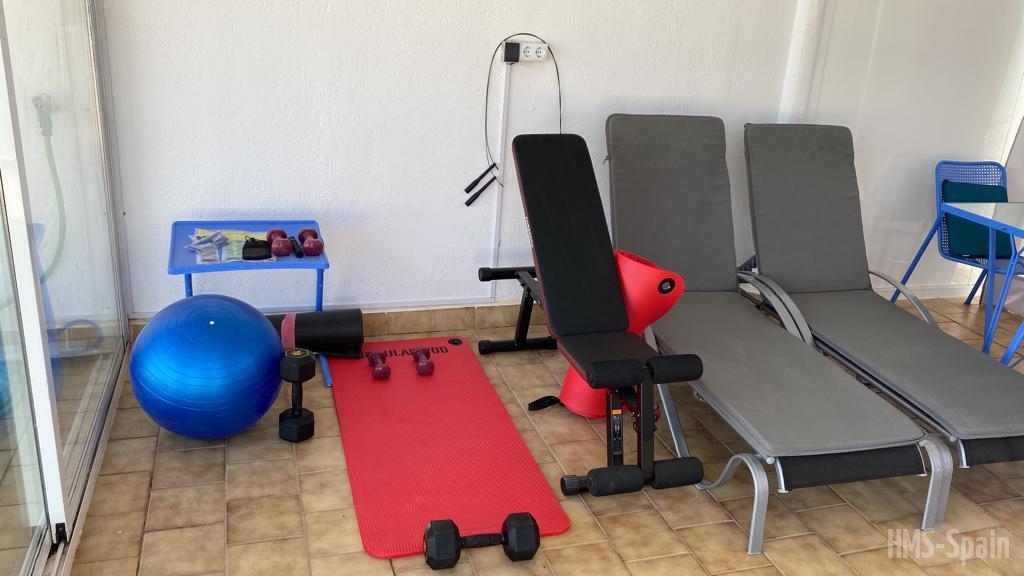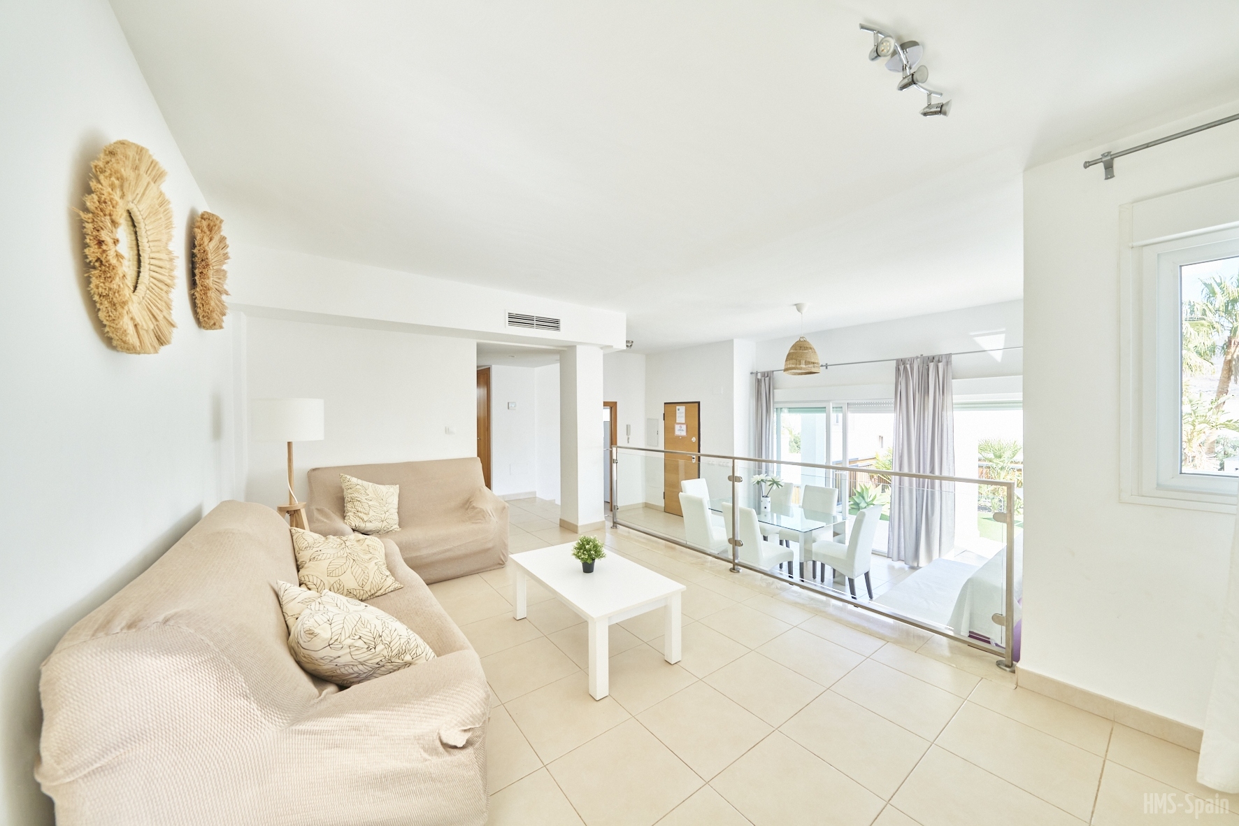 Estupendo apartamento/ático en la parte alta de San José a 3 minutos de la playa y del centro del pueblo y piscina comunitaria Dispone de 1 dormitorio, dos sofás-camas con cama adicional, un baño, cocina totalmente equipada, espacio de trabajo, una terraza al sur y otra terraza muy amplia con magnÃfica GalerÃa con espacio para Fitness y tumbonas/solárium, asà como una mesa de comedor.