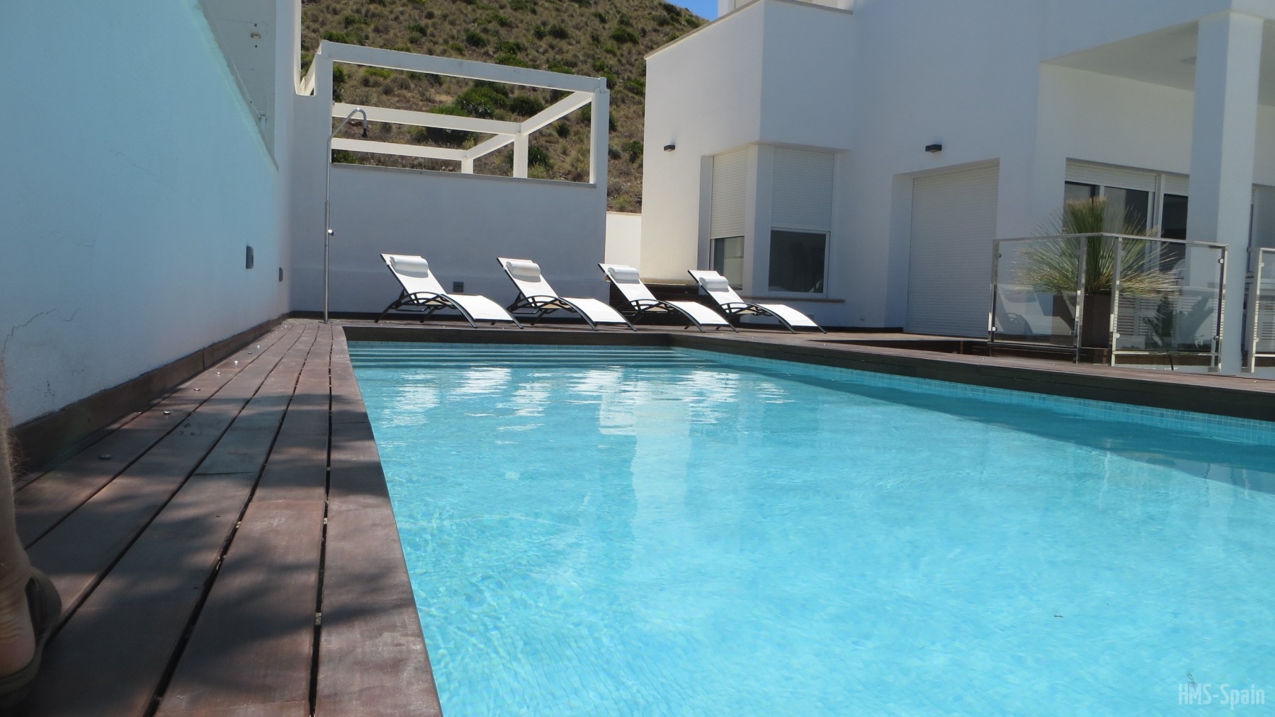 Espectacular Villa con piscina privada, totalmente equipada y con capacidad para 10 personas ubicada en una zona tranquila de San José en pleno Parque Natural de Cabo de Gata, a 10 minutos del centro del pueblo y de la playa del puerto