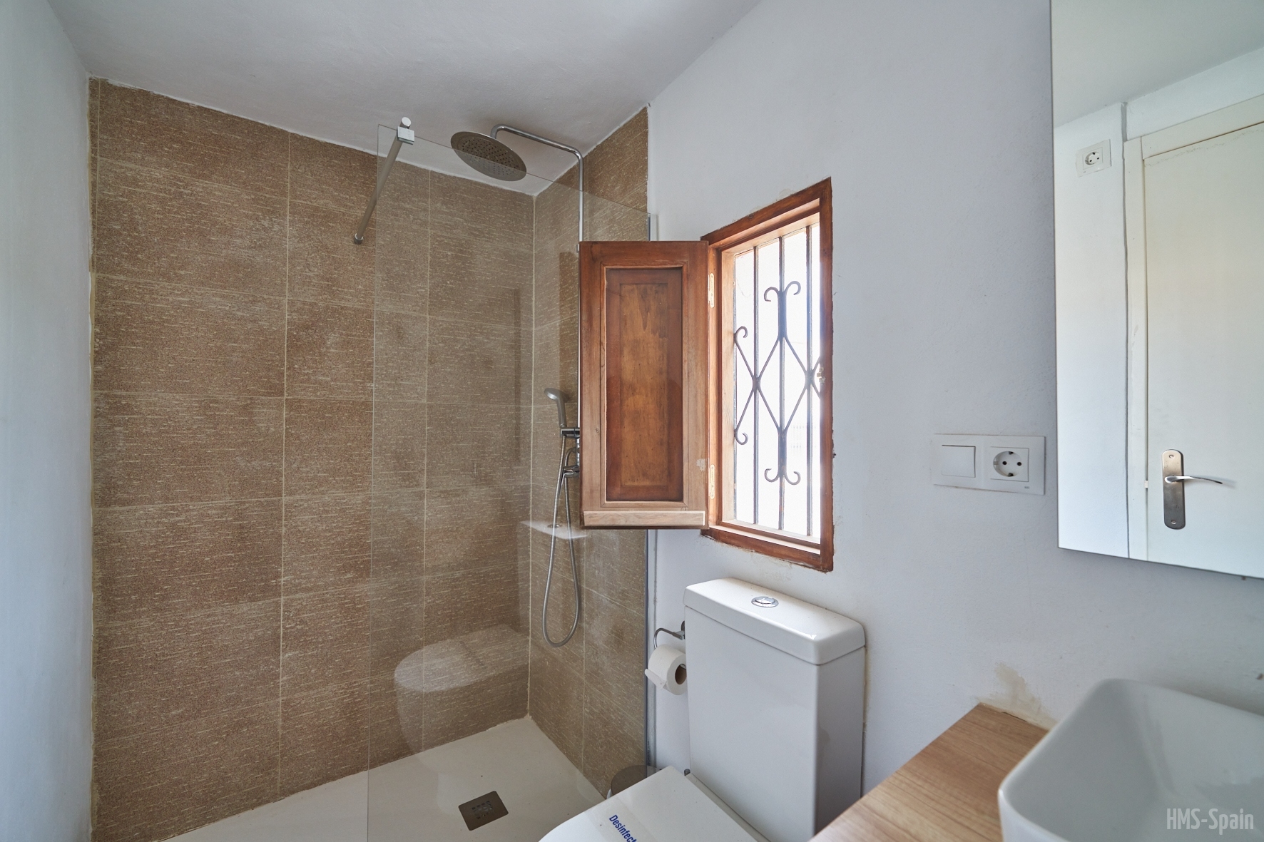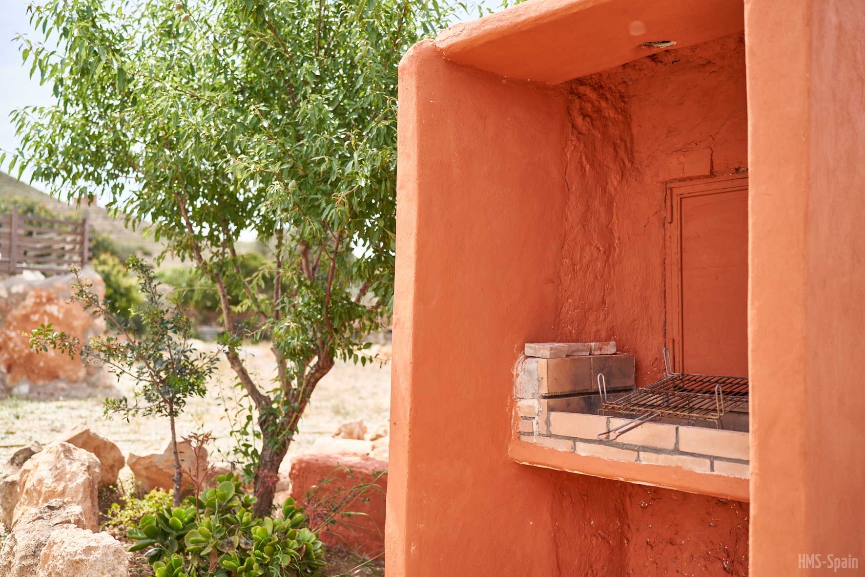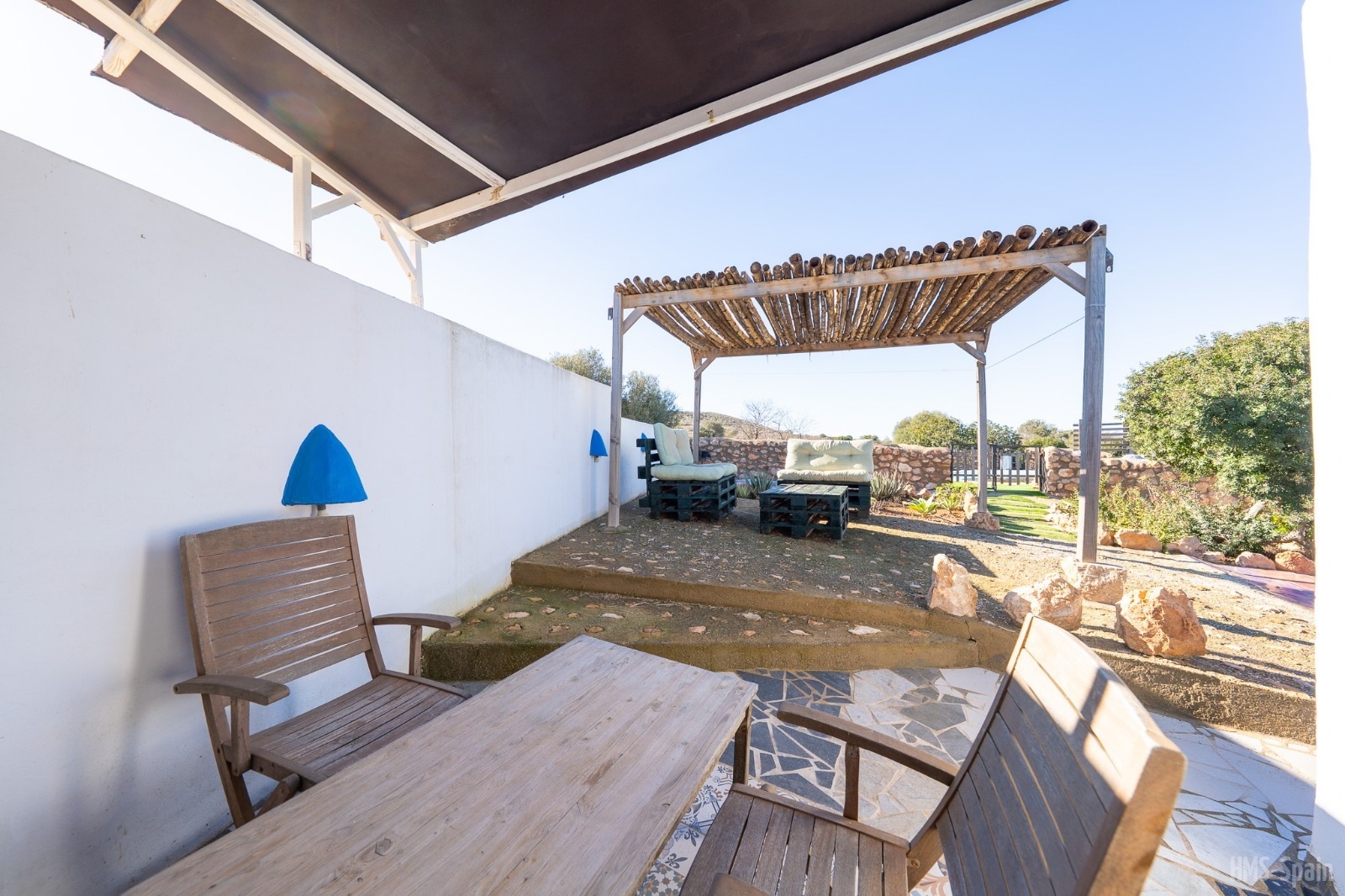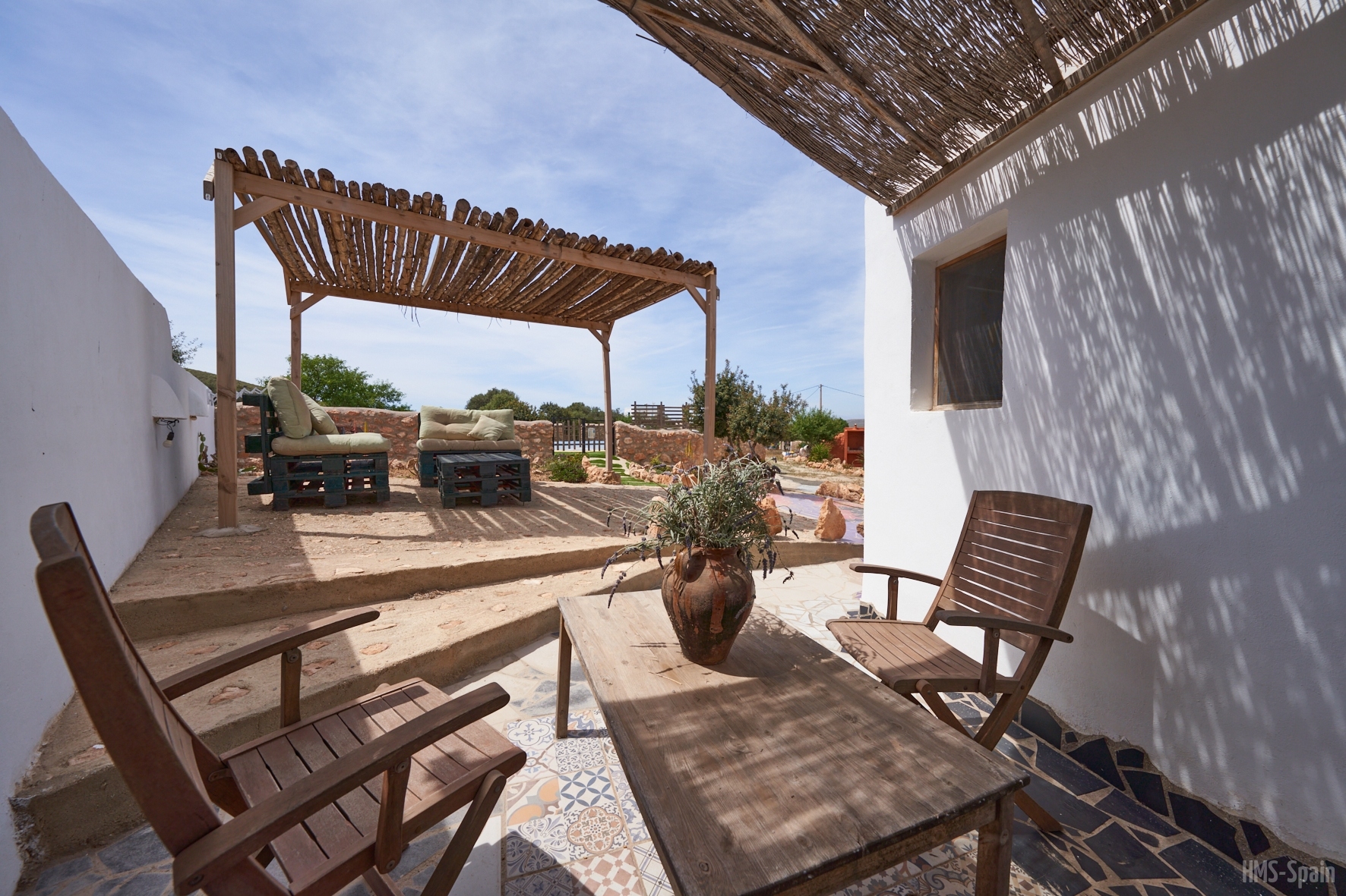 El alojamiento está vallado, se compone de 2 casas: Sabina y Mora que comparten zonas exteriores ajardinadas, piscina, espacios chill out y espacio aparcamiento para 3 coches dentro de la propiedad.