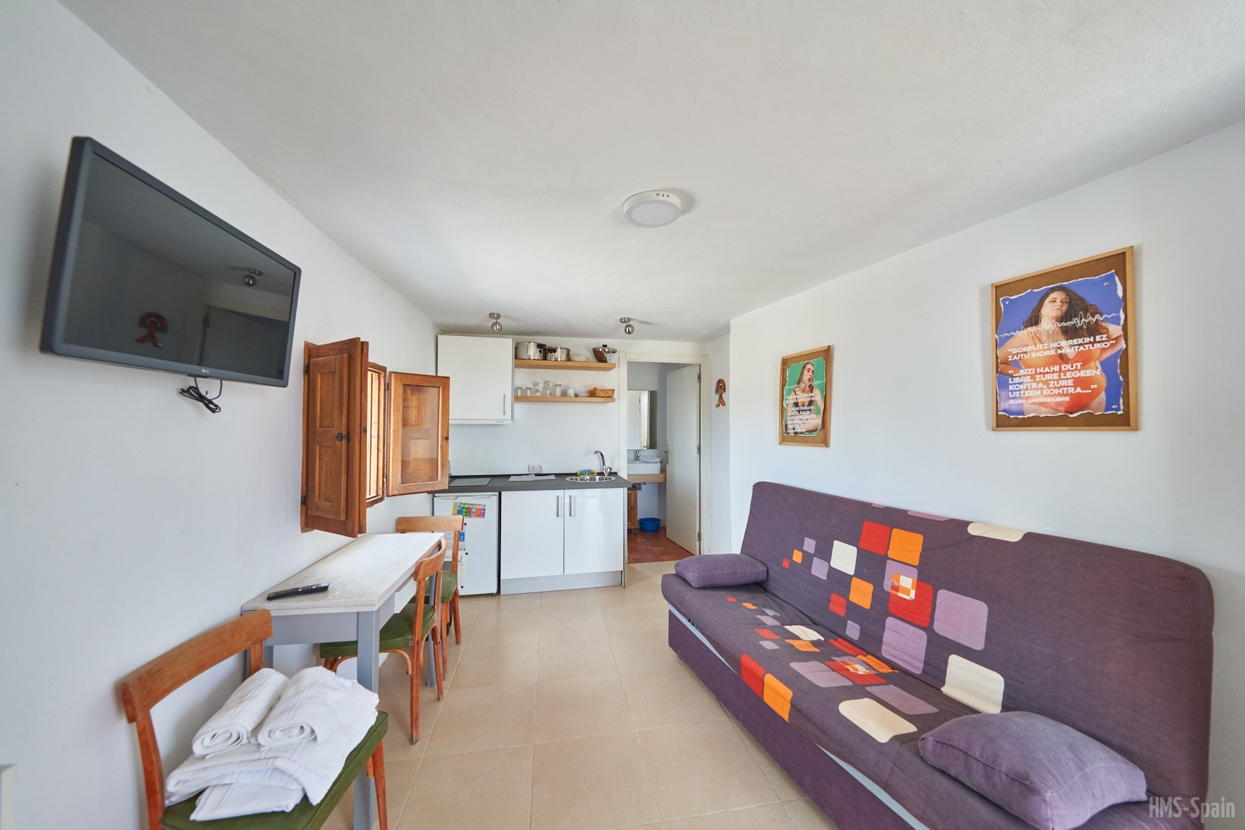 1 dormitorio con 1 cama de matrimonio y 1 sofá cama en salón. 1 baño. Máximo 4 personas.
