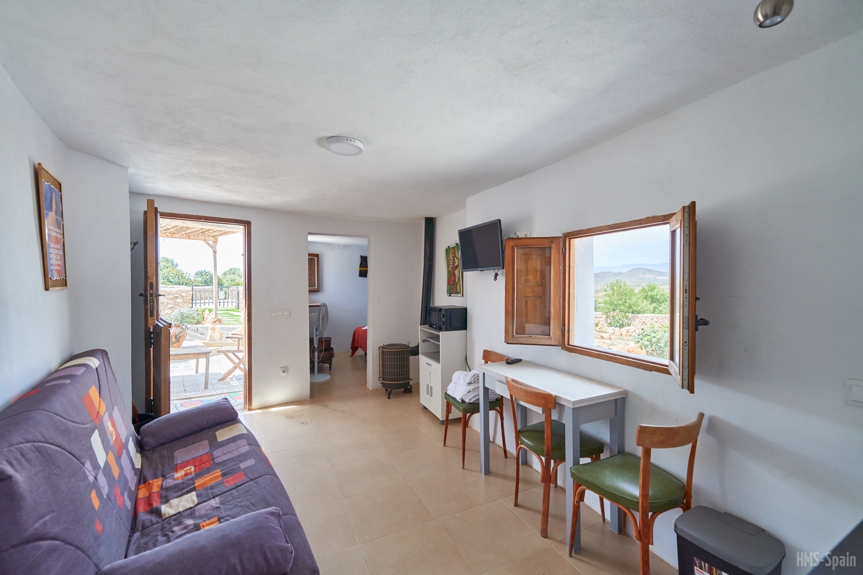 Casita tranquila de un dormitorio y sofá cama en el salón, ideal para una familia con 2 niños o 4 adultos. Ubicada en zona rural, escenario de varios rodajes de spaguetti western, donde pasará unos días de relax en un entorno muy tranquilo. Dispone de Aire Acondicionado en el salón.