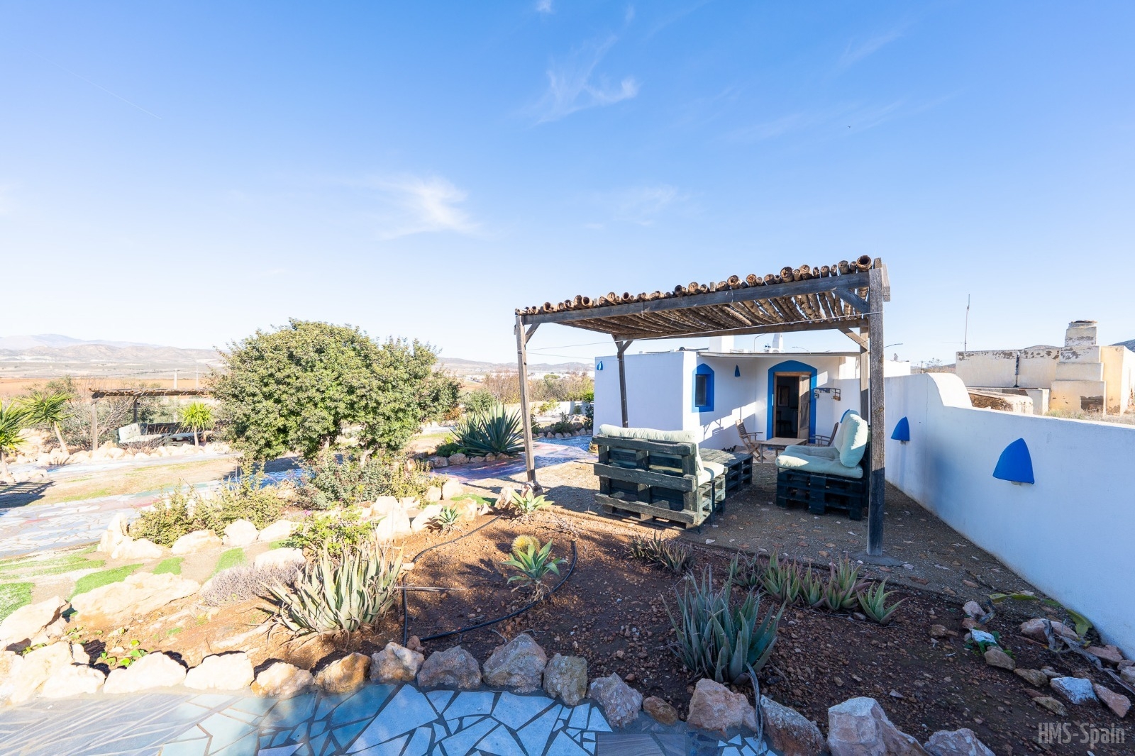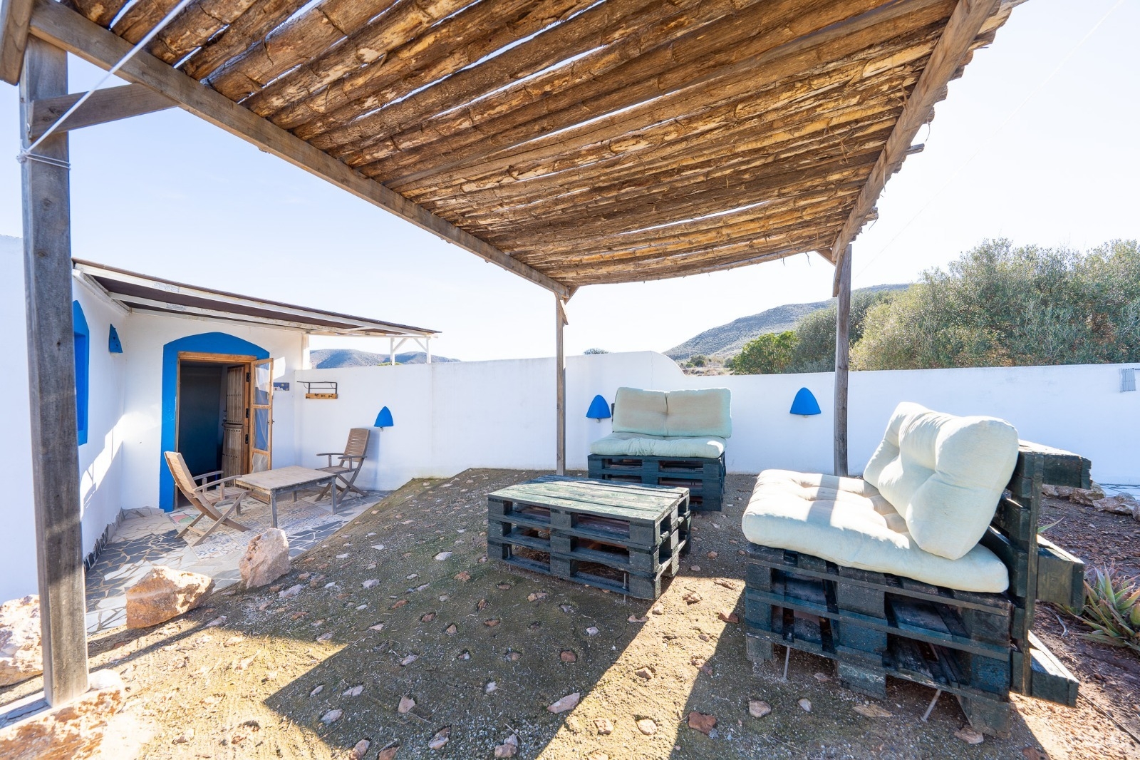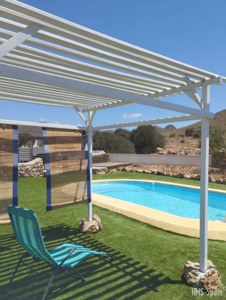 Casita tranquila con piscina en zona rural, escenario de varios rodajes de spaguetti western, donde pasará unos días de relax en un entorno muy tranquilo. Dispone de un dormitorio con cama doble y un sofá cama en el salón, ideal para una pareja con dos niños o 3 adultos. Dispone de Aire Acondicionado en el salón.