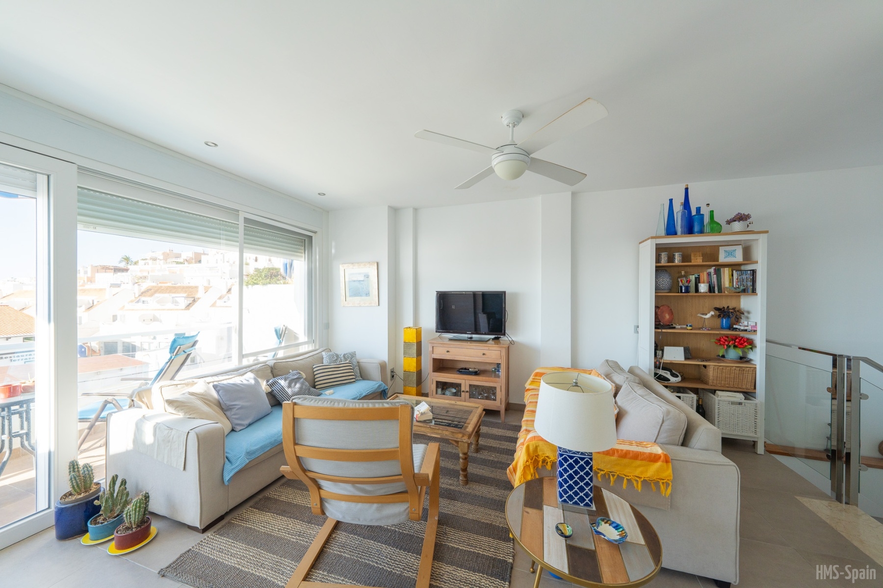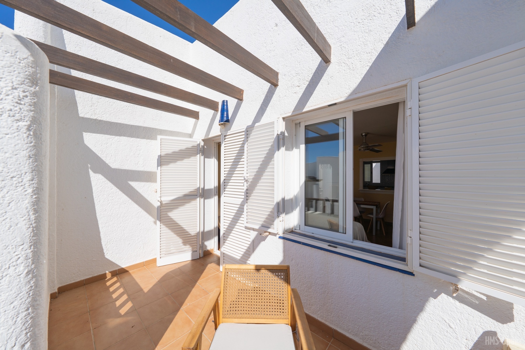 Fabuloso dúplex de dos dormitorios con aire acondicionado ubicado cerca de la playa y del centro del pueblo de San Jose. Con capacidad para cuatro personas, dispone de cocina totalmente equipada,con horno y lavadora. Salón-comedor con TV y dos ventiladores de techo. Dos dormitorios y dos terrazas equipadas con mesas y sillas con vistas al mar.
