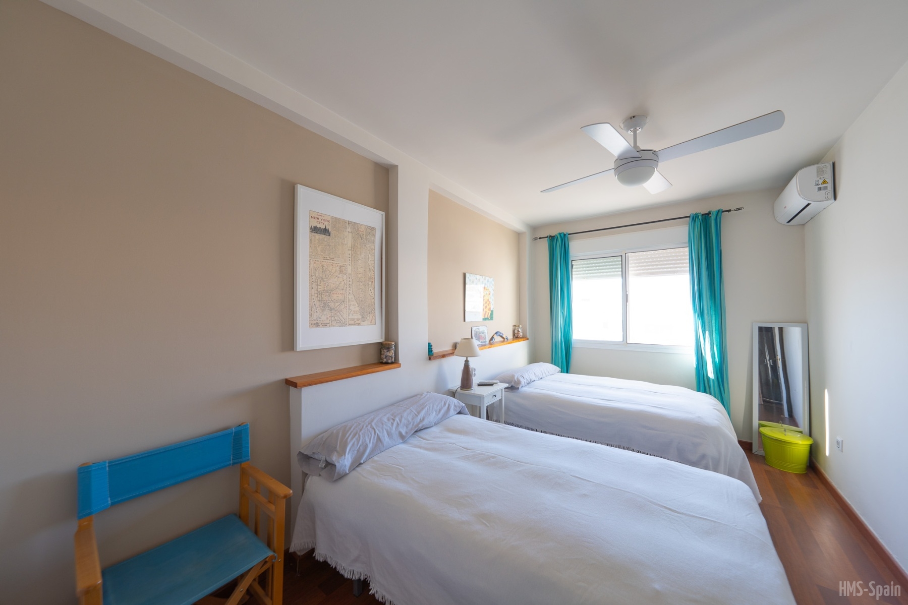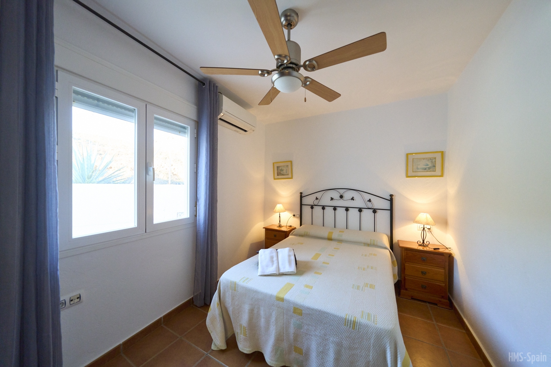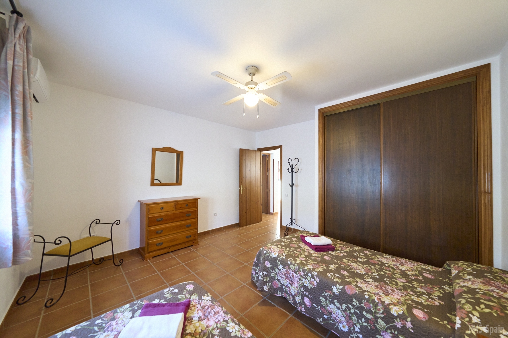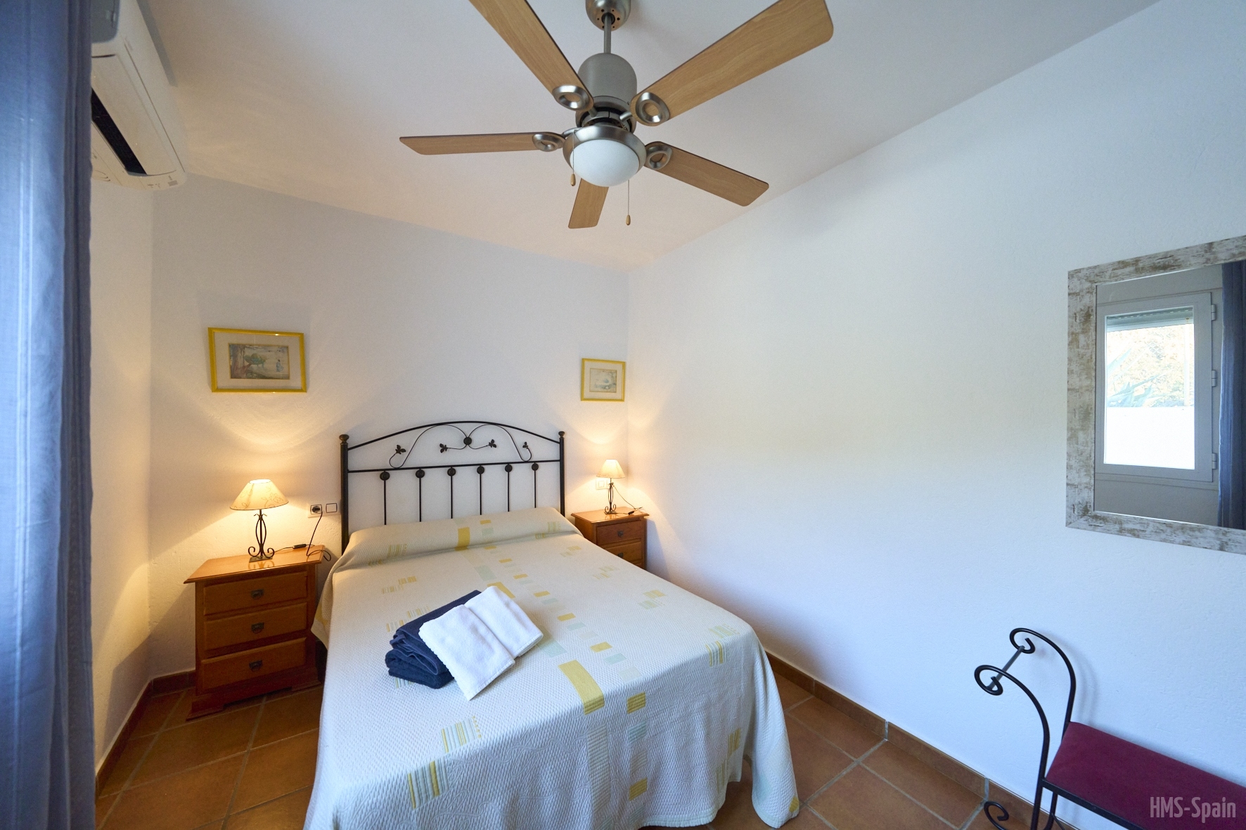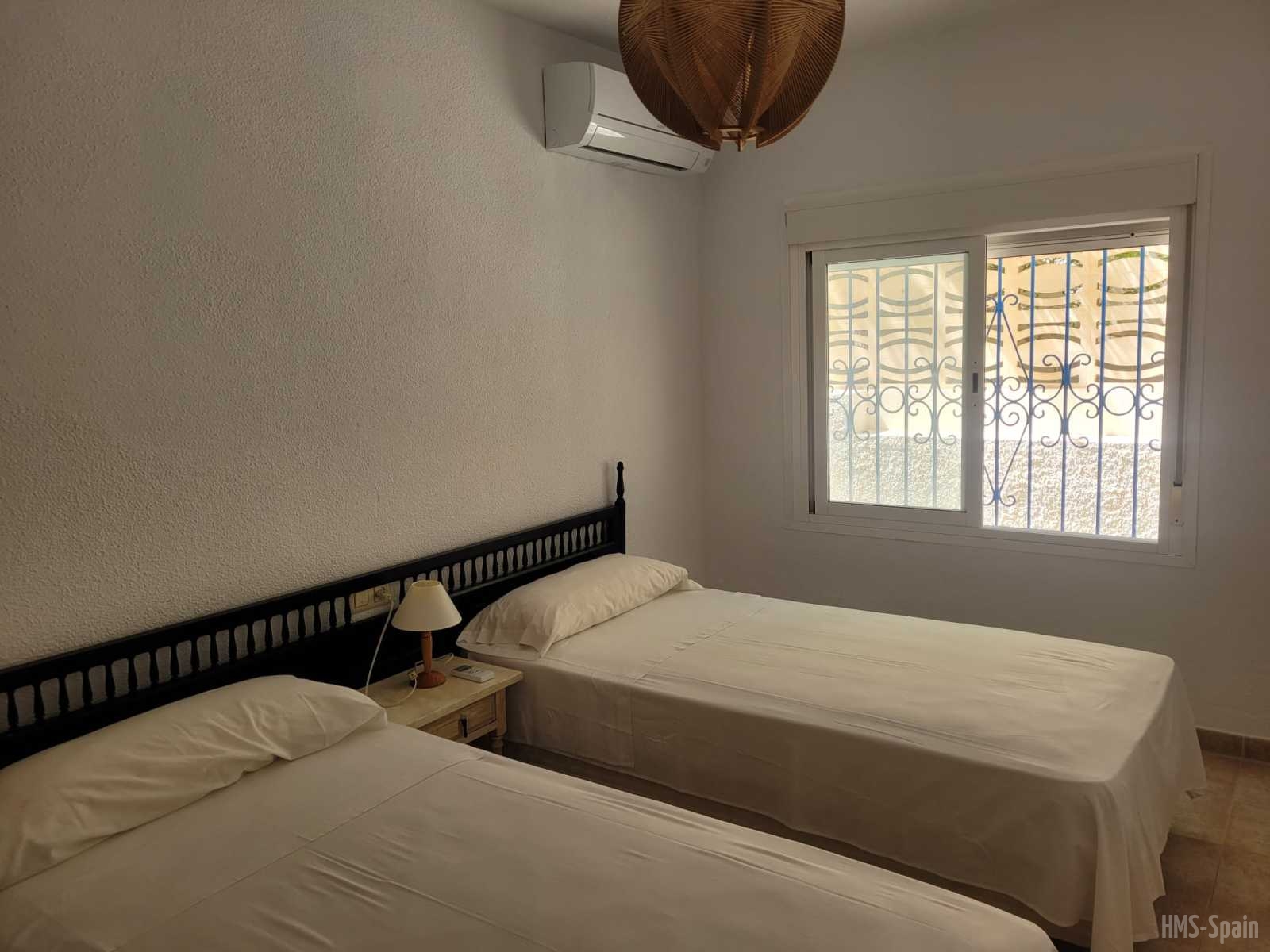 El alojamiento tiene aire acondicionado en los dos dormitorios y dos ventiladores de techo en el salón. Dos habitaciones ,una de ellas con cama de matrimonio y la otra con dos individuales, dos baños