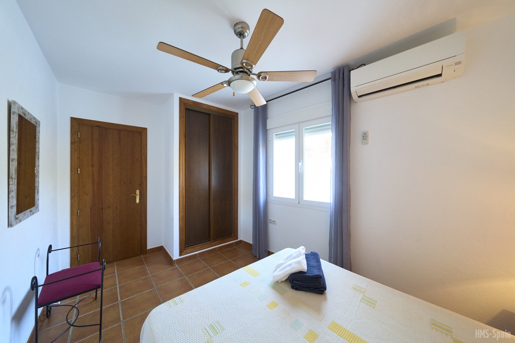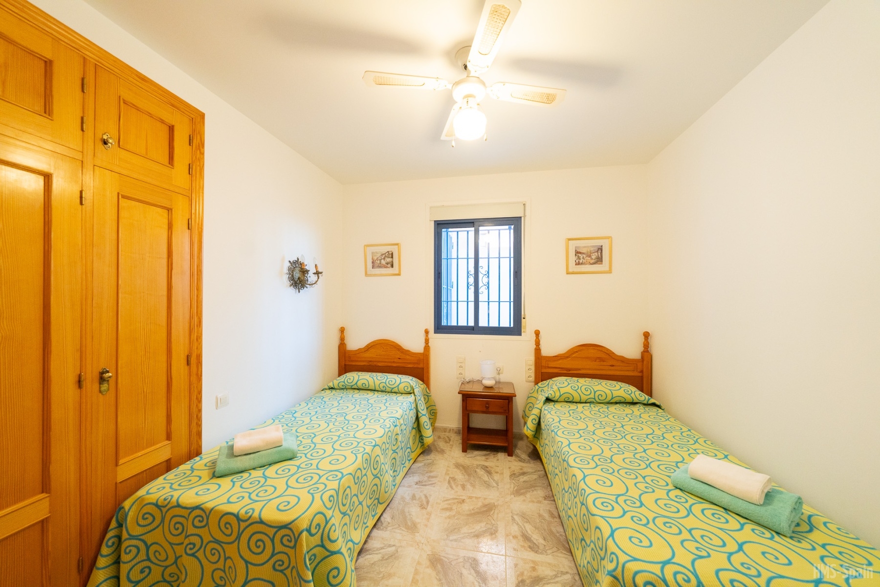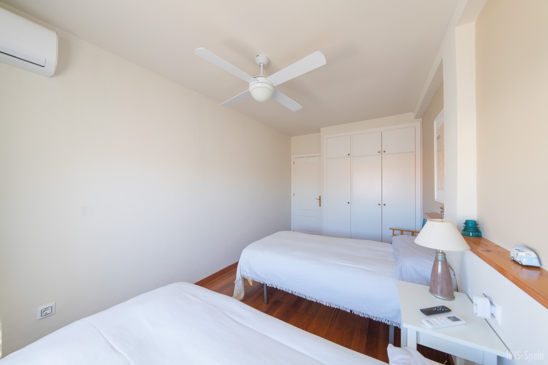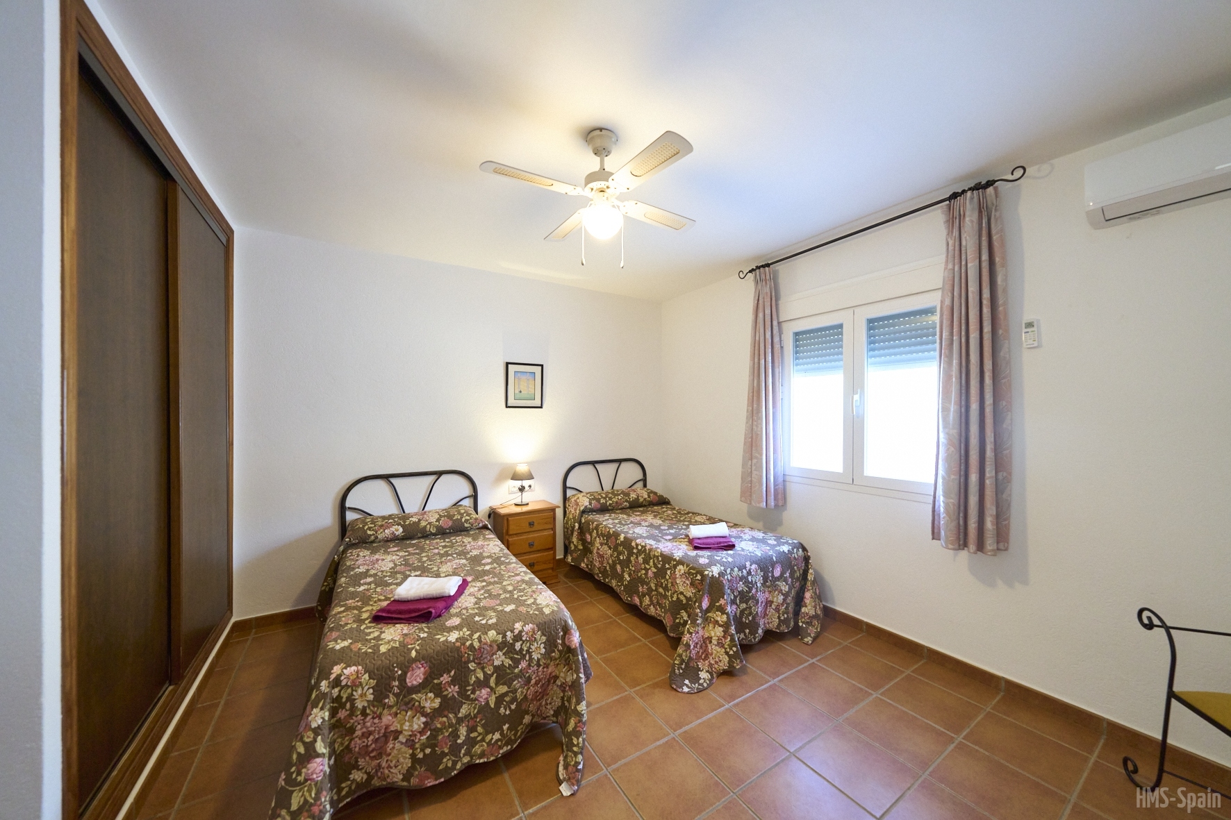 El alojamiento tiene aire acondicionado en los dos dormitorios y dos ventiladores de techo en el salón. Dos habitaciones ,una de ellas con cama de matrimonio y la otra con dos individuales, dos baños