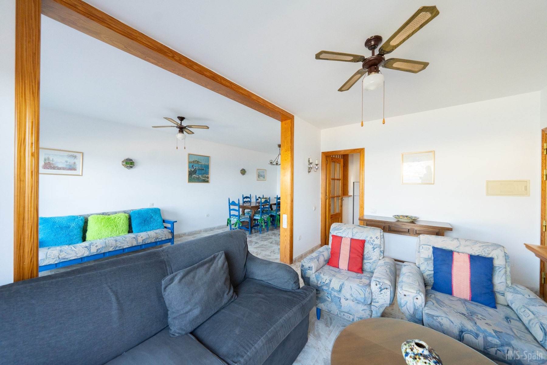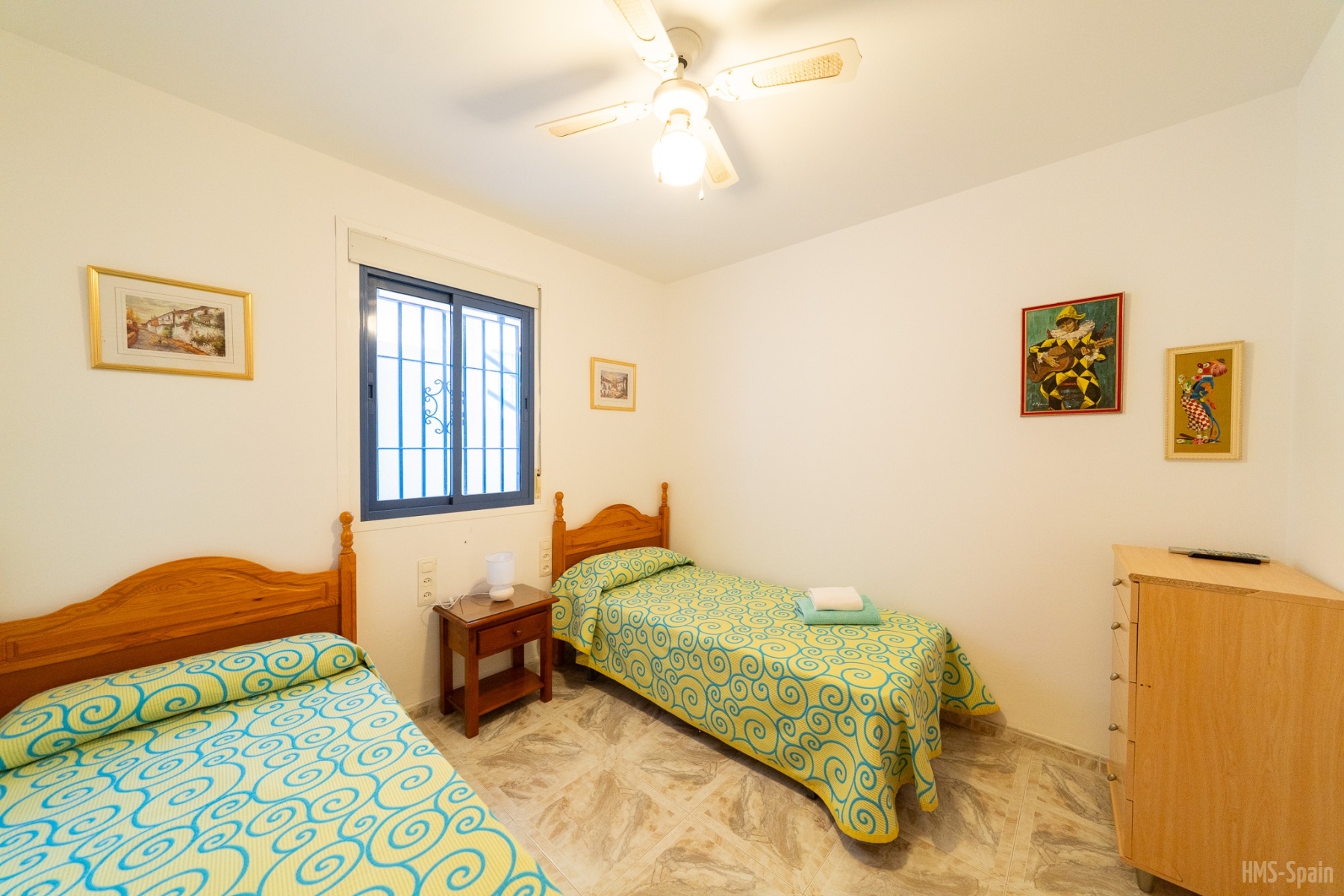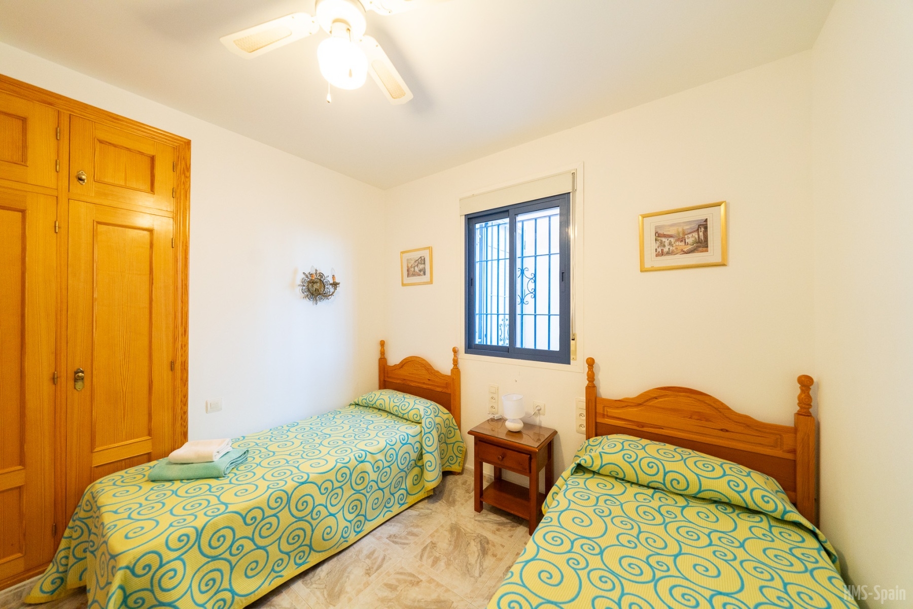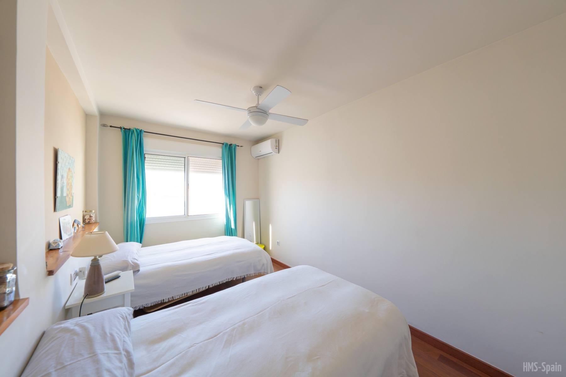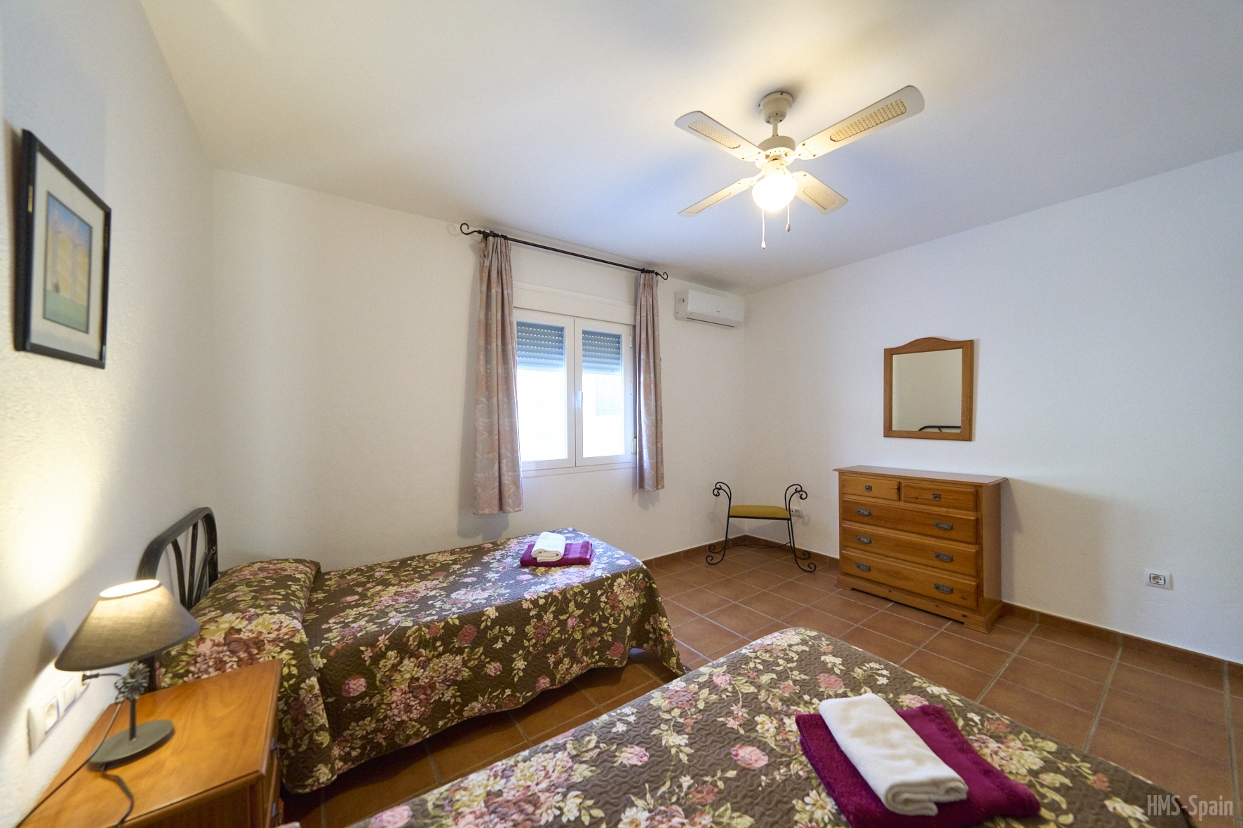 El alojamiento tiene aire acondicionado en los dos dormitorios y dos ventiladores de techo en el salón. Dos habitaciones ,una de ellas con cama de matrimonio y la otra con dos individuales, dos baños
