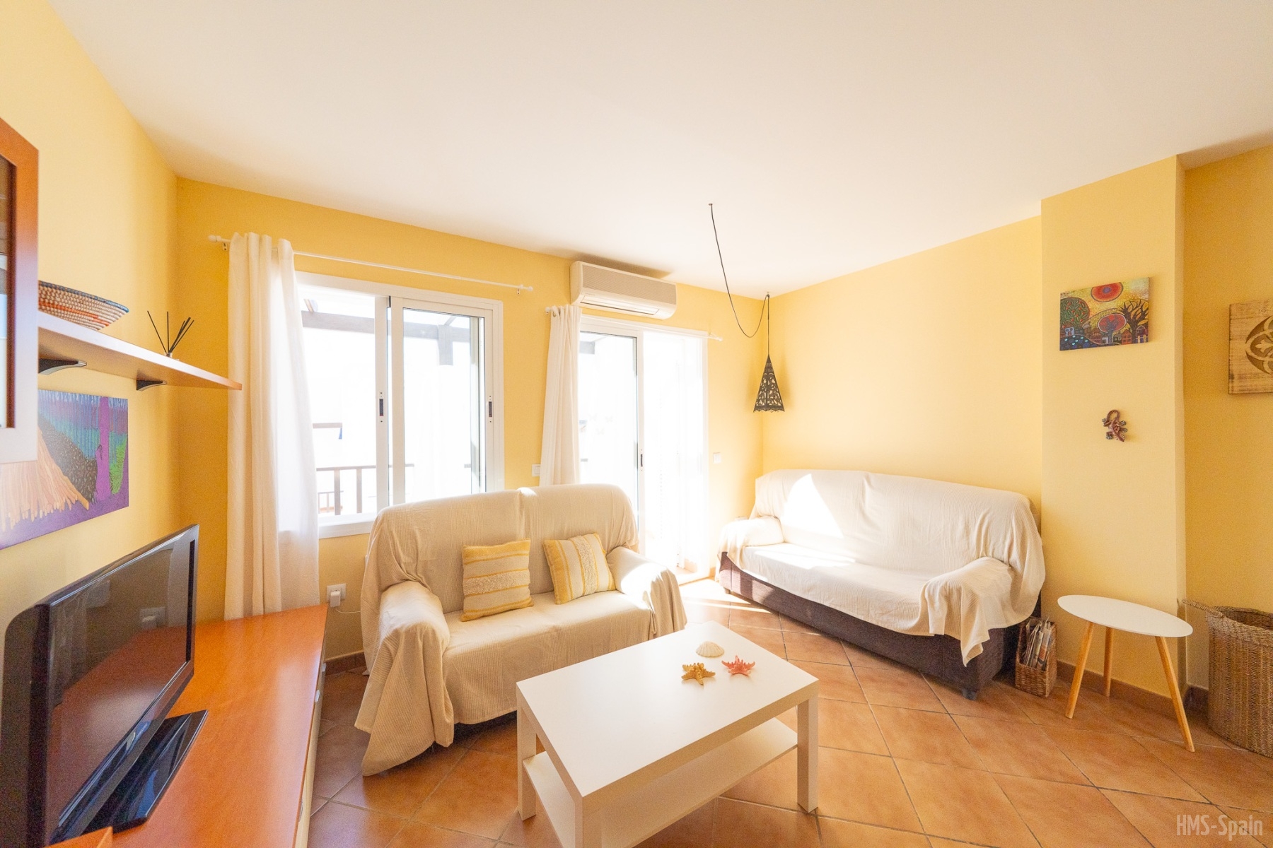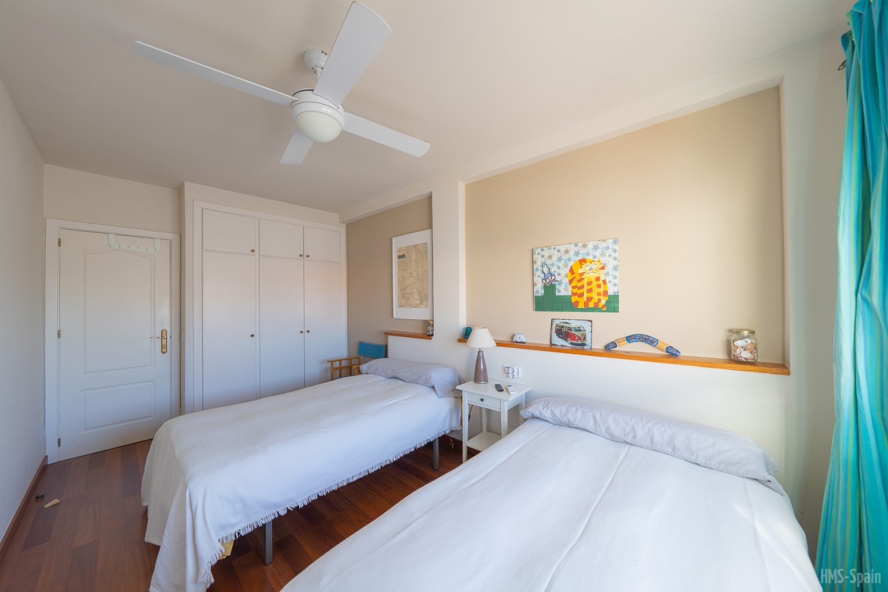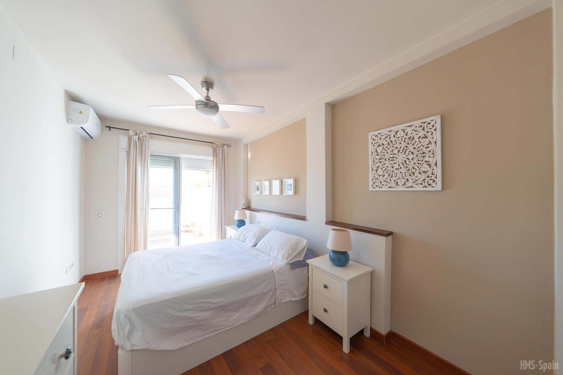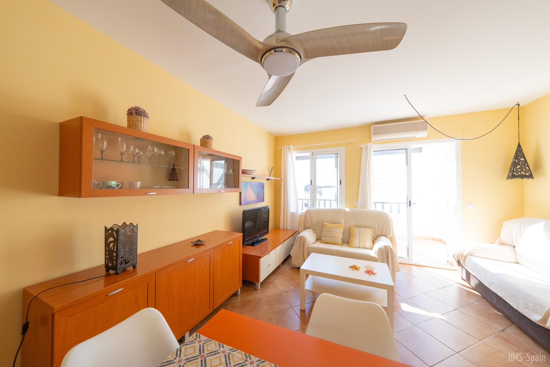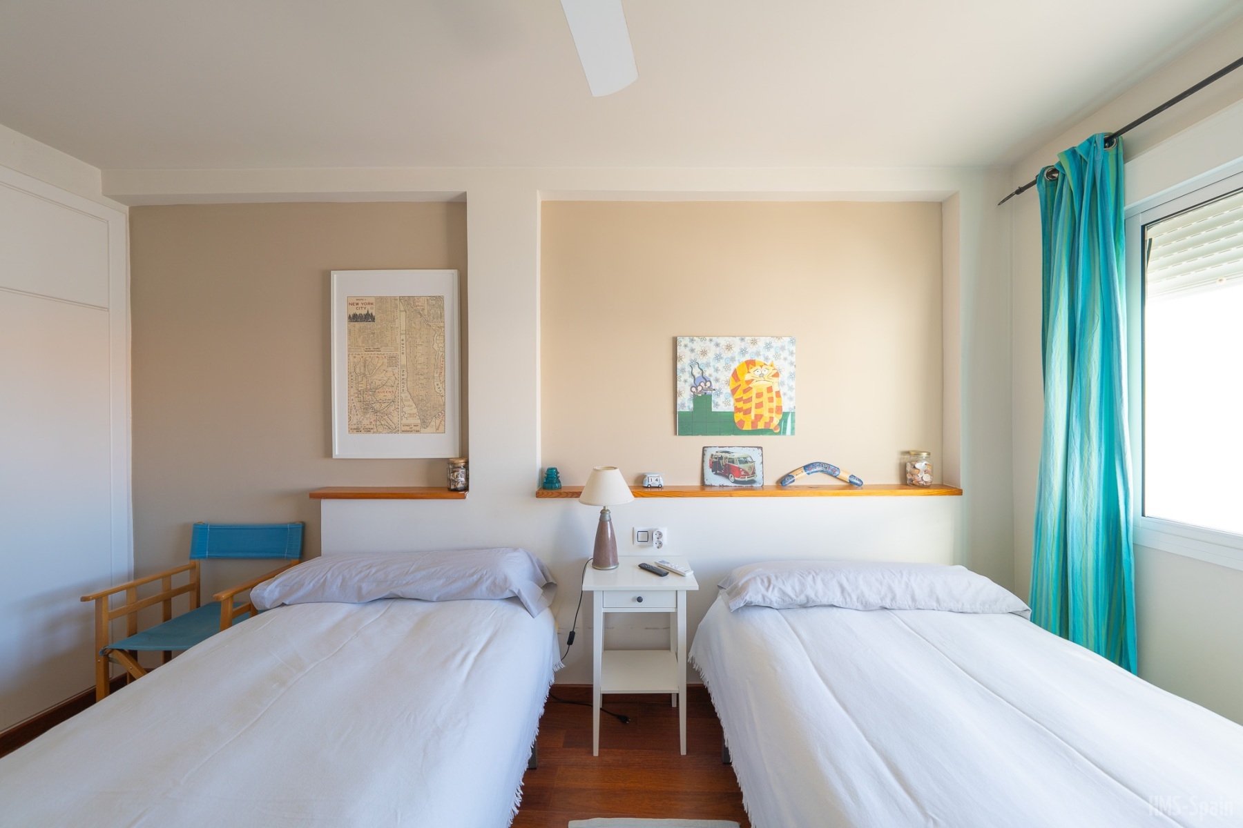El alojamiento tiene aire acondicionado en los dos dormitorios y dos ventiladores de techo en el salón. Dos habitaciones ,una de ellas con cama de matrimonio y la otra con dos individuales, dos baños