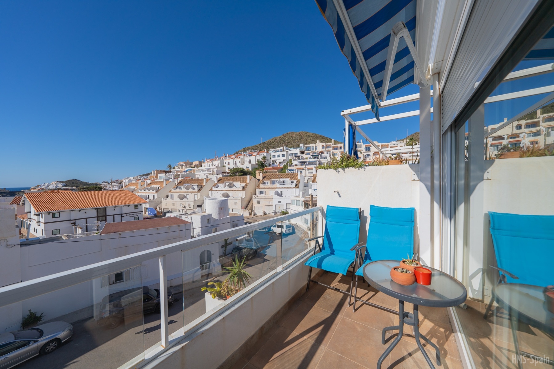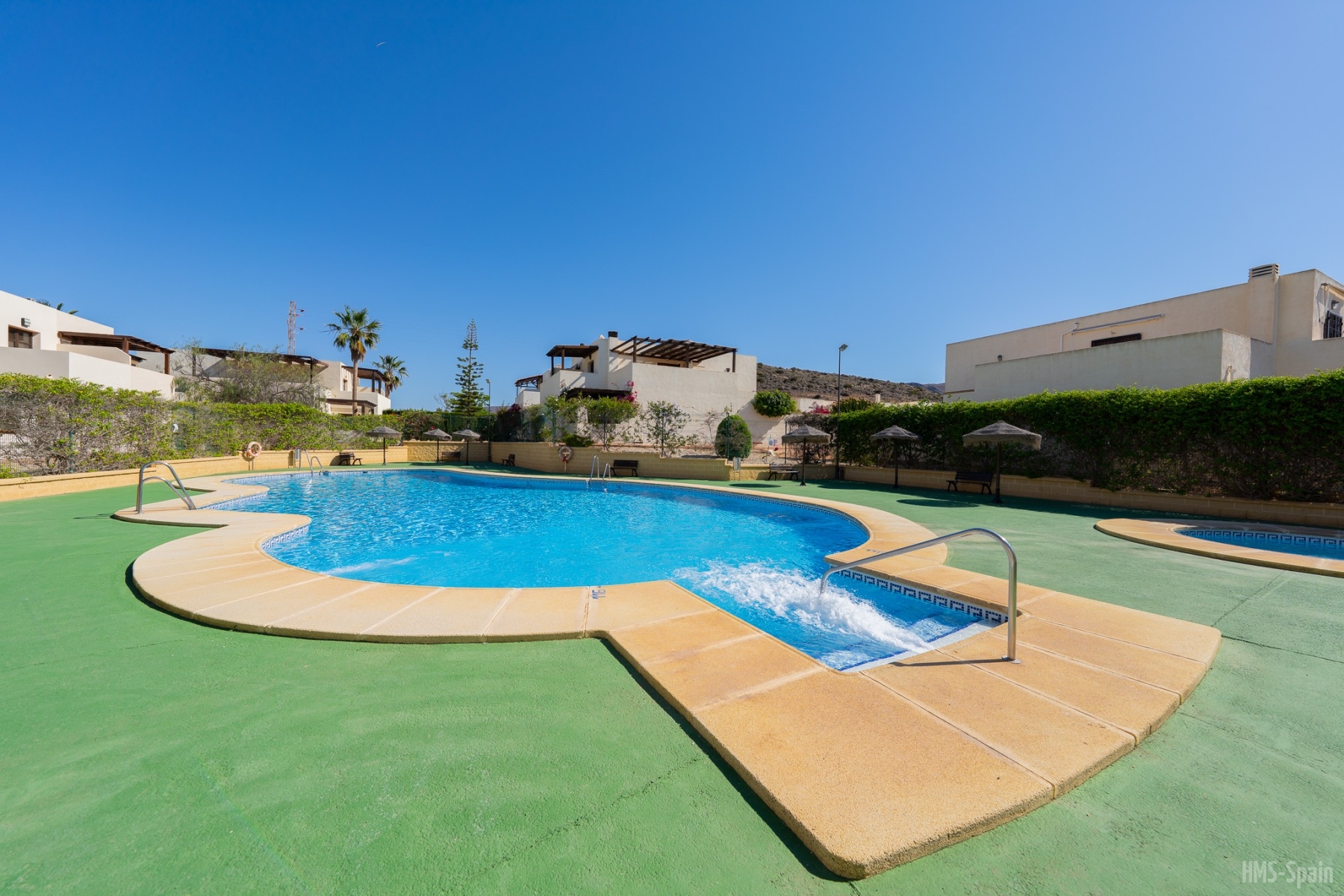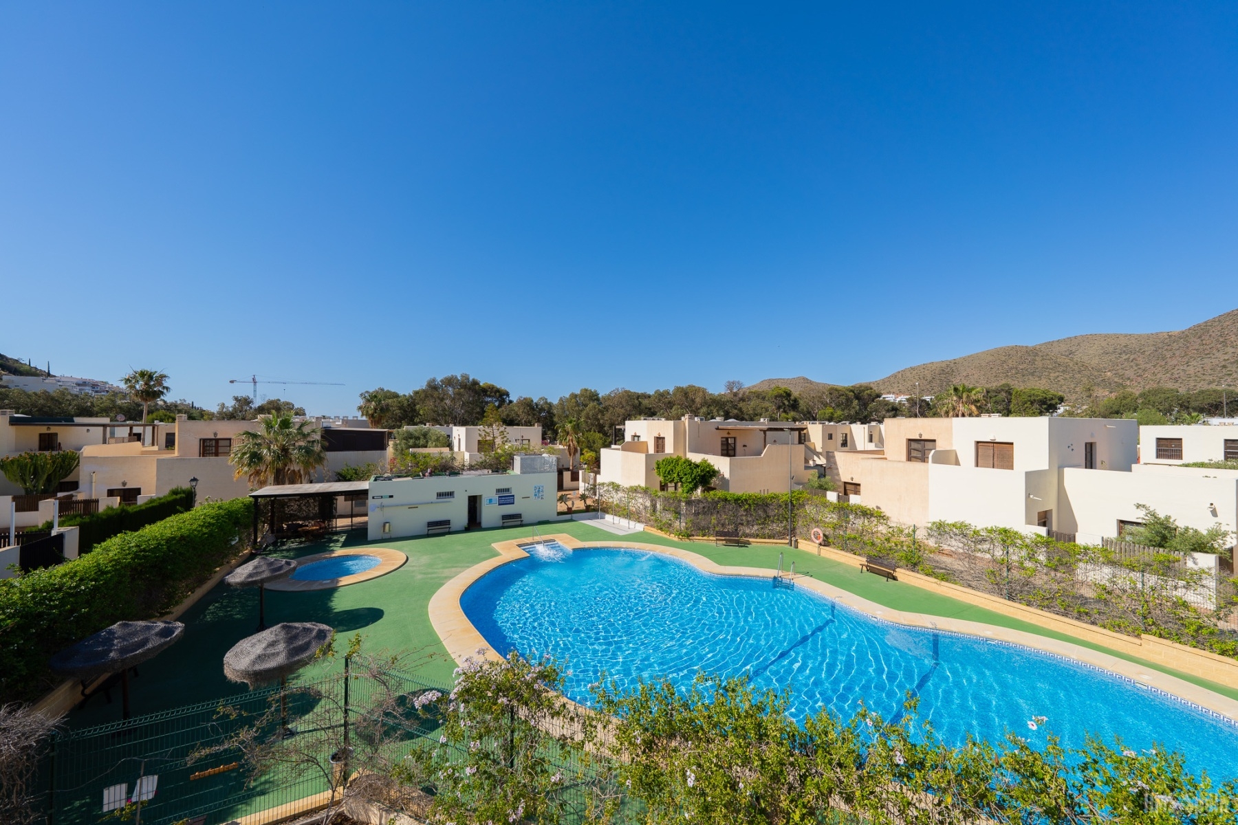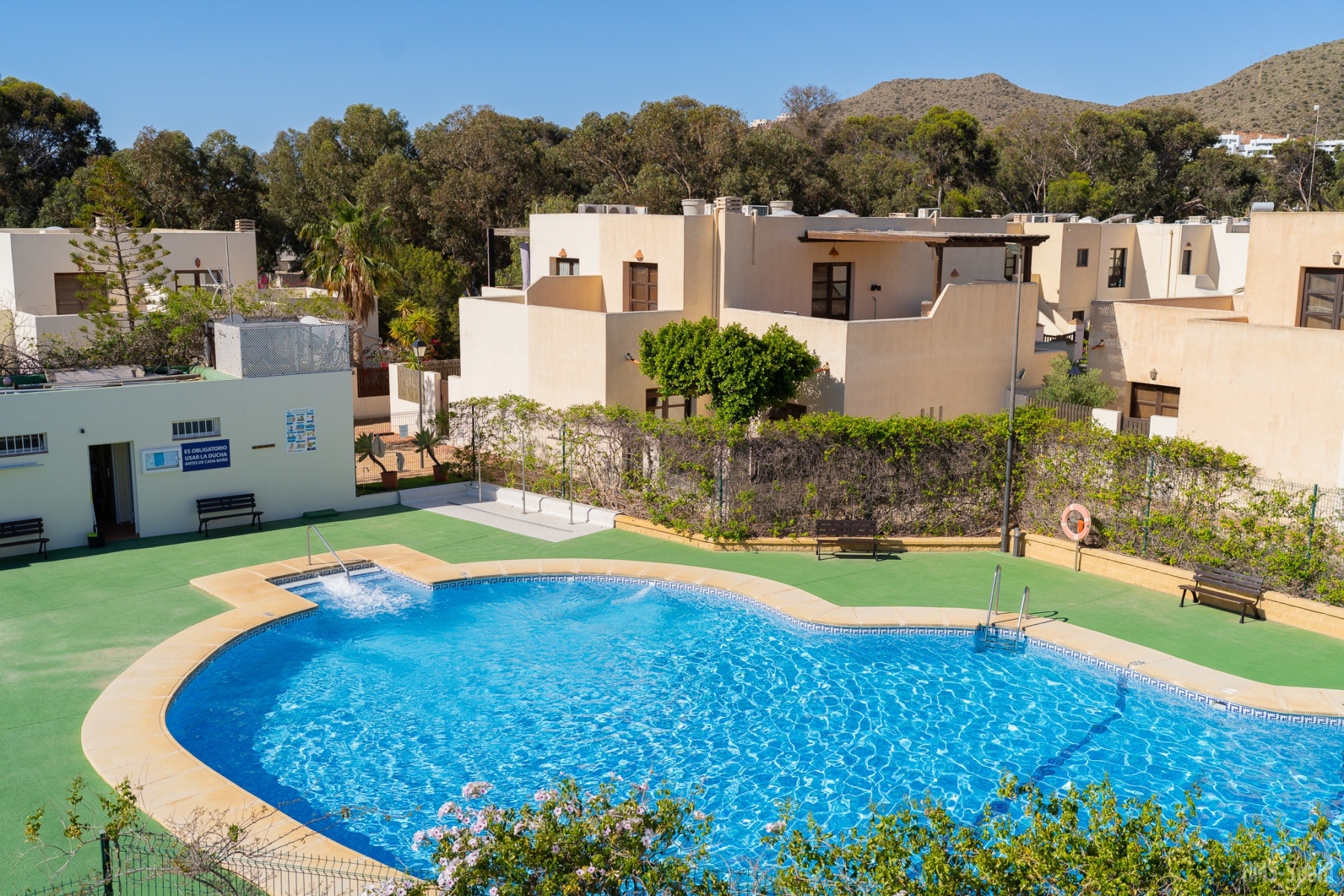 El apartamento se encuentra en una urbanización con piscina panorámica con vistas al mar y bajada directa. A 10 min del pueblo, a 2 minutos de la playa de la calilla y a 20 andando de la espectacular playa de los genovés.