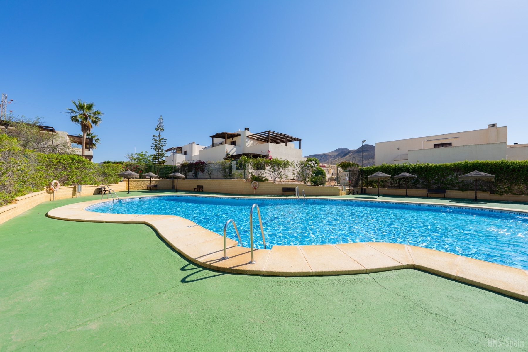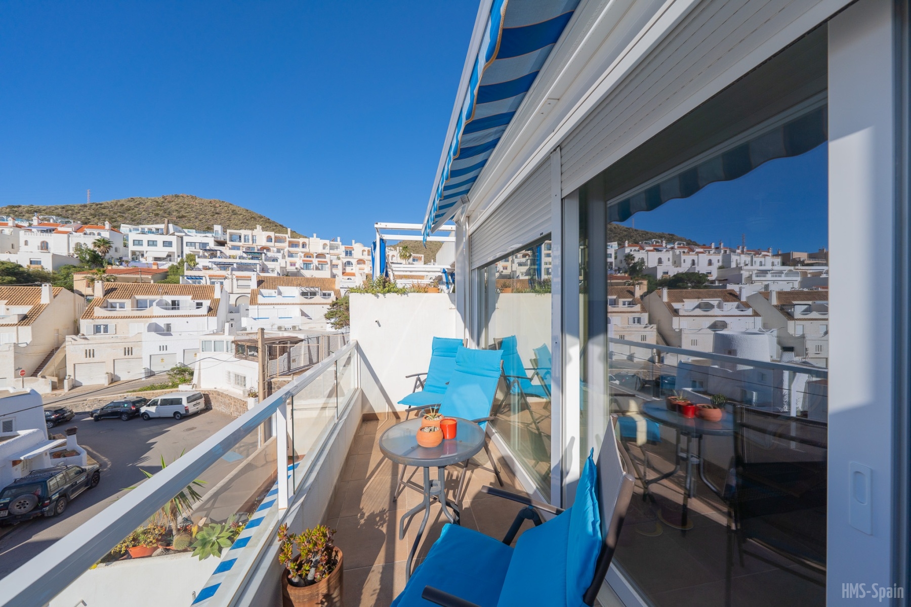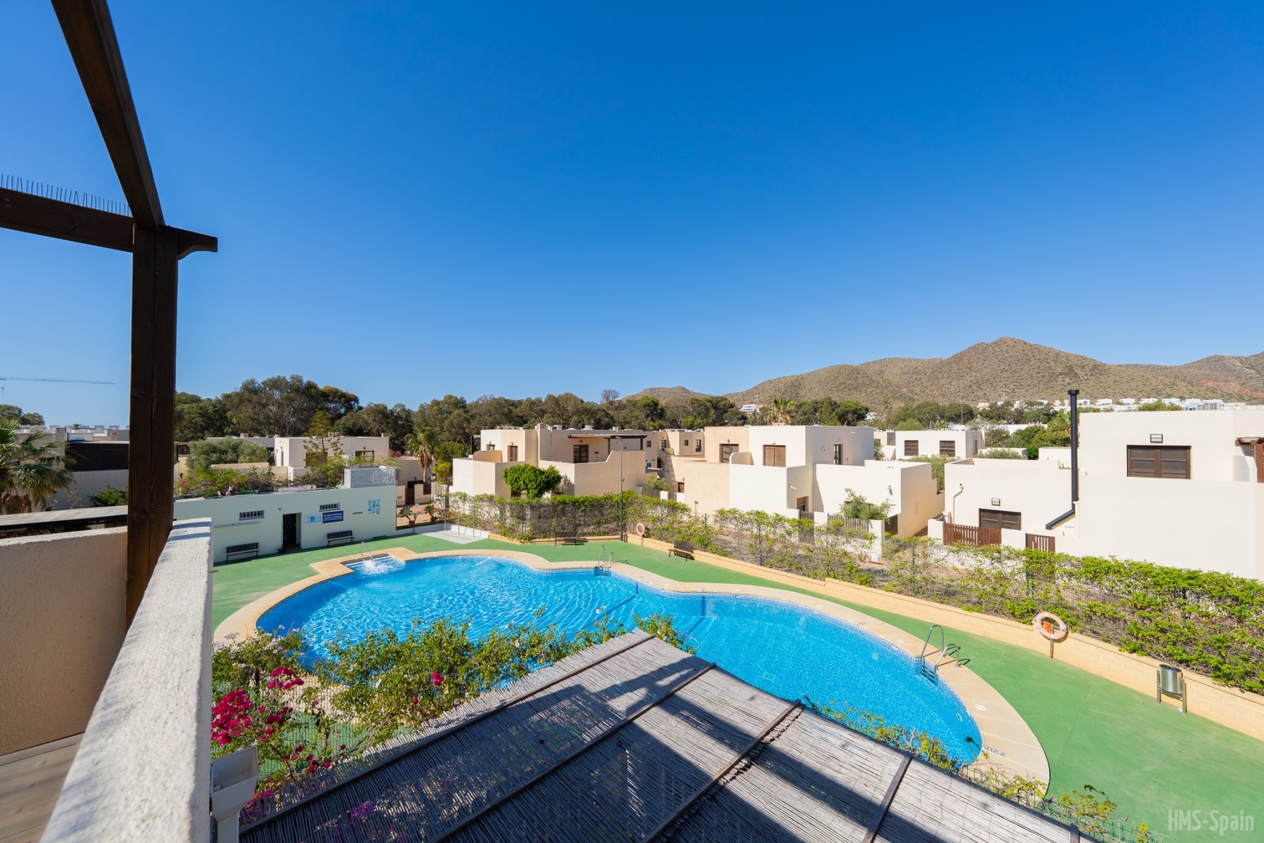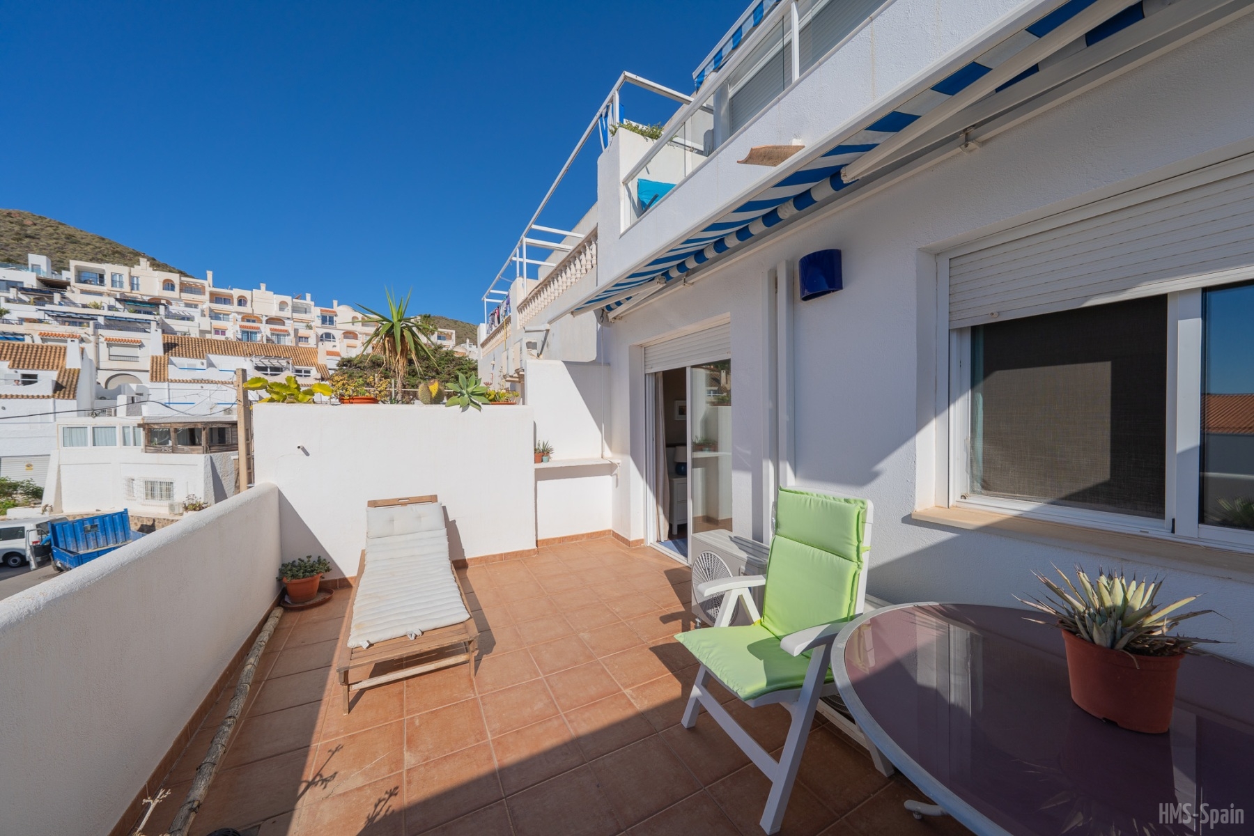 El apartamento se encuentra en una urbanización con piscina panorámica con vistas al mar y bajada directa. A 10 min del pueblo, a 2 minutos de la playa de la calilla y a 20 andando de la espectacular playa de los genovés.