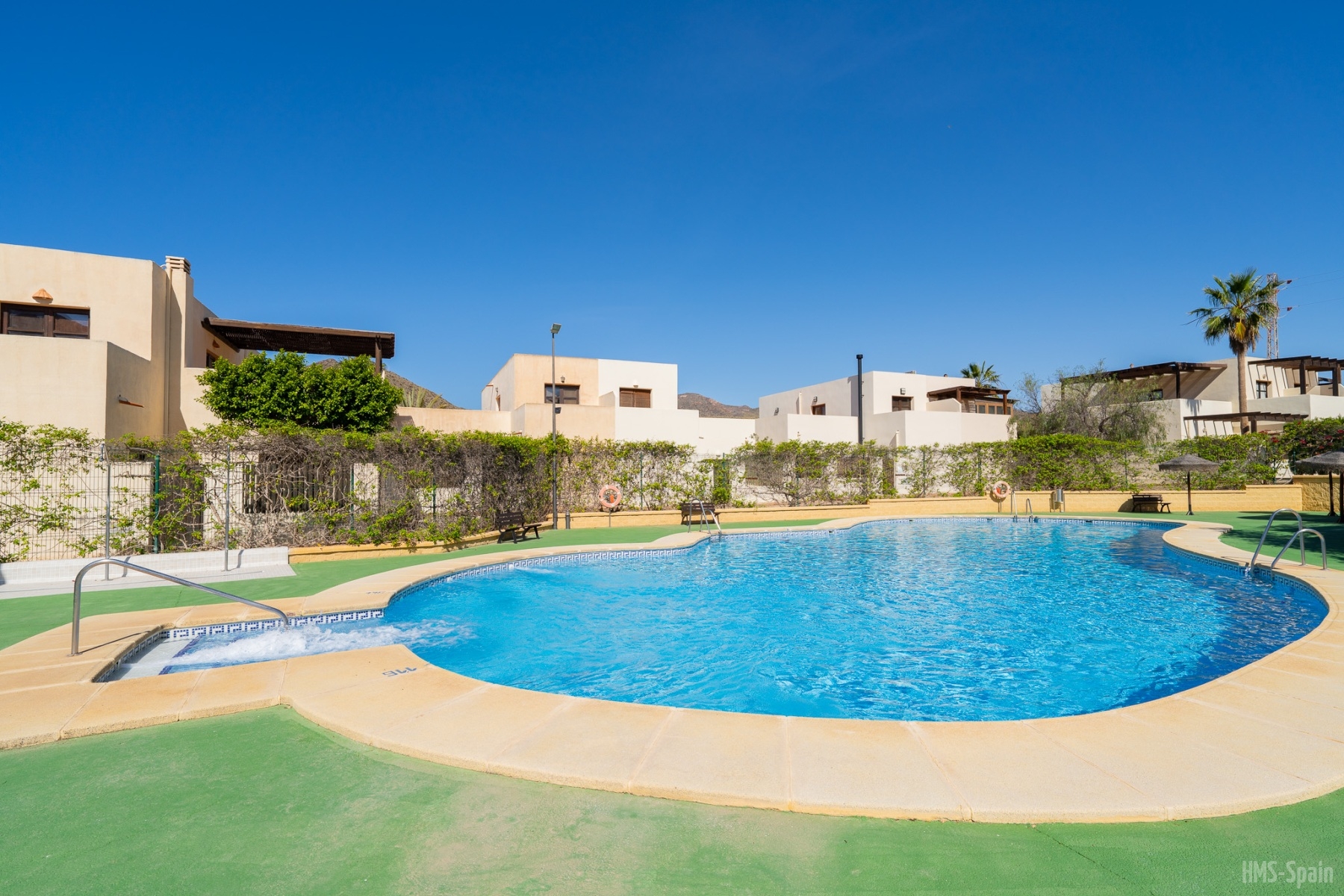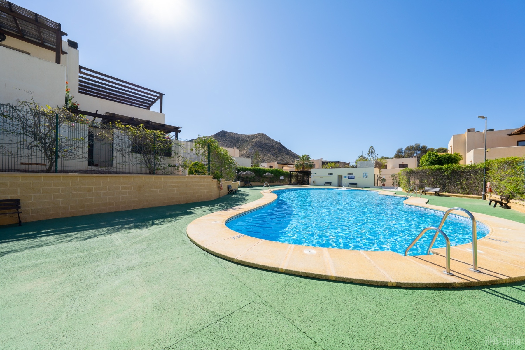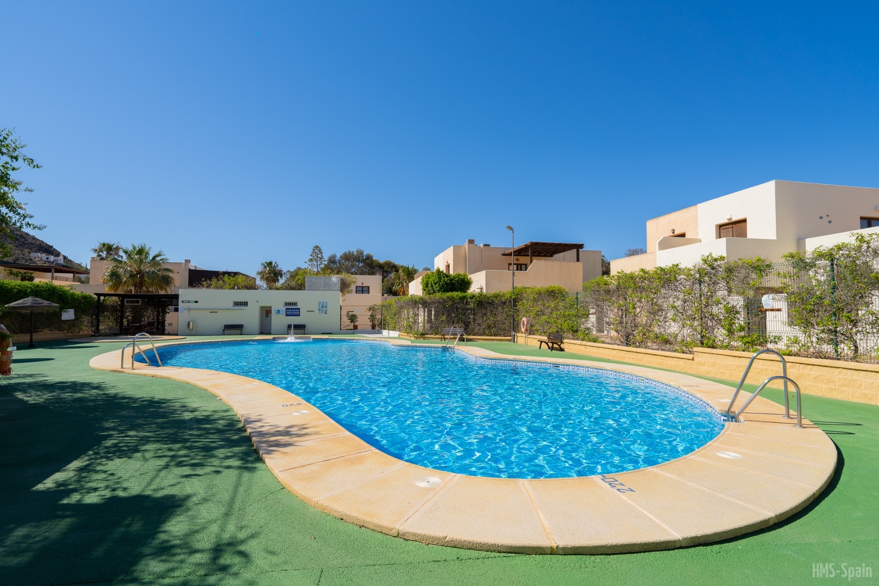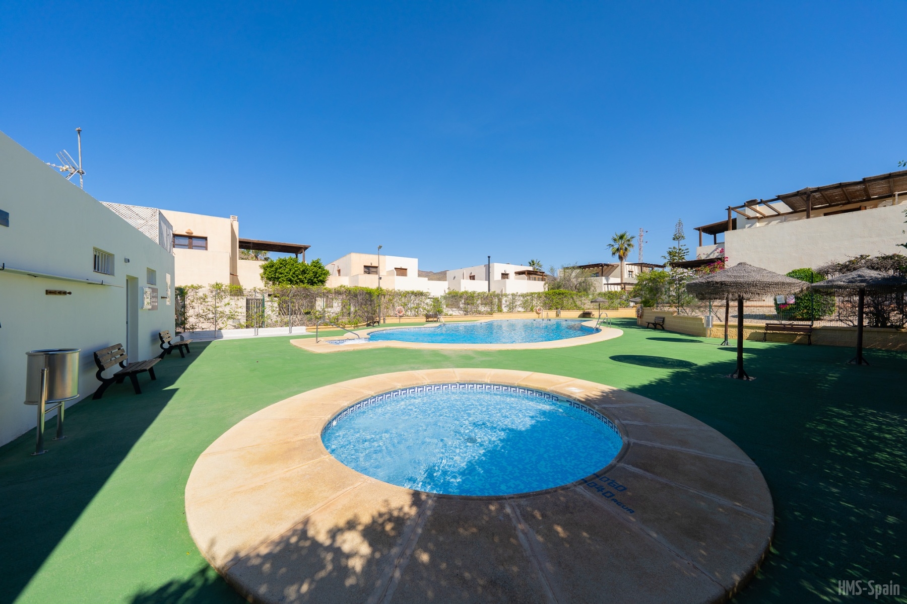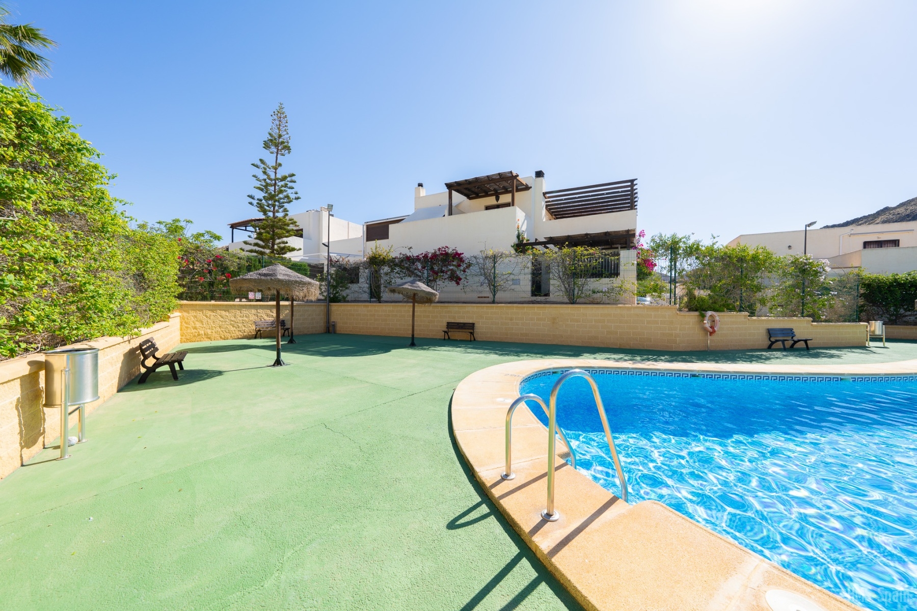 El apartamento se encuentra en una urbanización con piscina panorámica con vistas al mar y bajada directa. A 10 min del pueblo, a 2 minutos de la playa de la calilla y a 20 andando de la espectacular playa de los genovés.